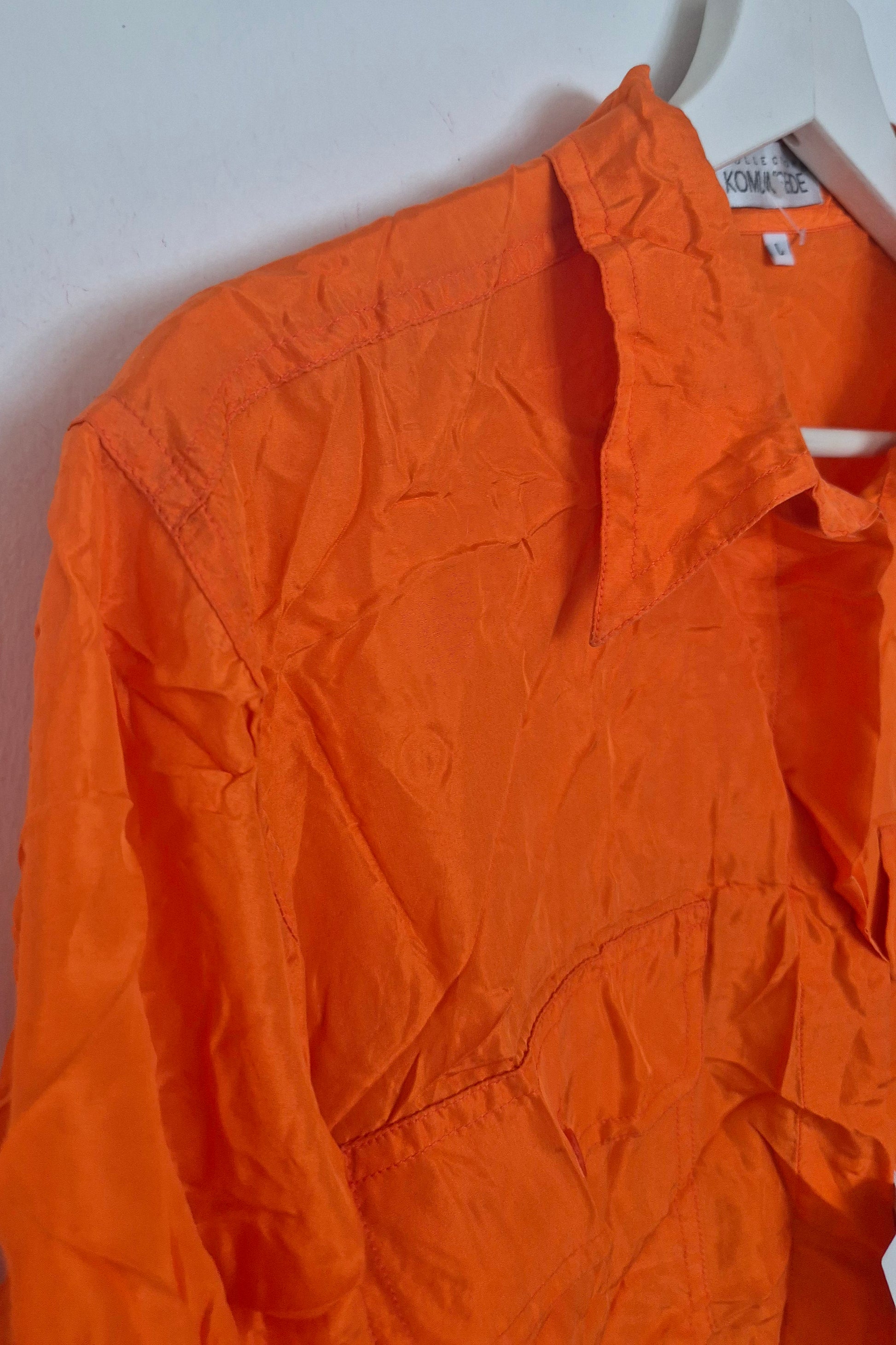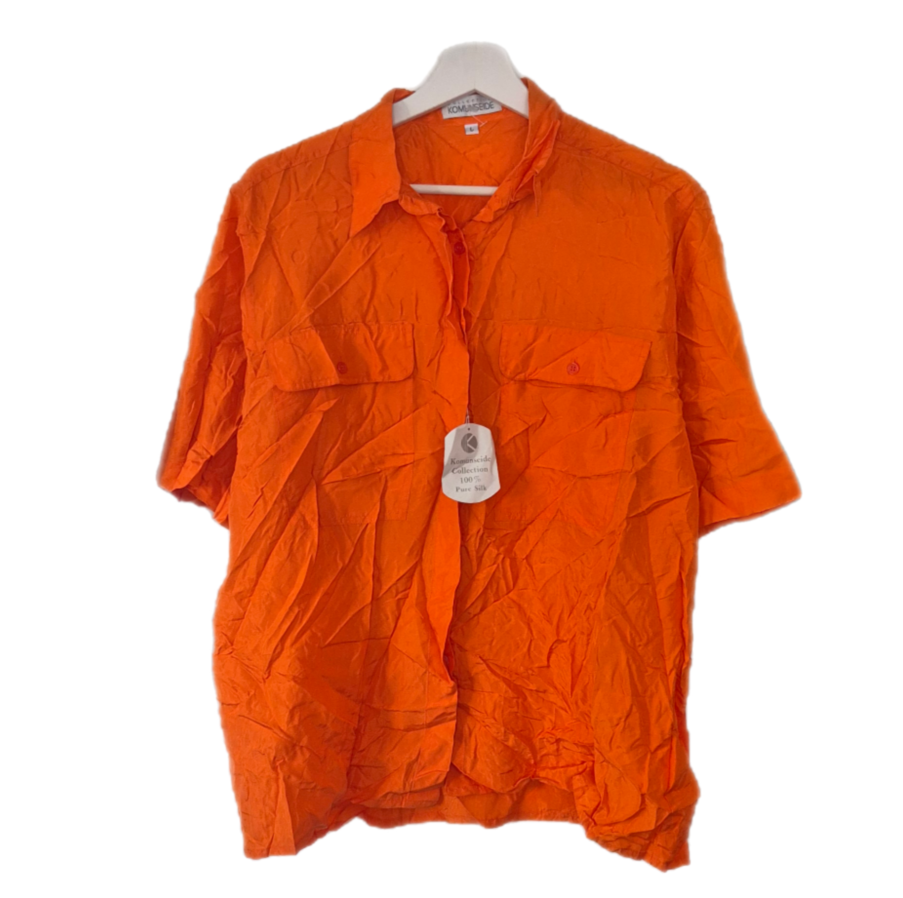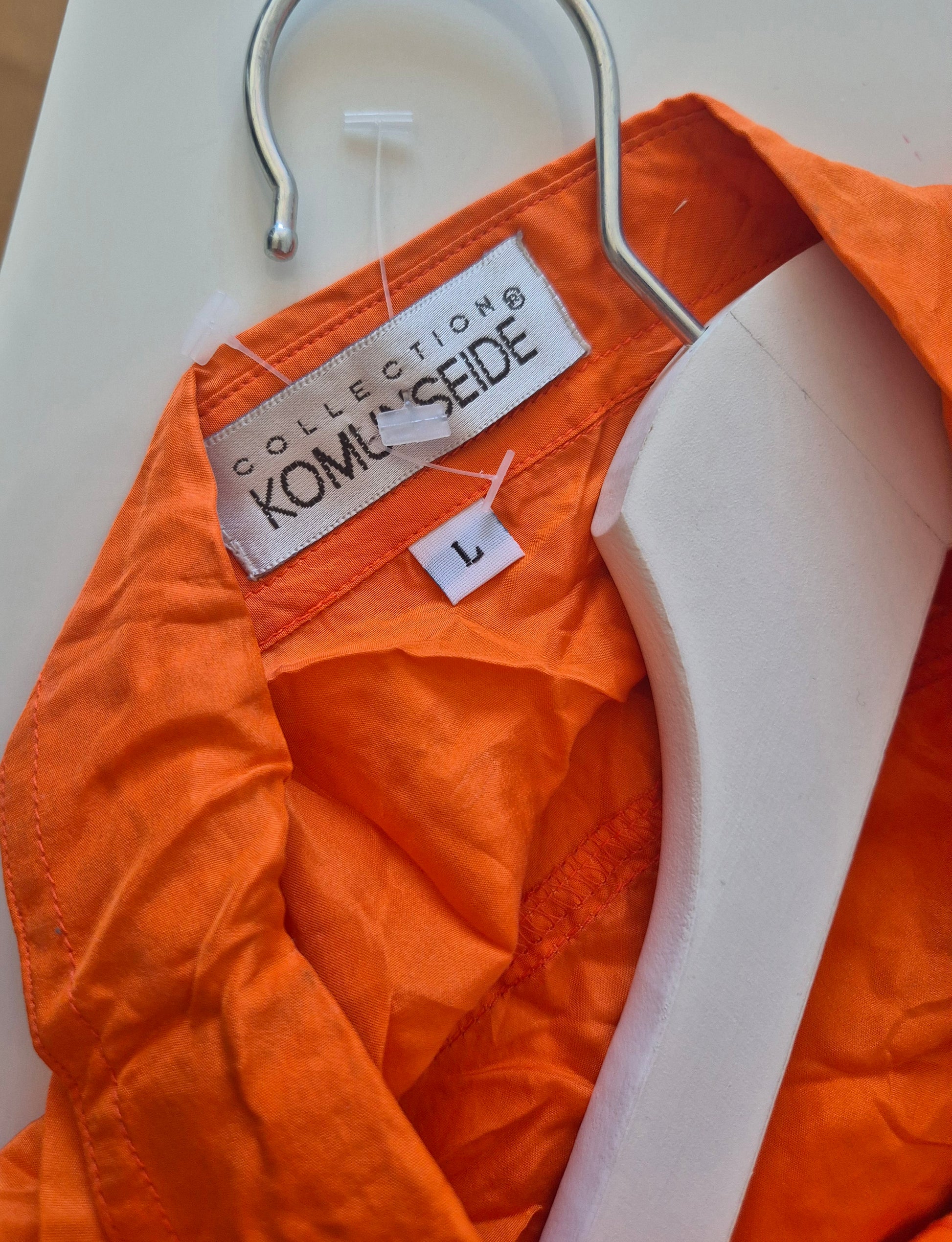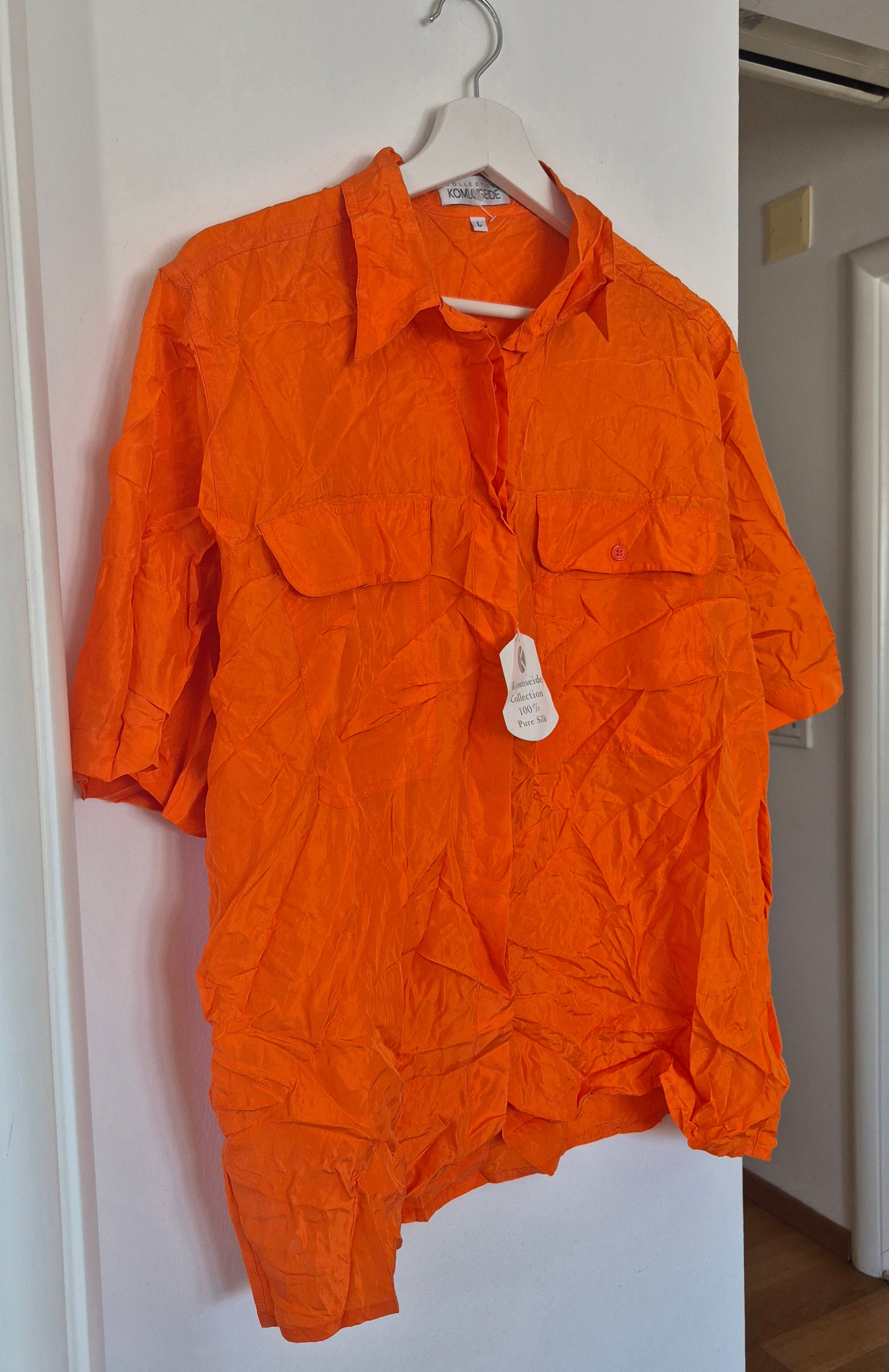 Nova košulja od čiste svile. Jako živa narančasta, divna! S etiketama. Nagužvana zbog pakiranja/transporta - može se za početak furati tako, a pranjem će postati obična glatka svila. Pranje je u hladnoj/mlakoj vodi i obavezno ručno.
