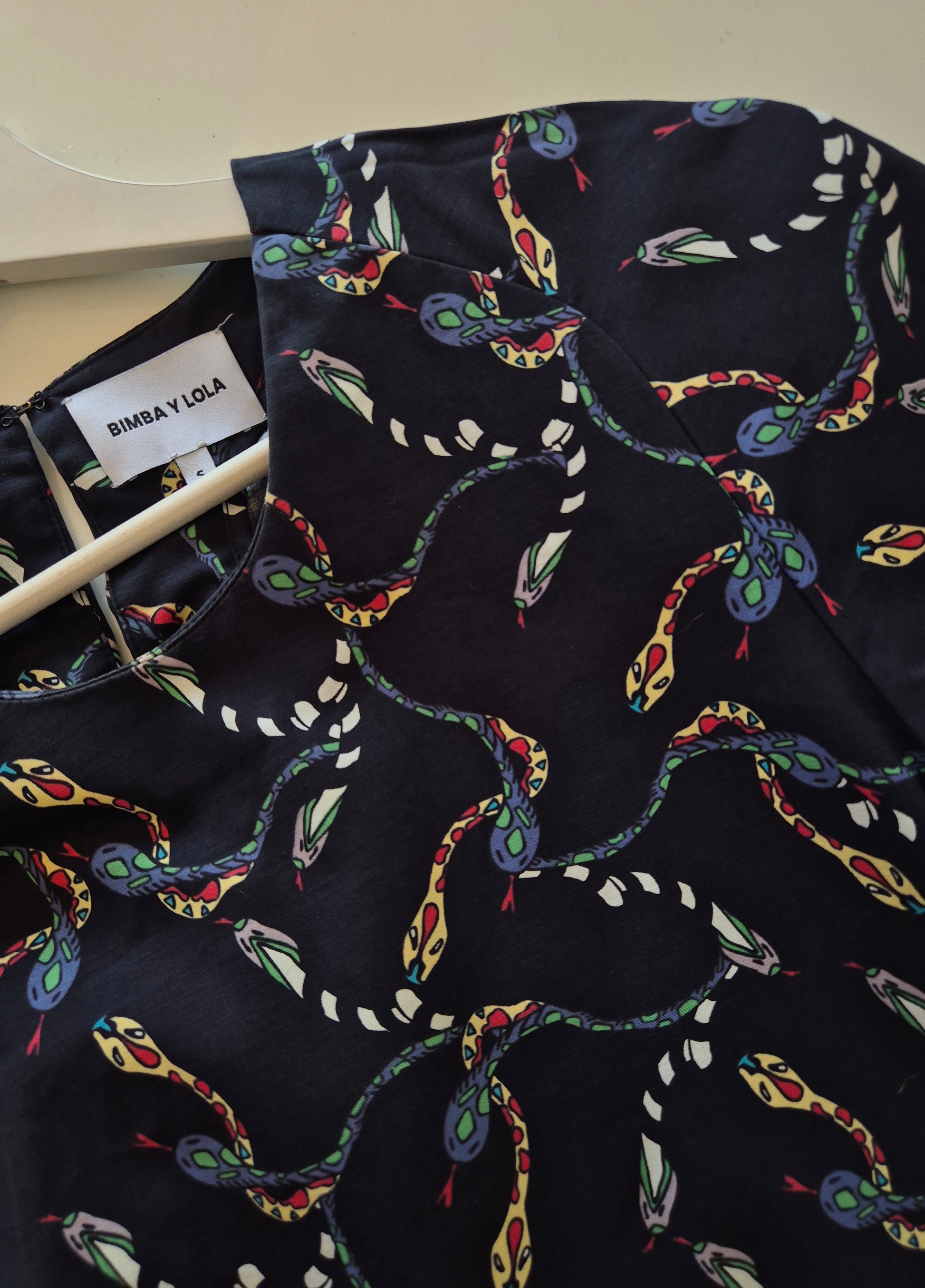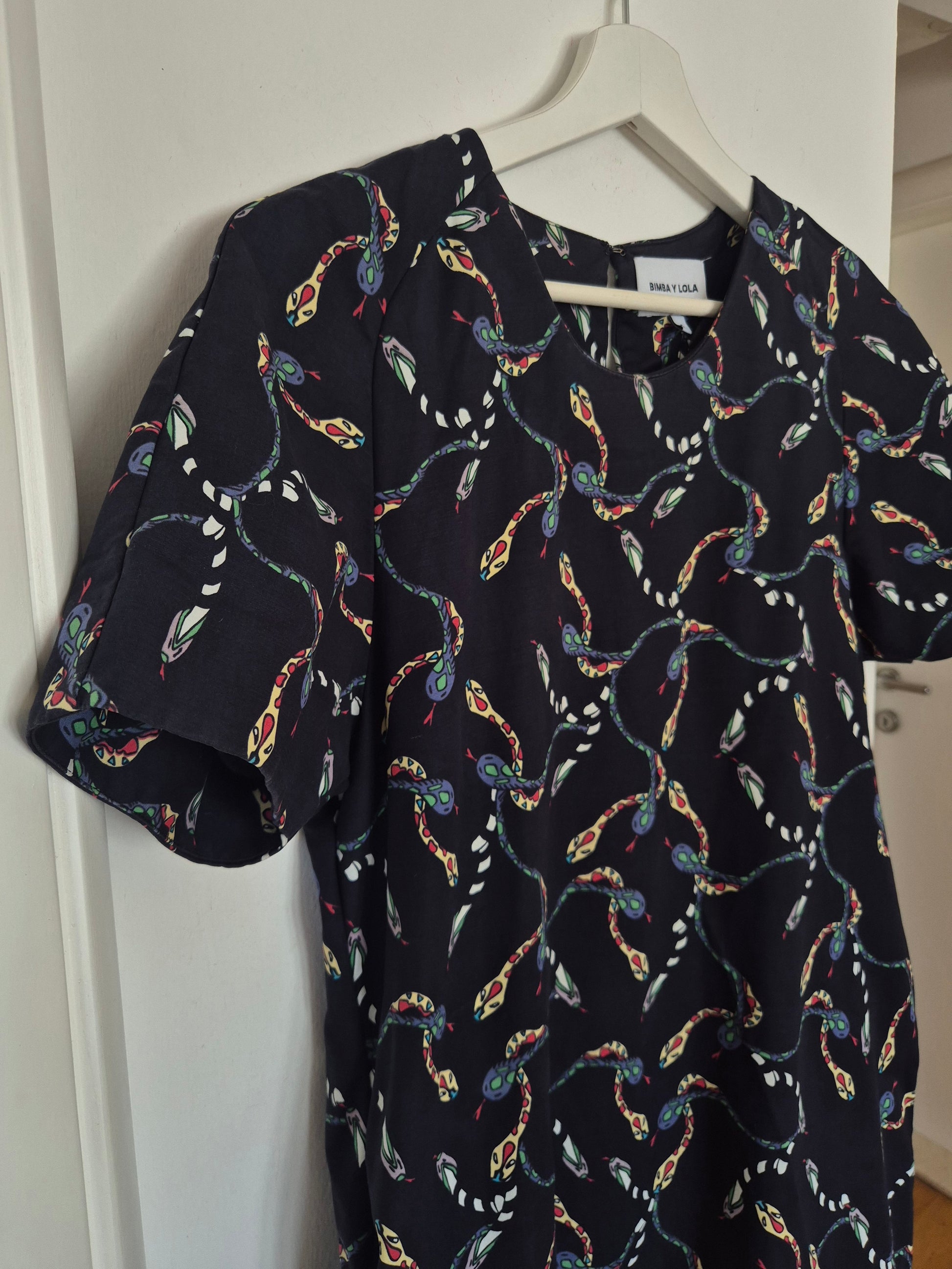 Posebna haljina španjolskog brenda Bimba Y Lola. (jako)tamnoplava s interesantnim uzorkom 🐍. Pamuk!