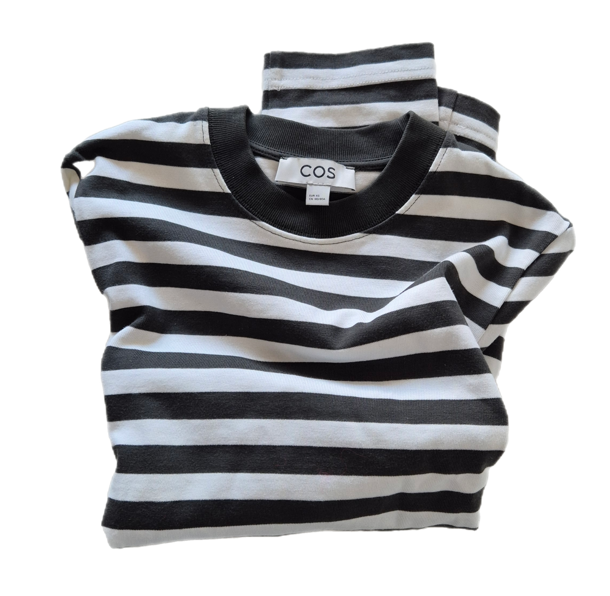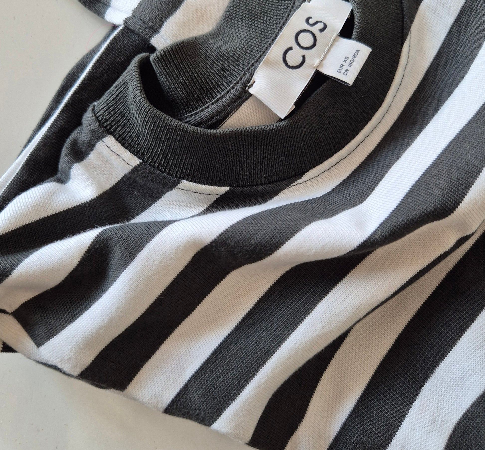 Cos pamučna majica na pruge (bijele i tamnosive). Savršen basic komad.
