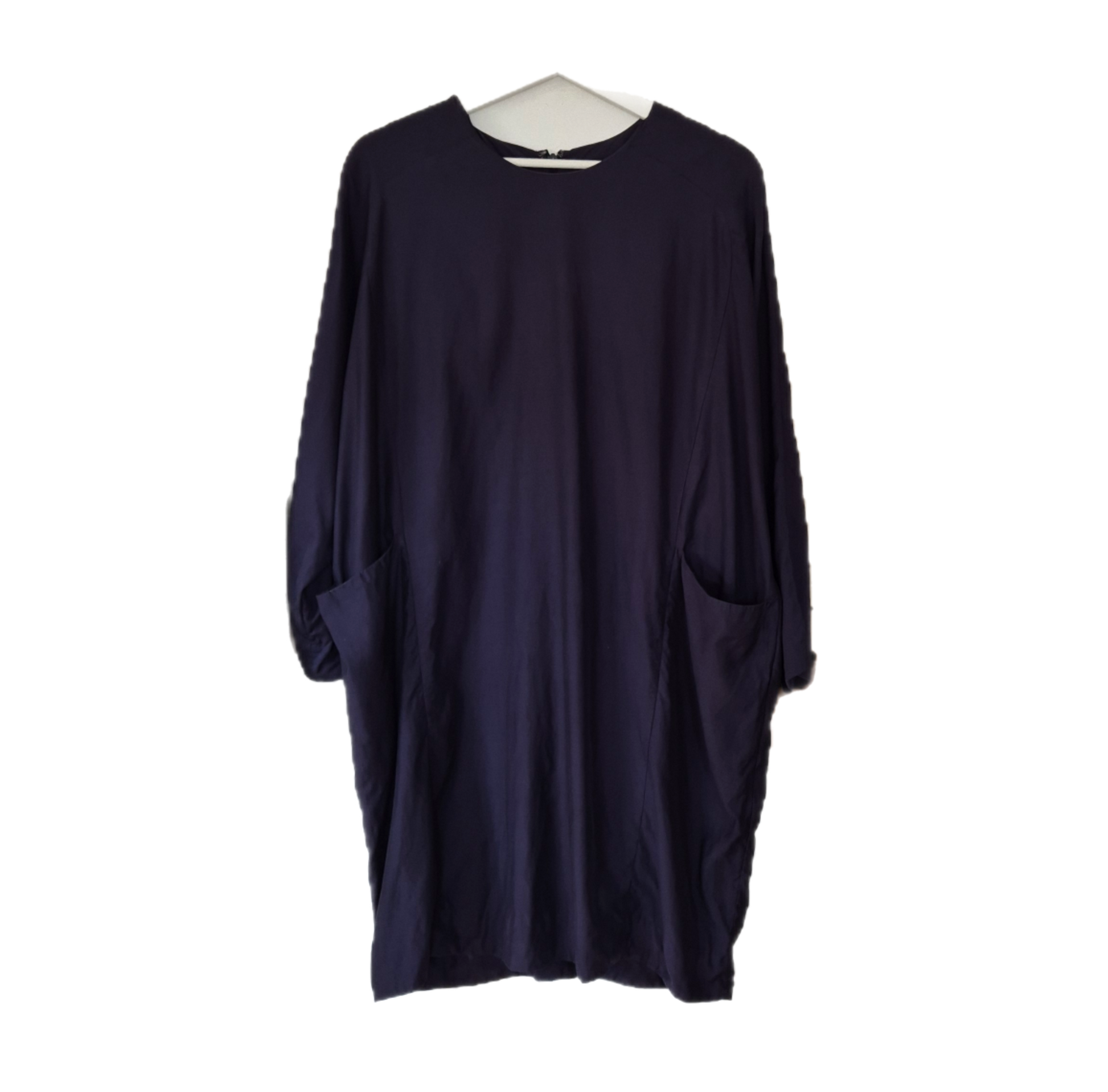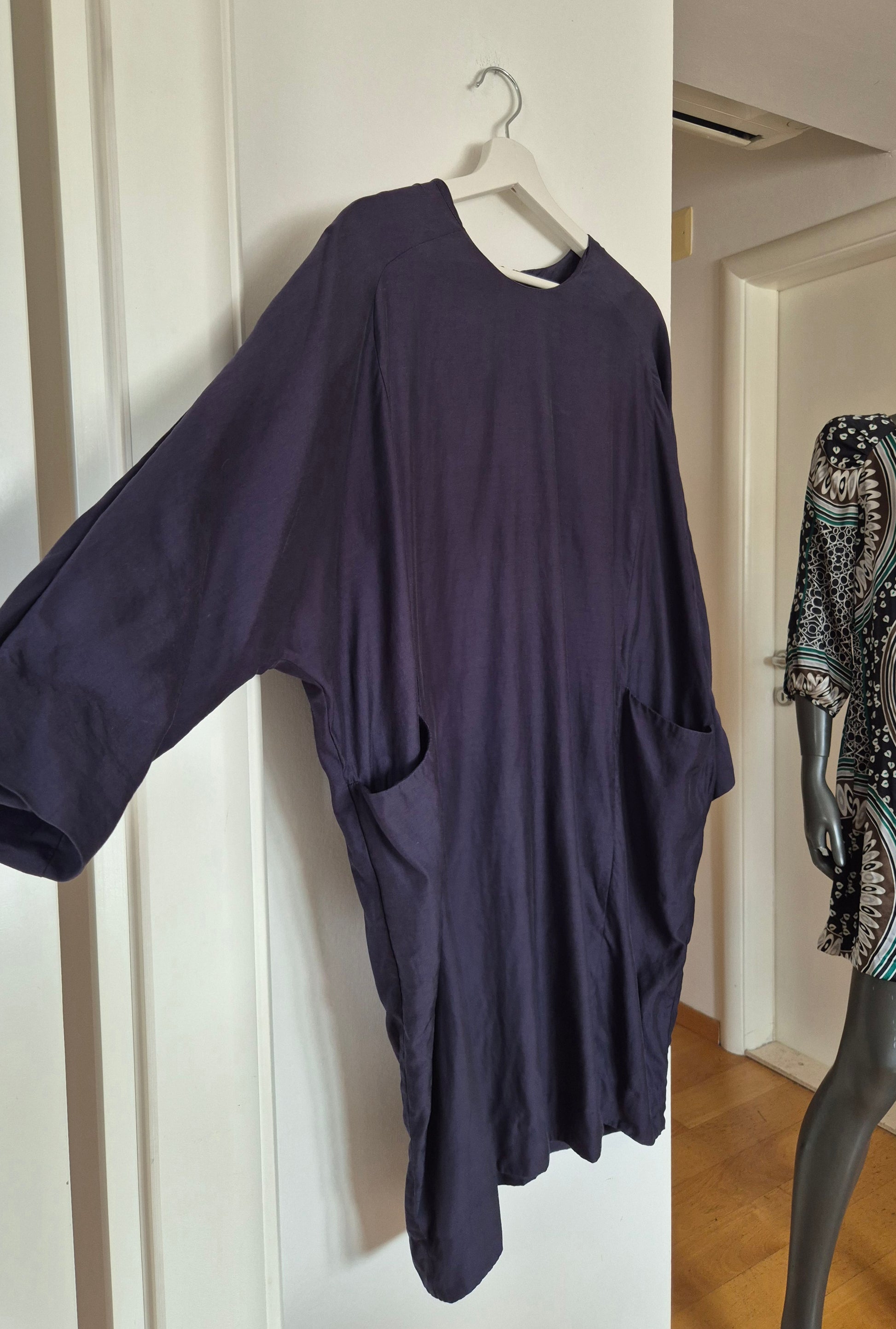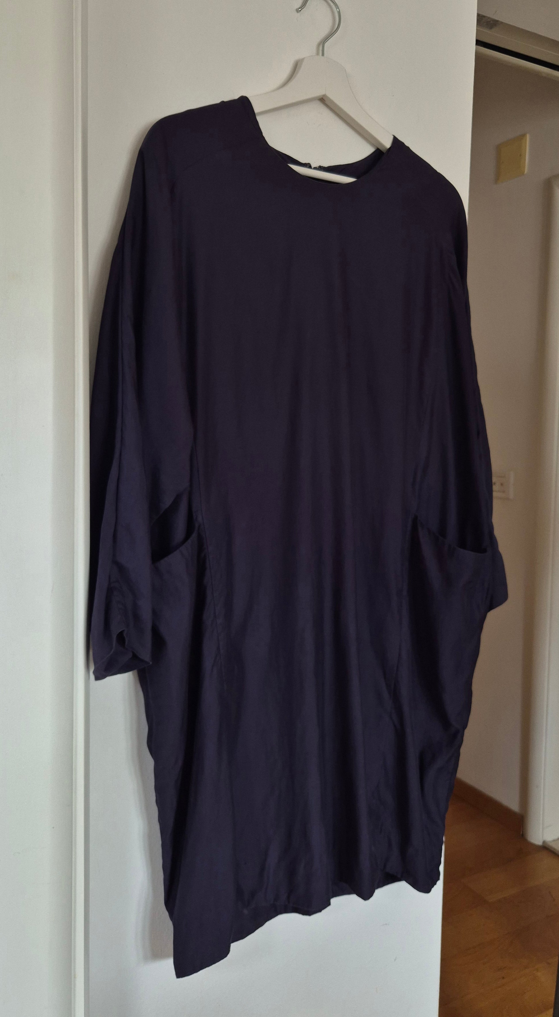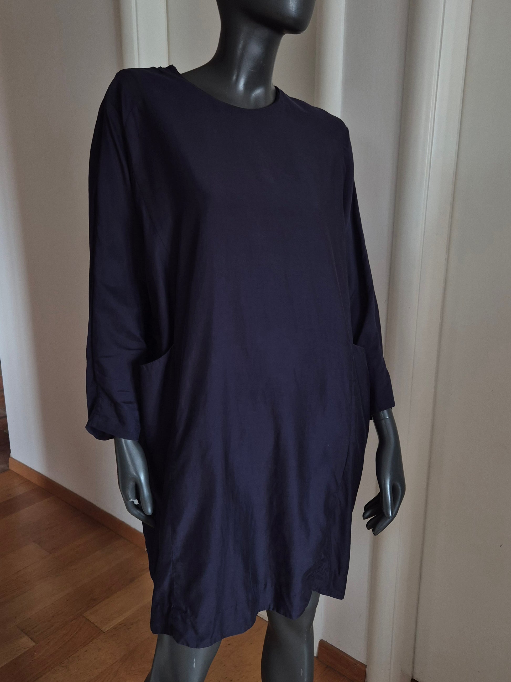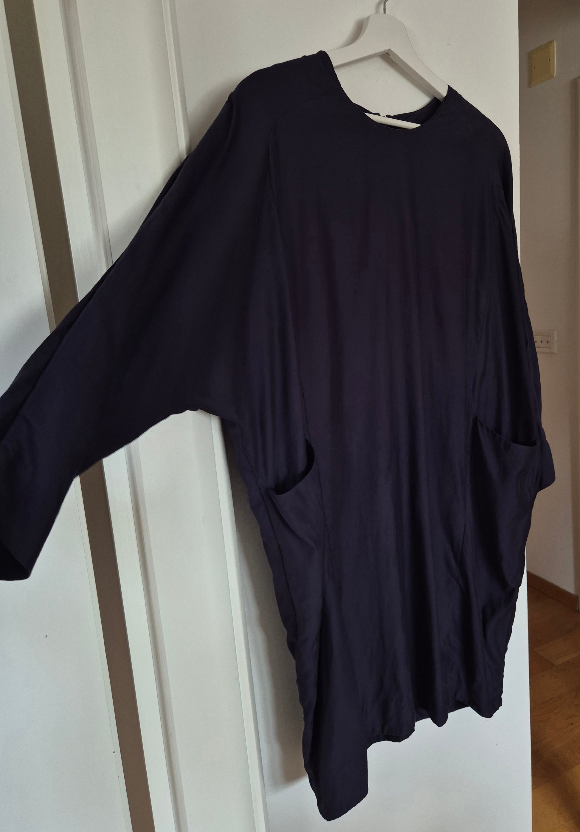 Cos tamnoplava haljina opuštenog kroja. Šišmiš rukavi, loose fit. Džepovi naprijed. Ljepša uživo 🤗. Jako dobar materijal - 60% kupro i 40% pamuk.