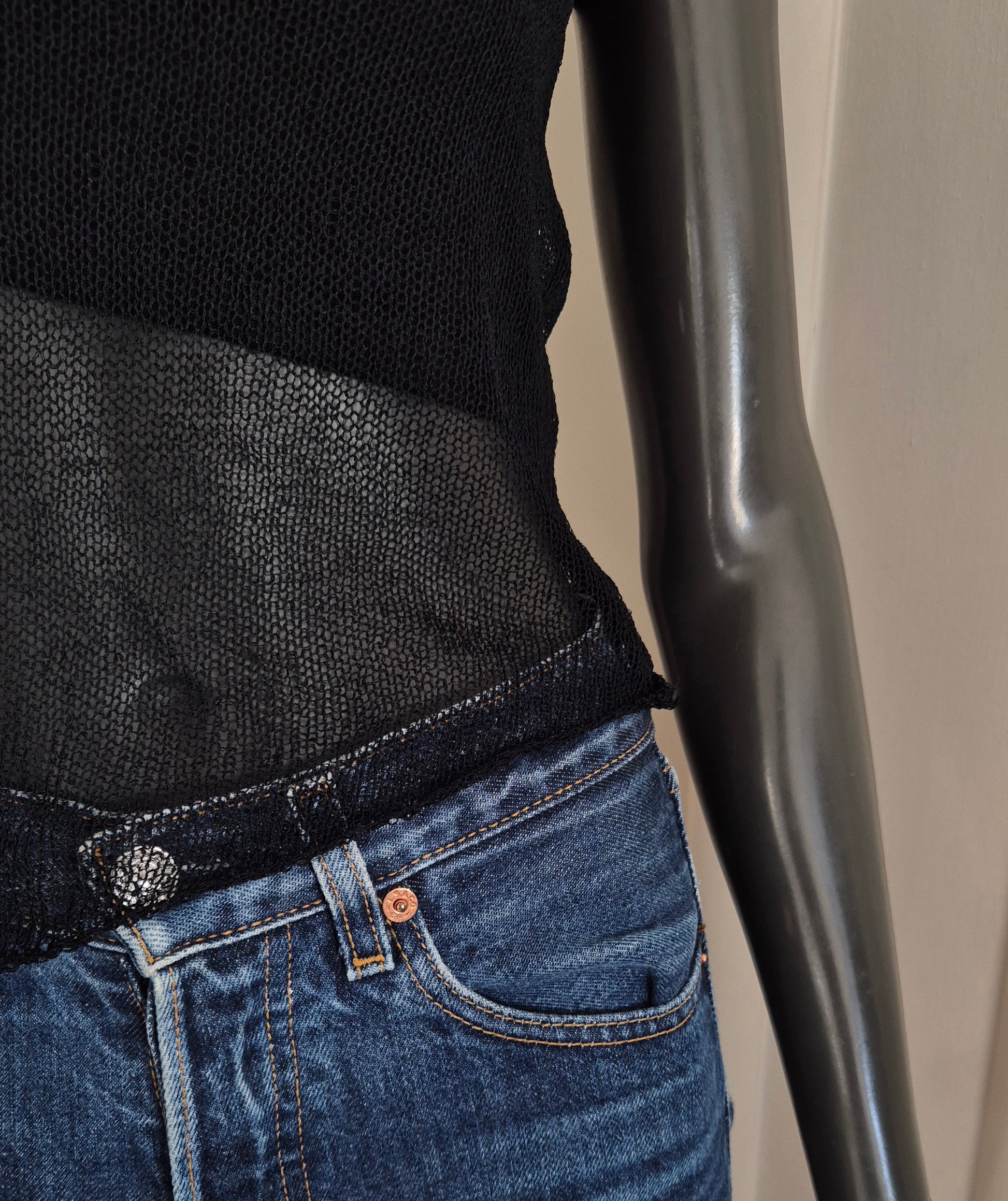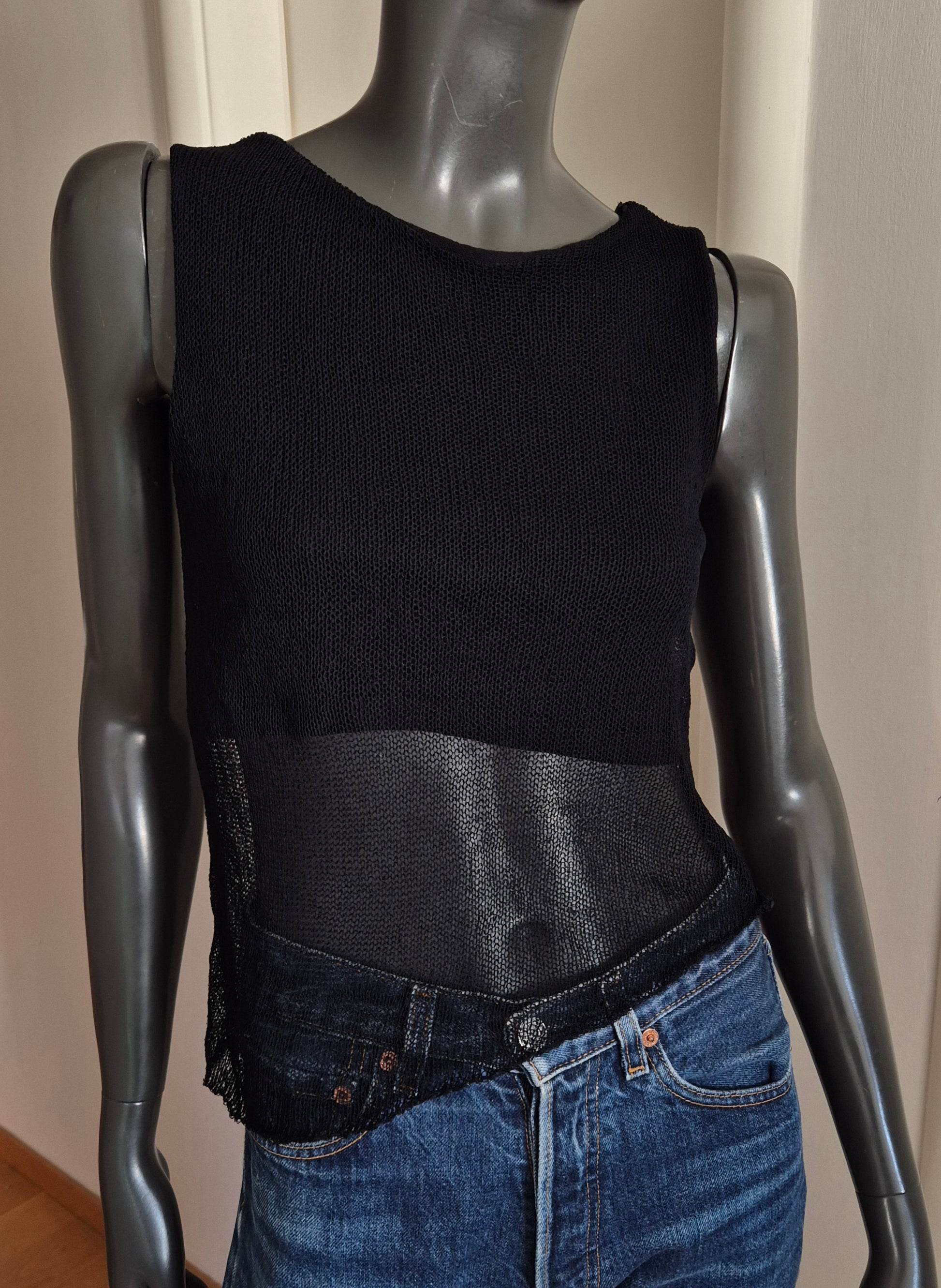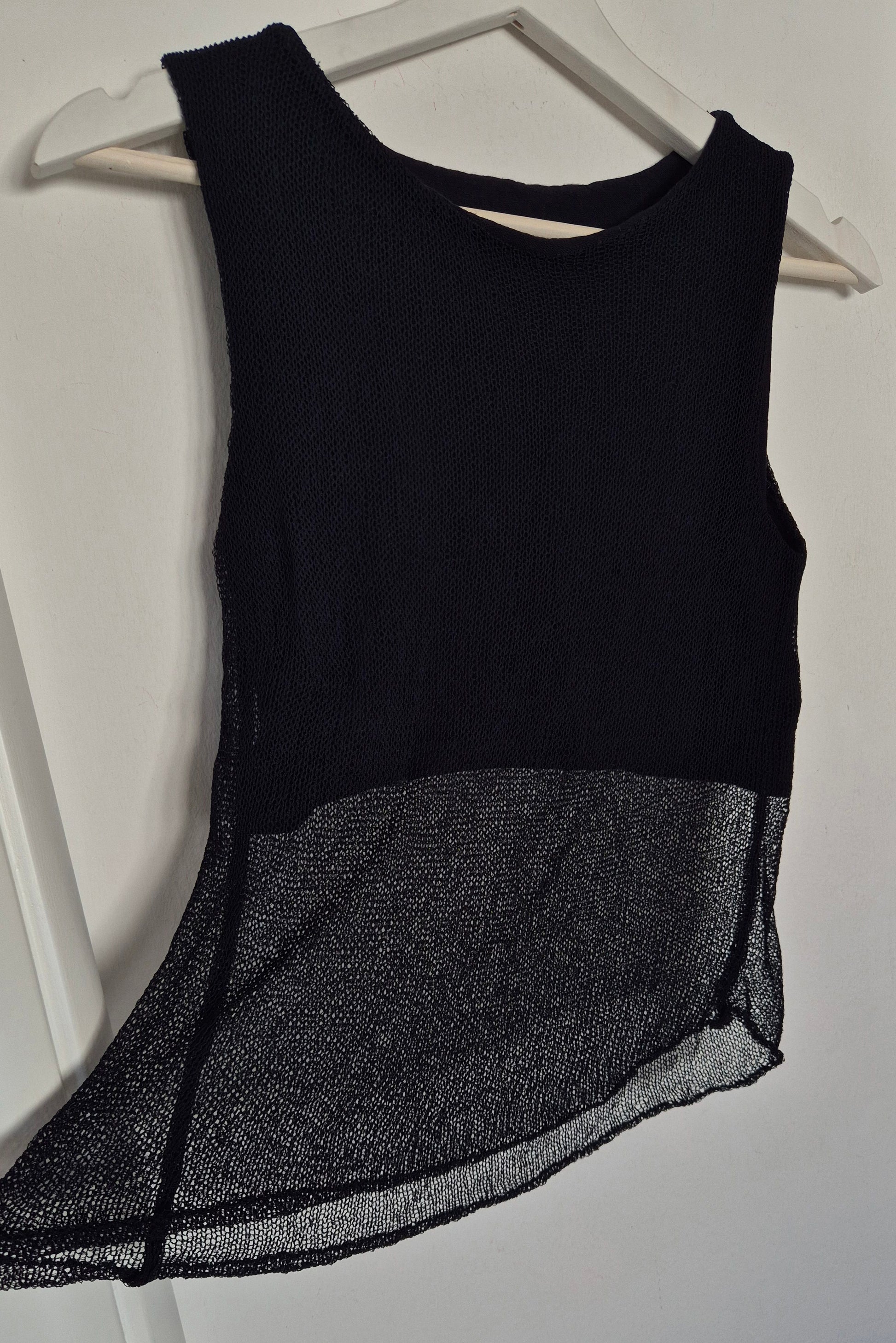 Savršen crni mesh top. Neki talijanski brend, po etiketi sa sastavom materijala moguće da je vintage Max&Co! Blago asimetričan. Na gornjem dijelu crni top. 82% pamuk, 16% poliamid, 2% elastin.