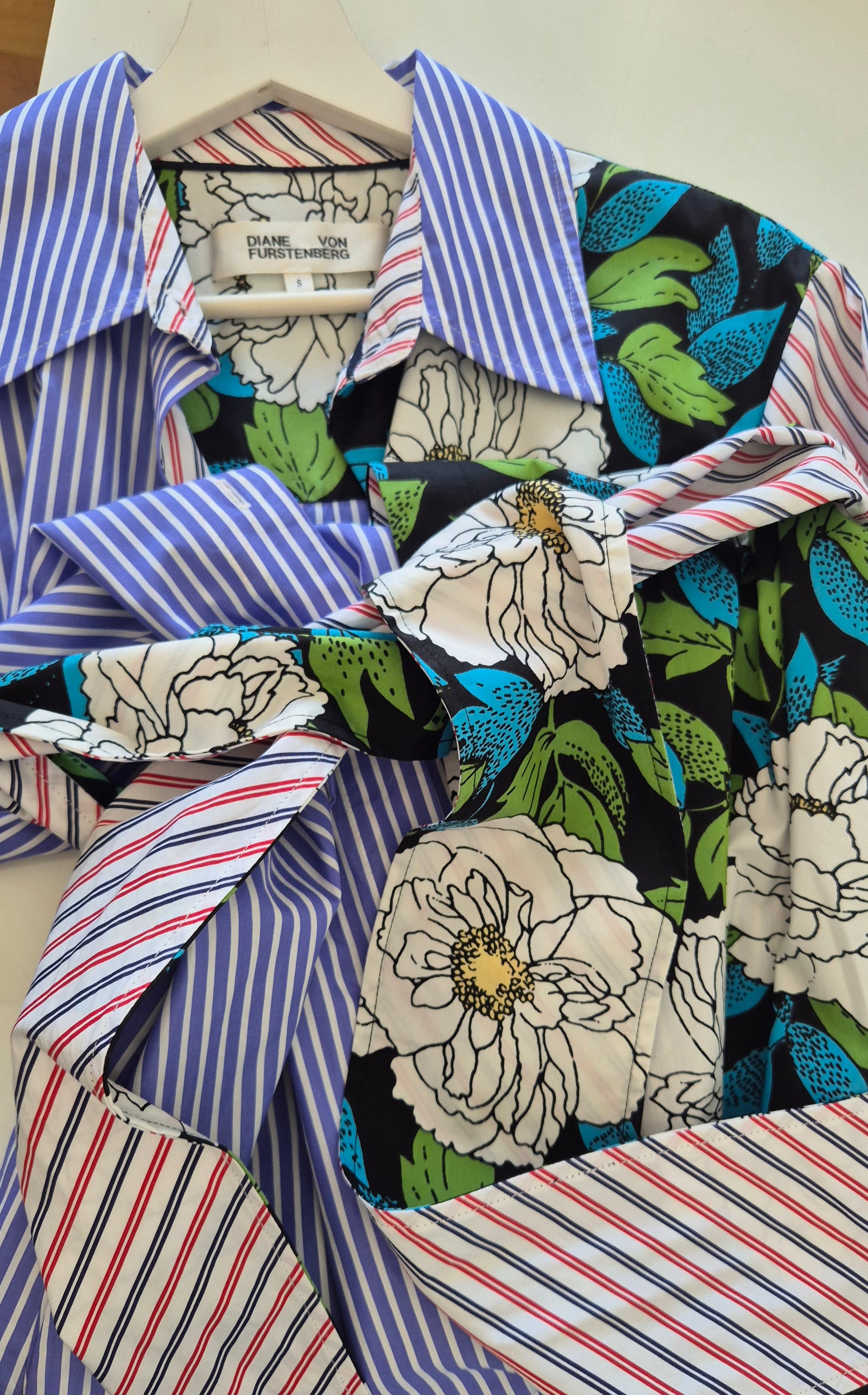 Dizajnerska jakna Diane Von Furstenberg. Pamuk-popelin. Opušten kroj, ali s remenom za strukiranje. Slriveni džepovi bočno. Mješavina uzoraka 👌
