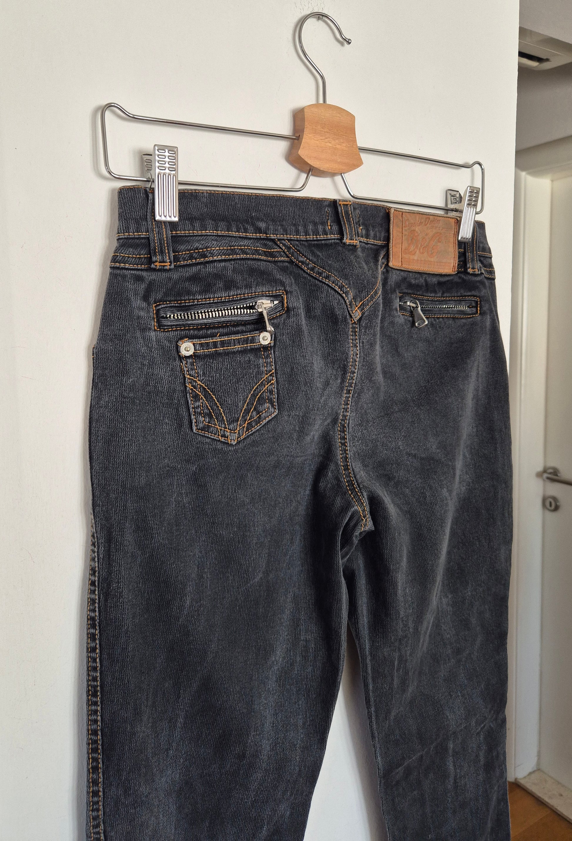 D&G hlače, tamnosive, kao rebrasti traper. Pamuk s elastinom.