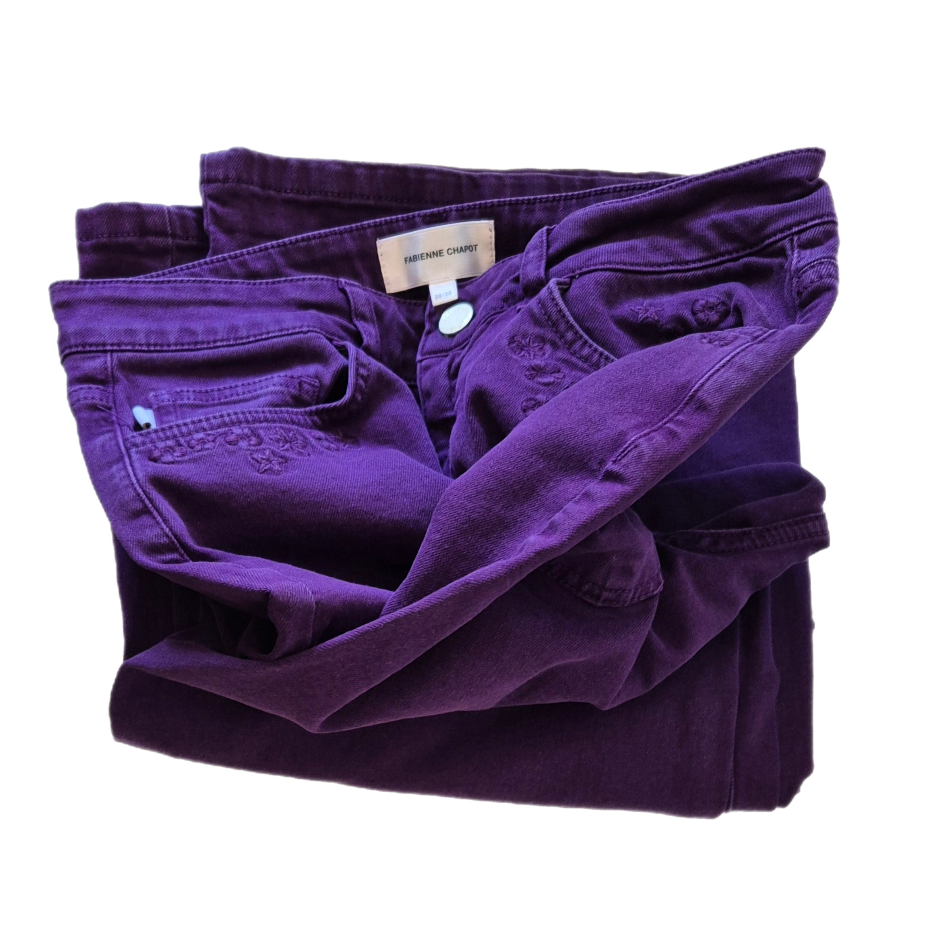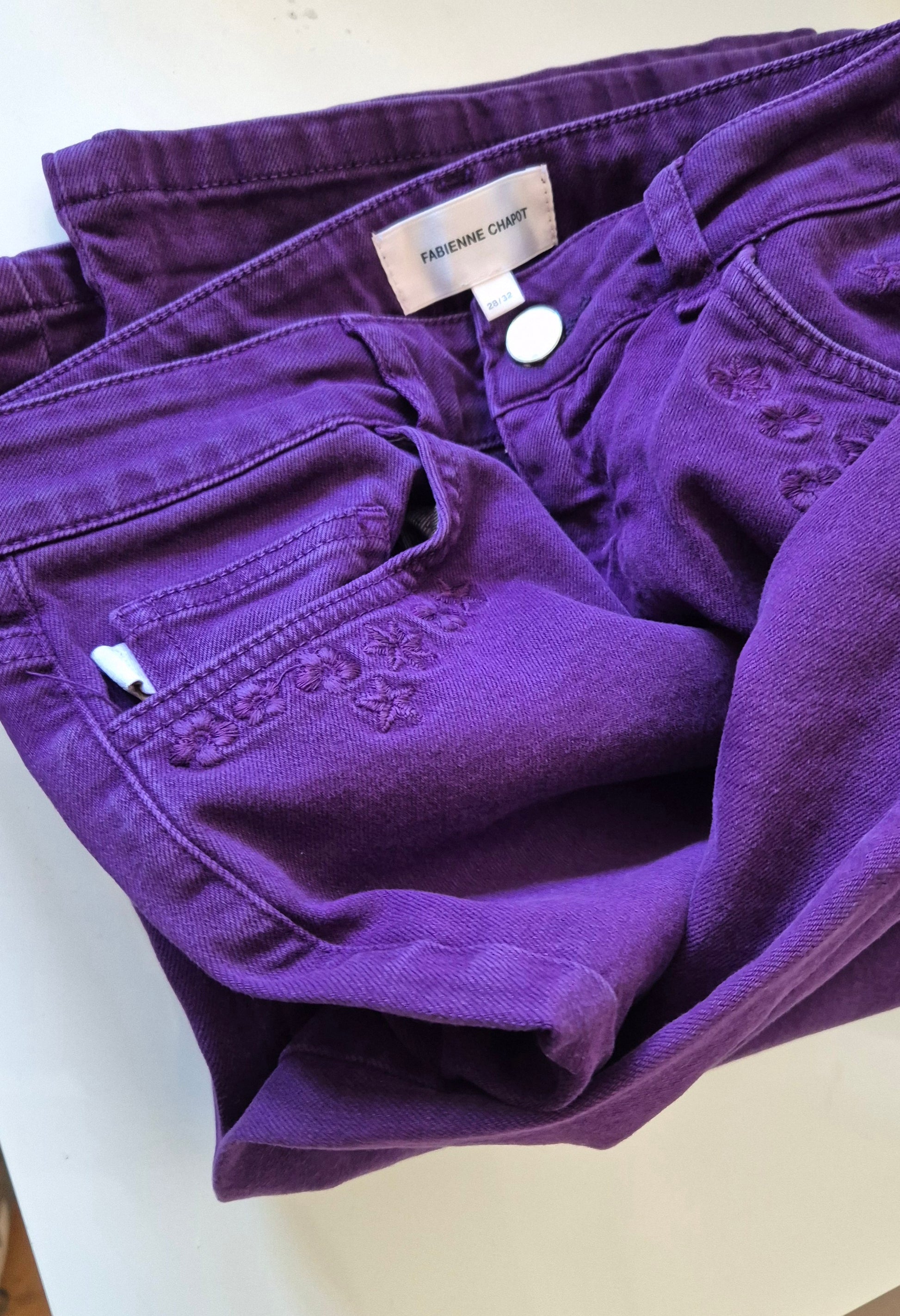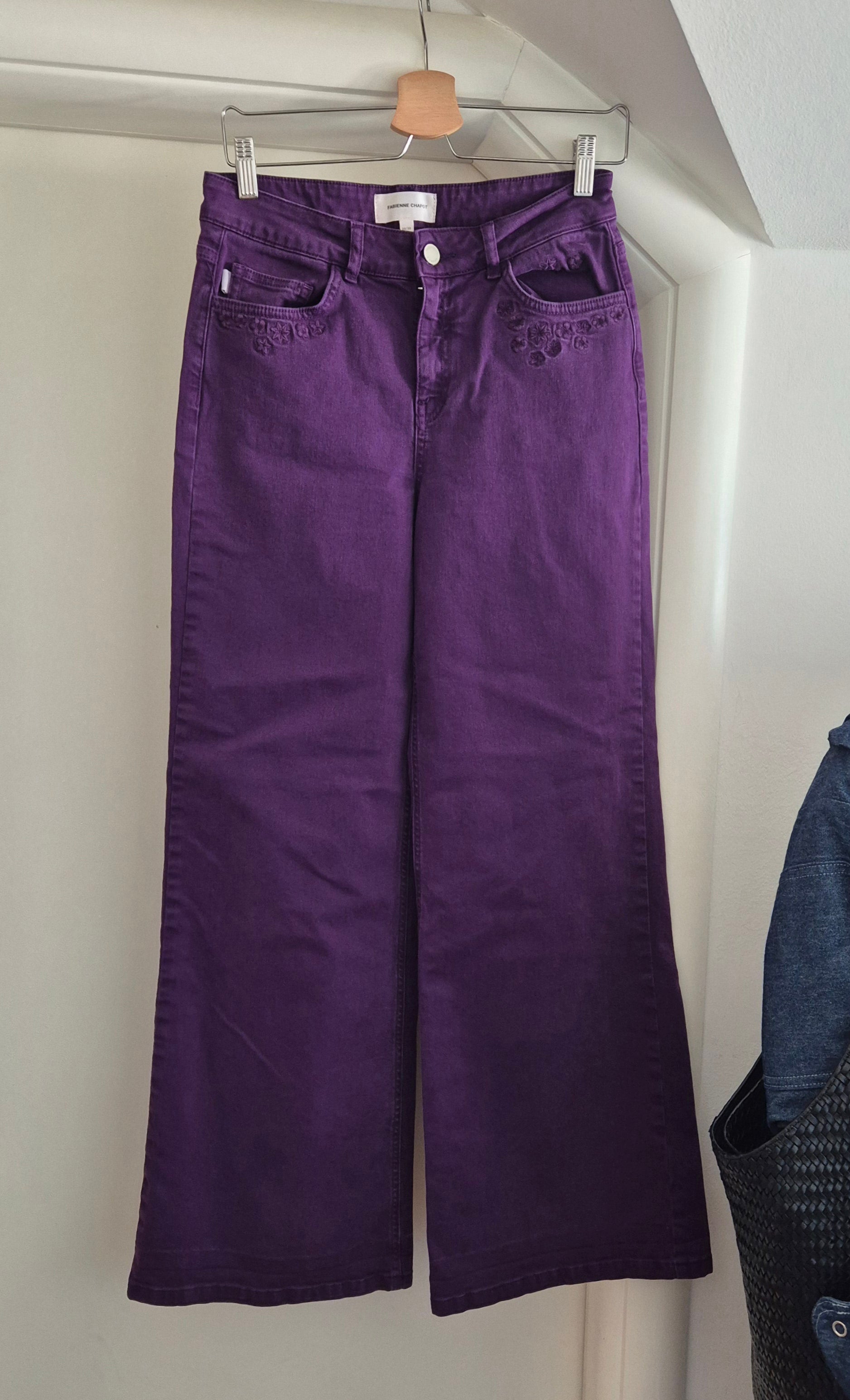 Savršene traperice nizozemskog brenda Fabienne Chapot. Ljubičaste, s vezom, wide leg. Viši struk.