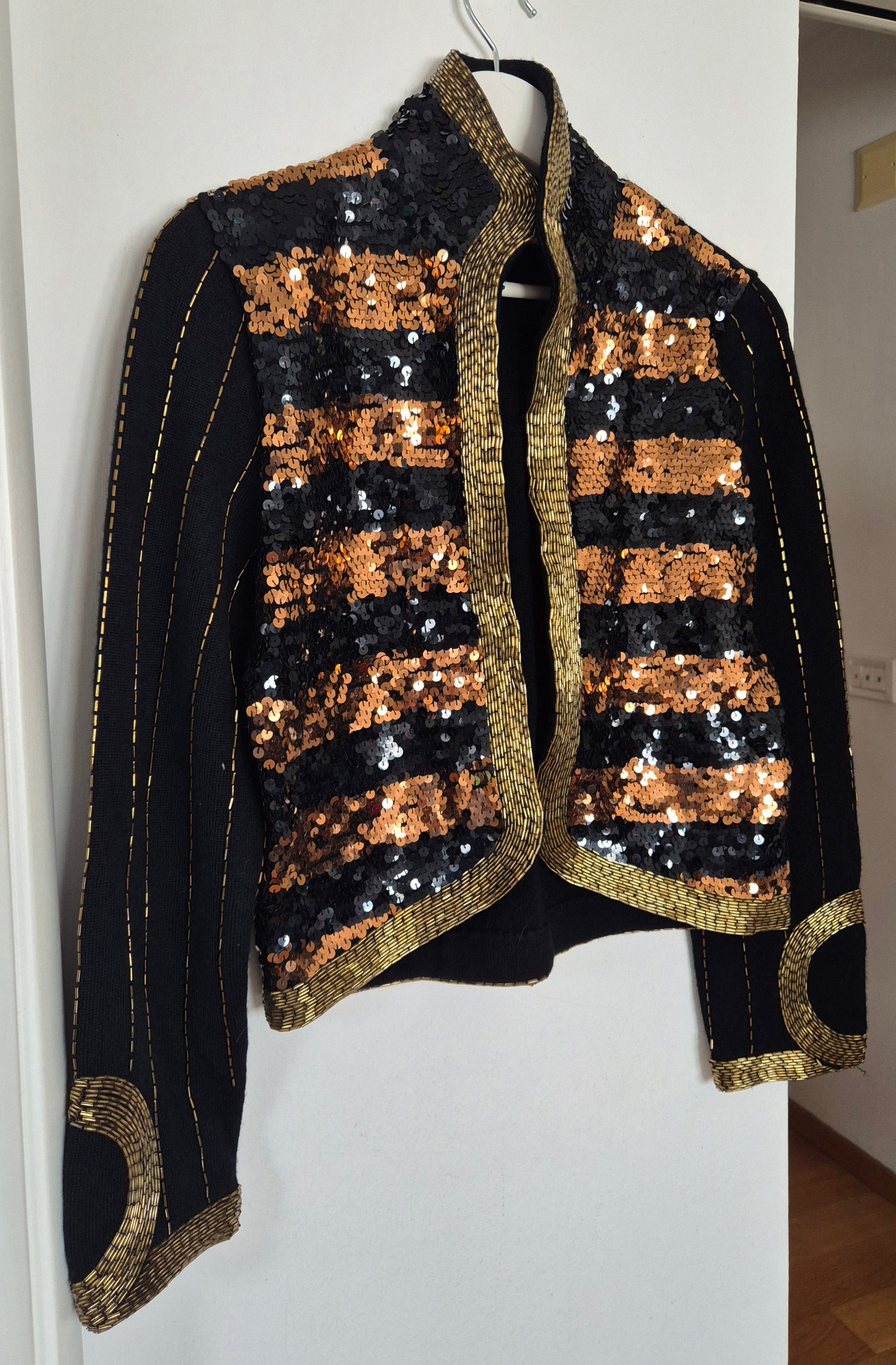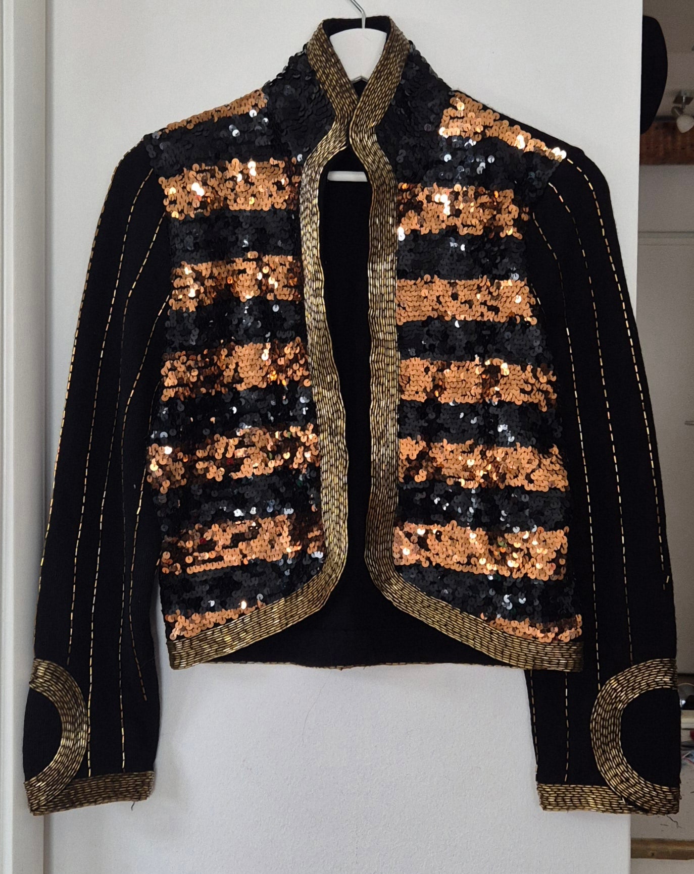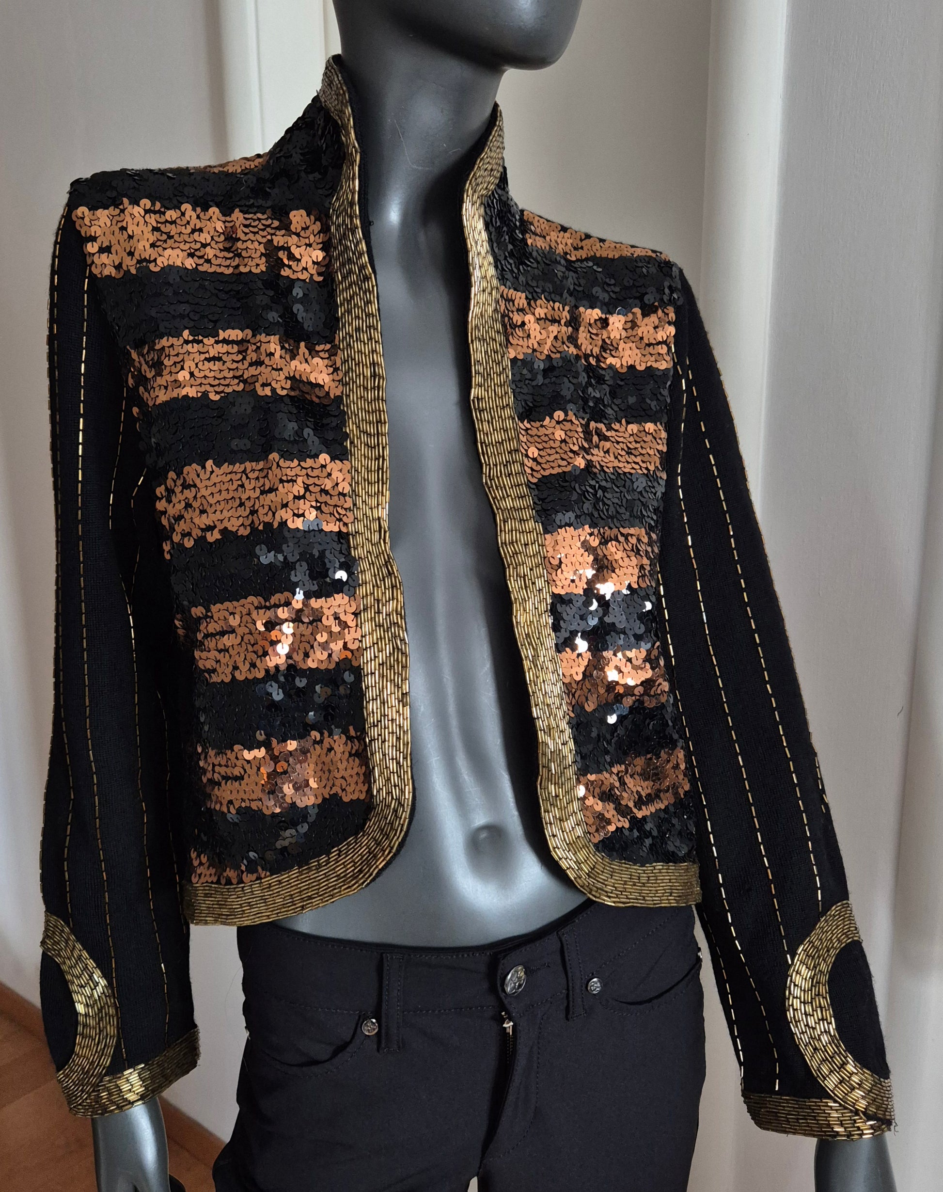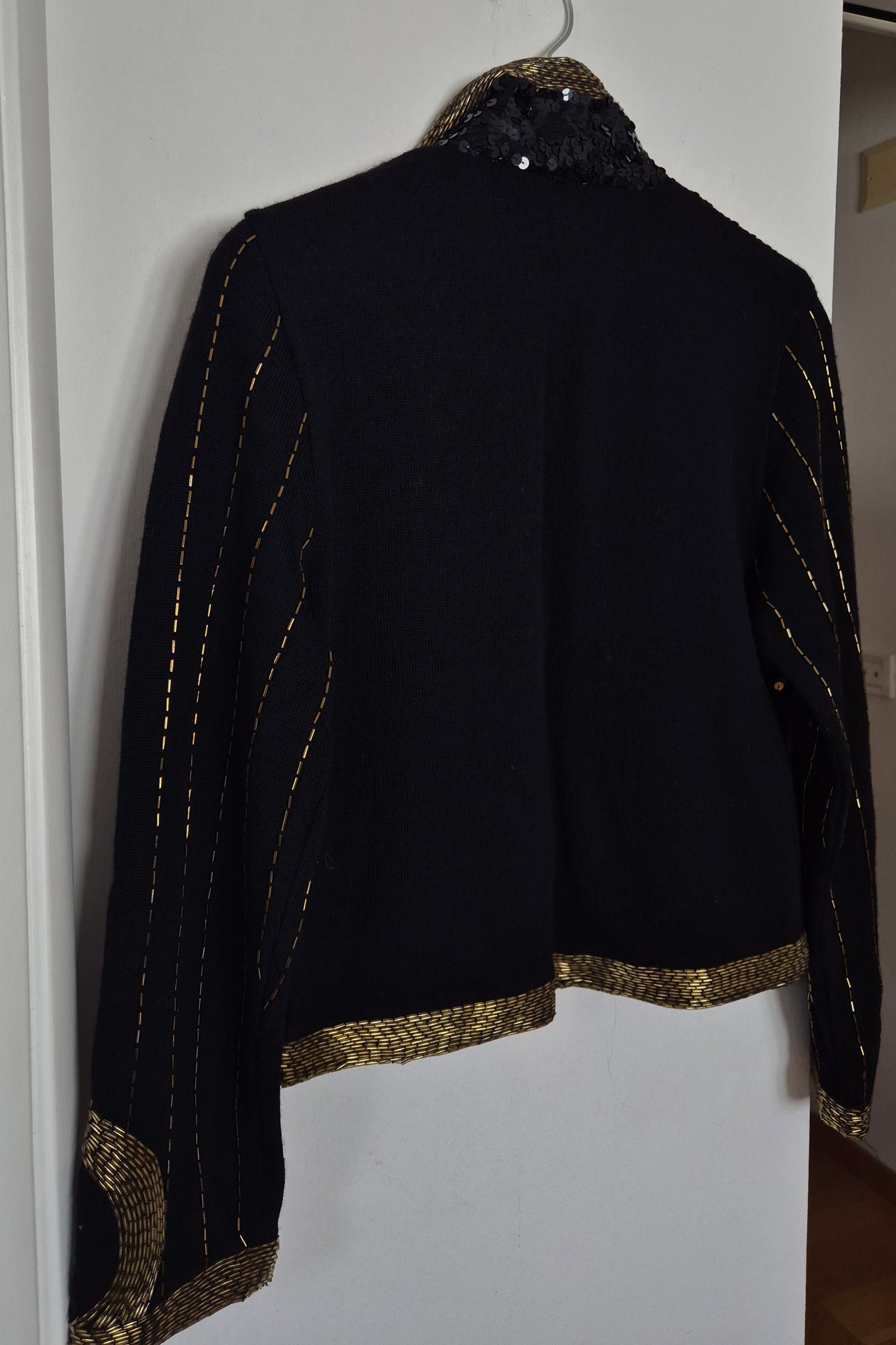 Vintage jakna od fine crne vune. S neodoljivim perlicama. Odličan i šik kroj.