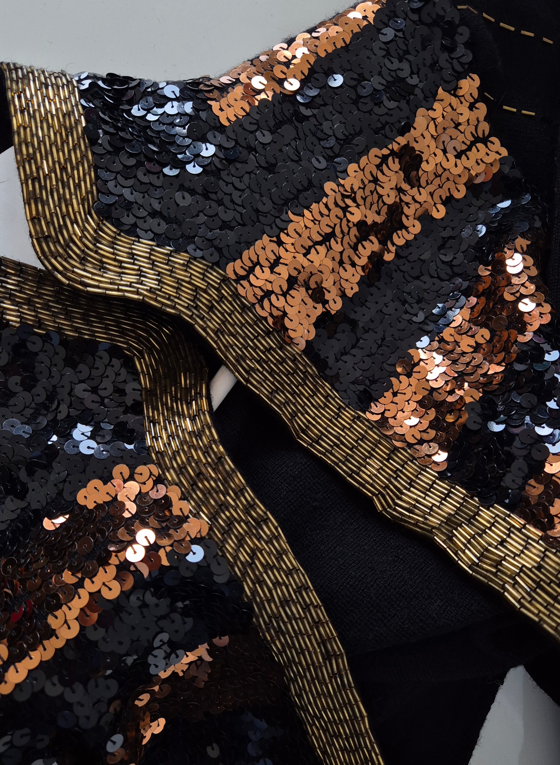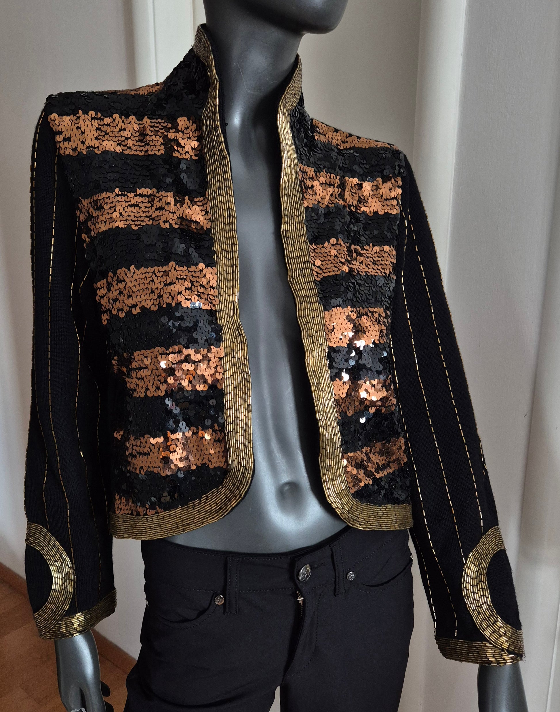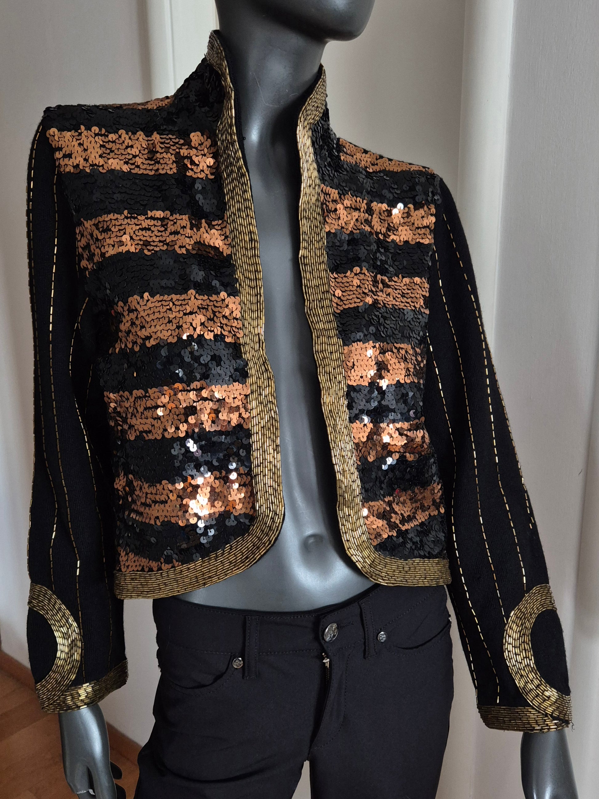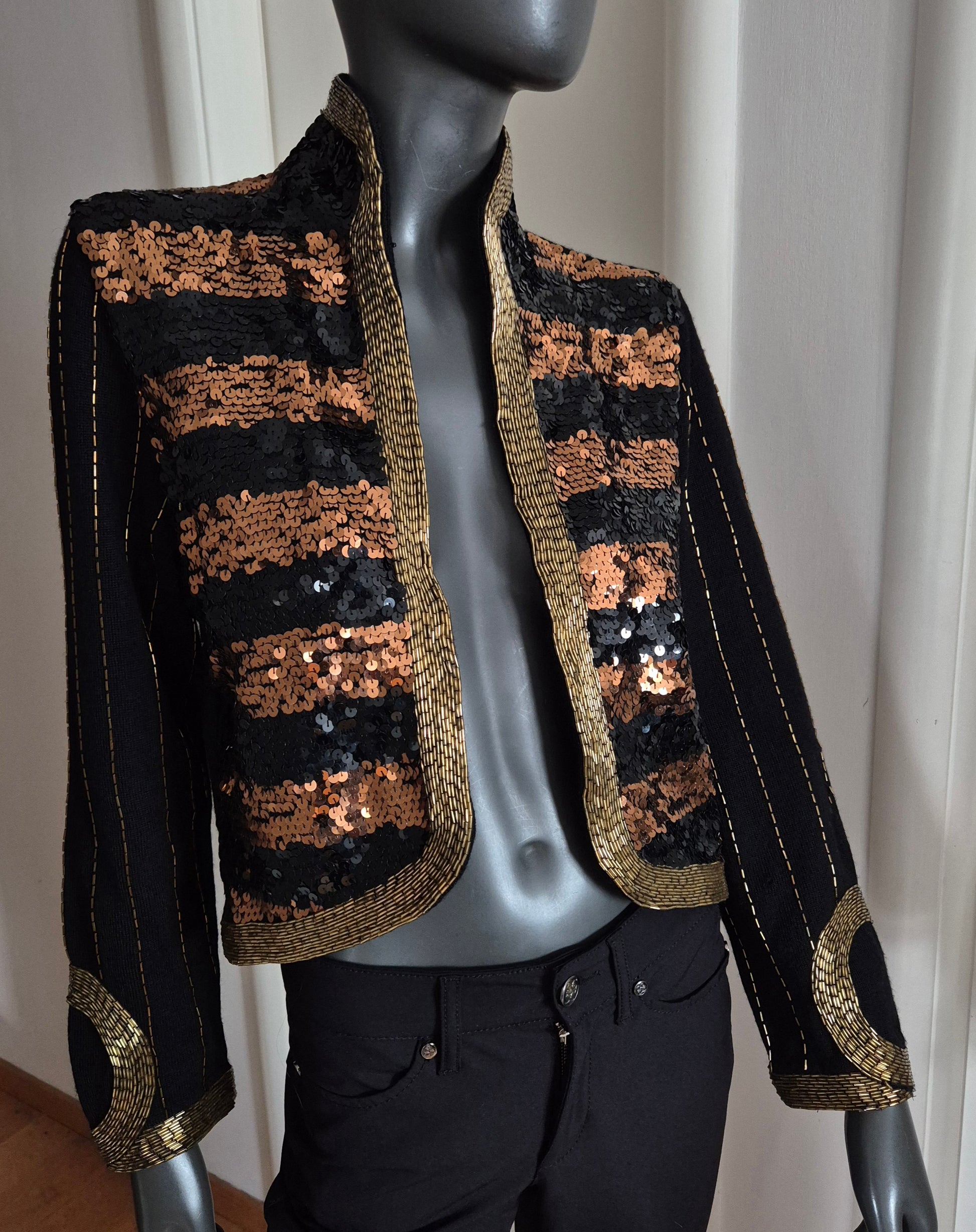 Vintage jakna od fine crne vune. S neodoljivim perlicama. Odličan i šik kroj.