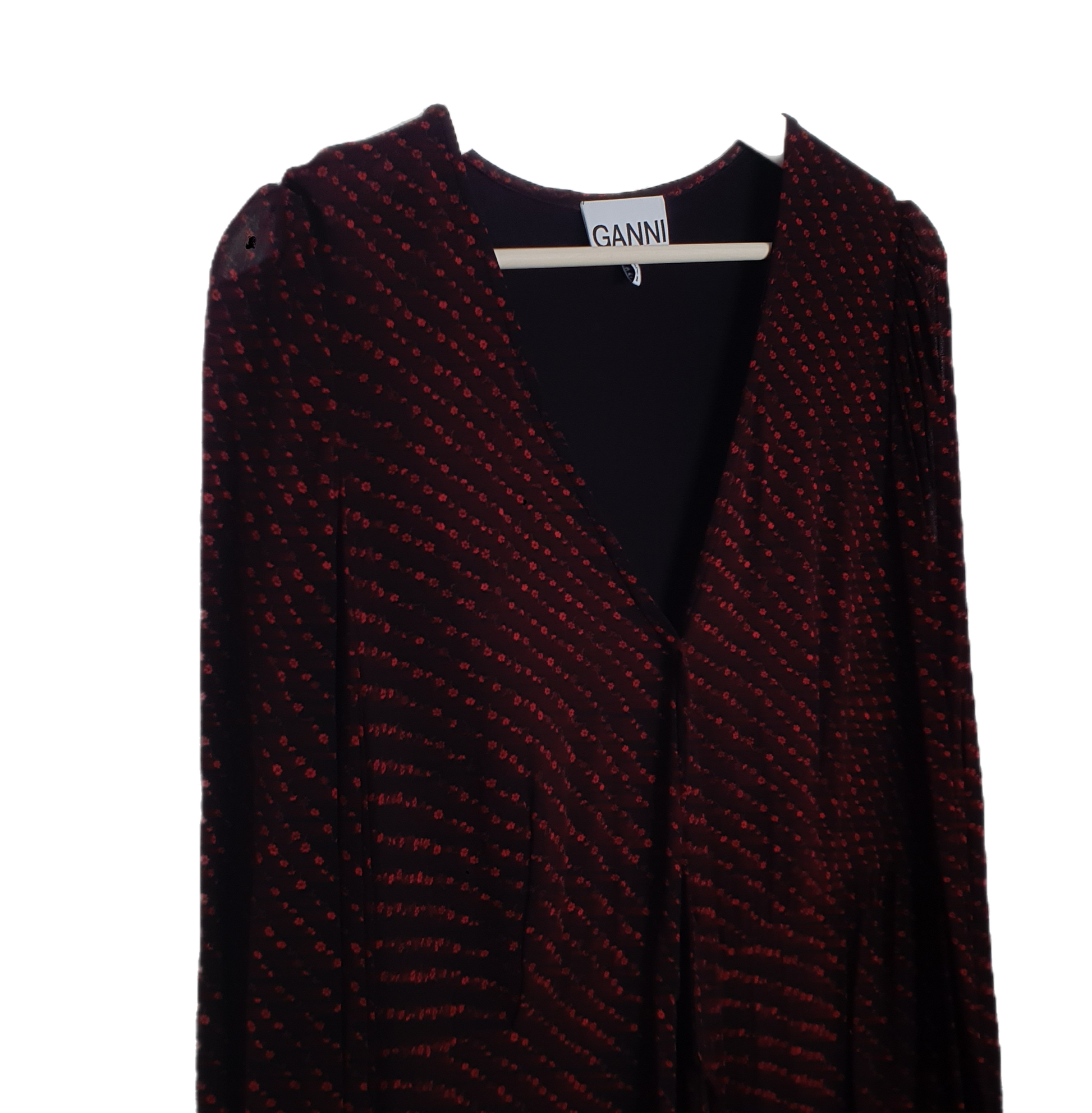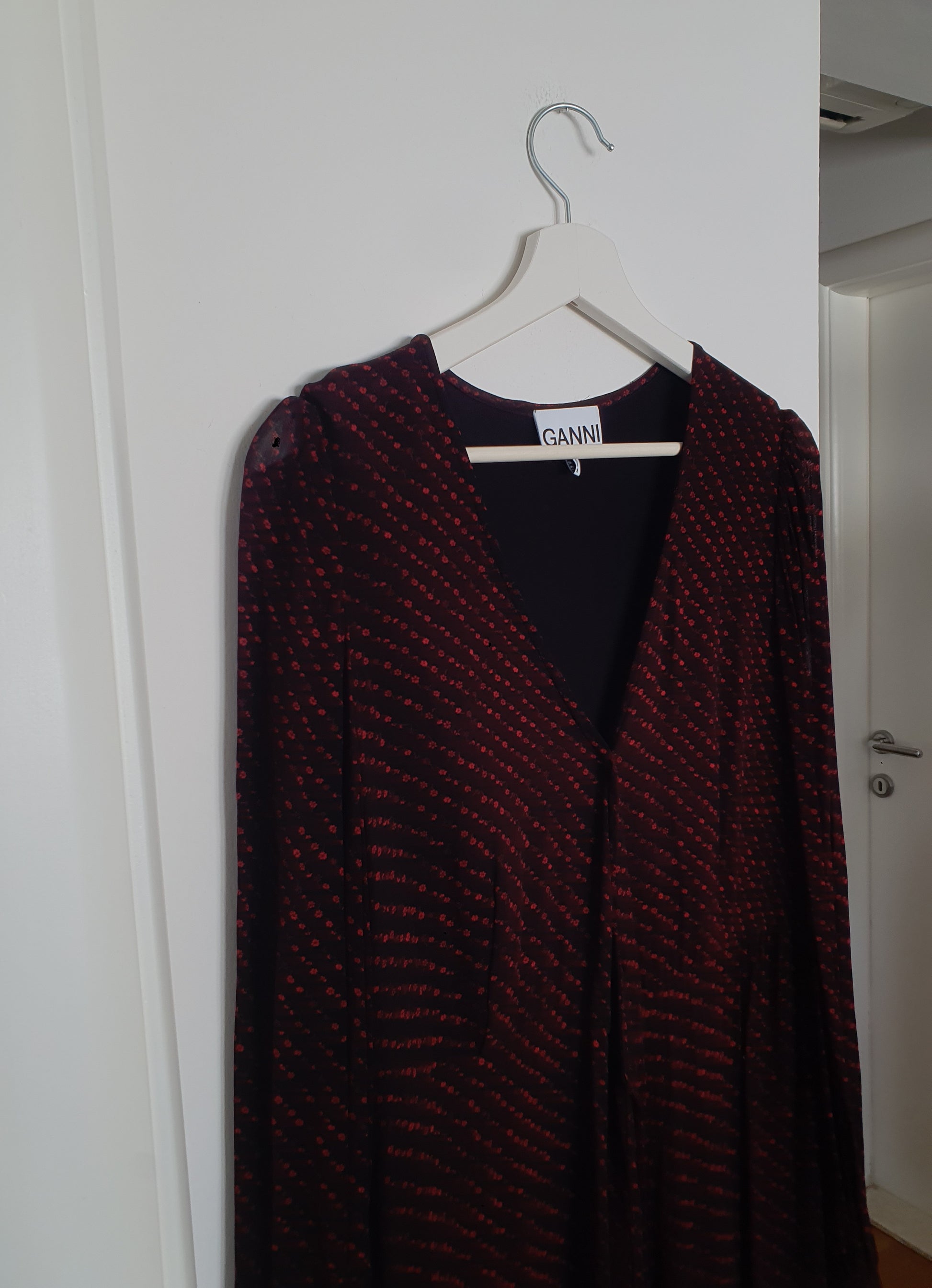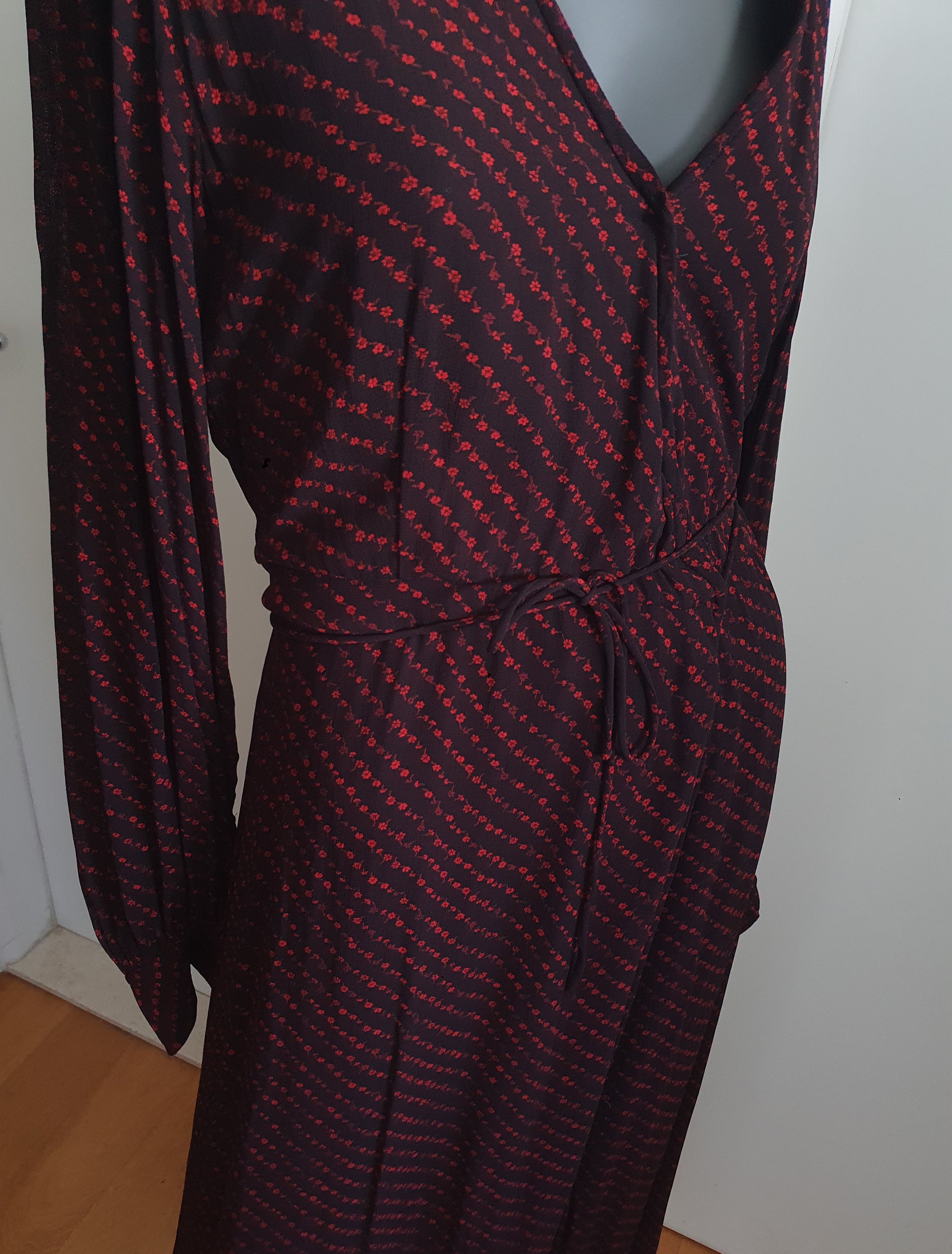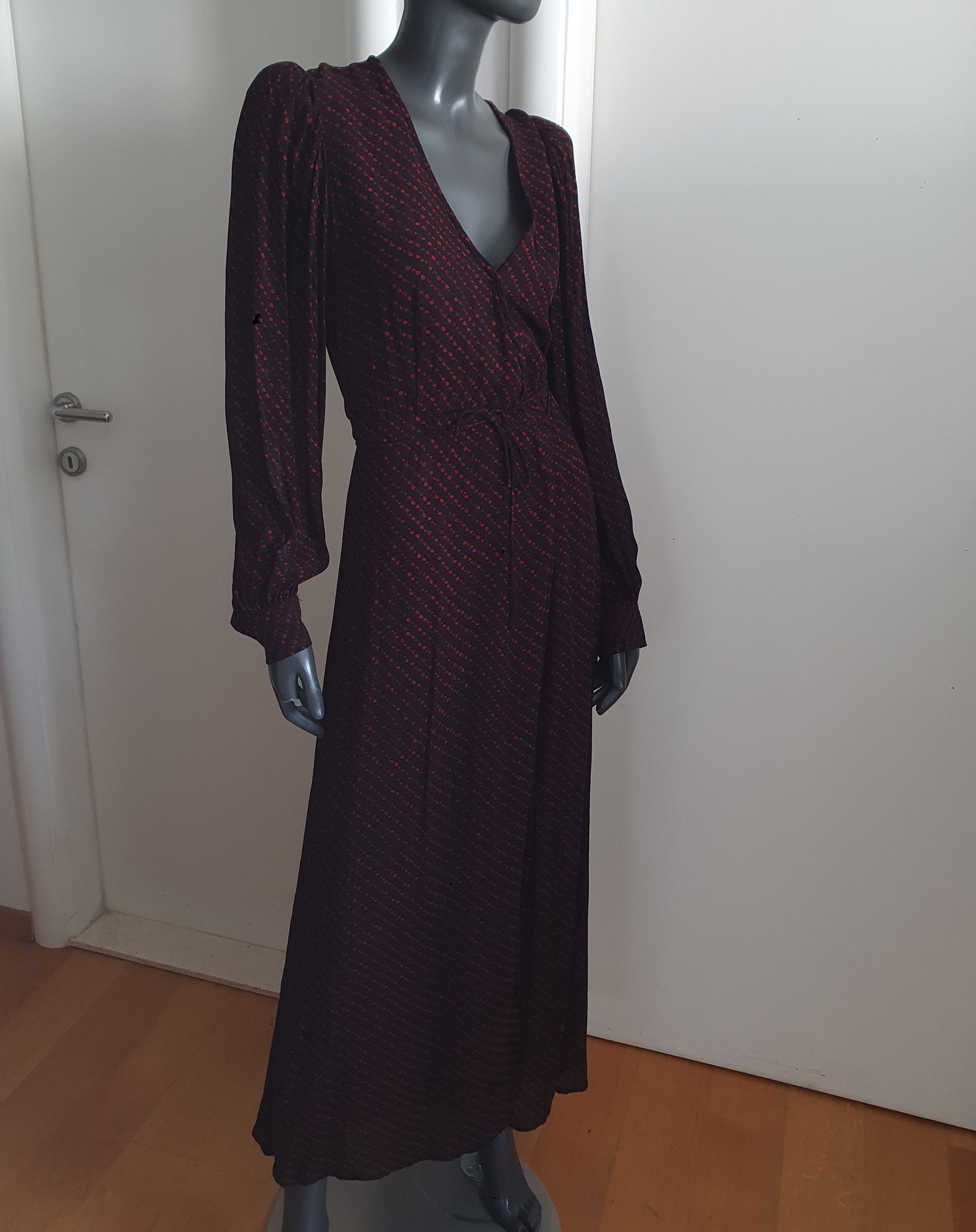 Ganni duga haljina od viskoze. Crna lagana podstava svugdje osim na rukavima. V-izrez. U struku se veže trakicama. Fino pada 🤓❤