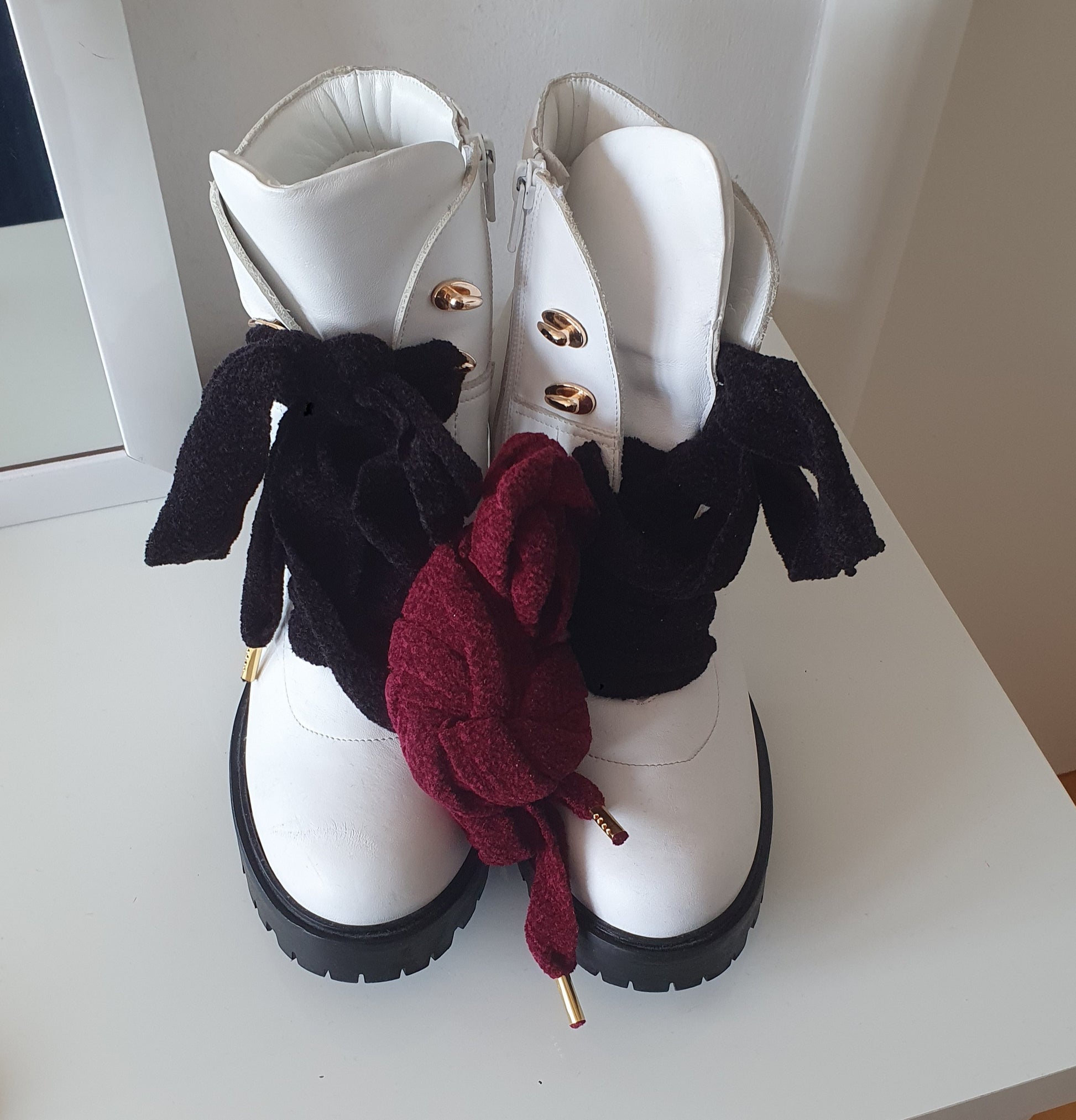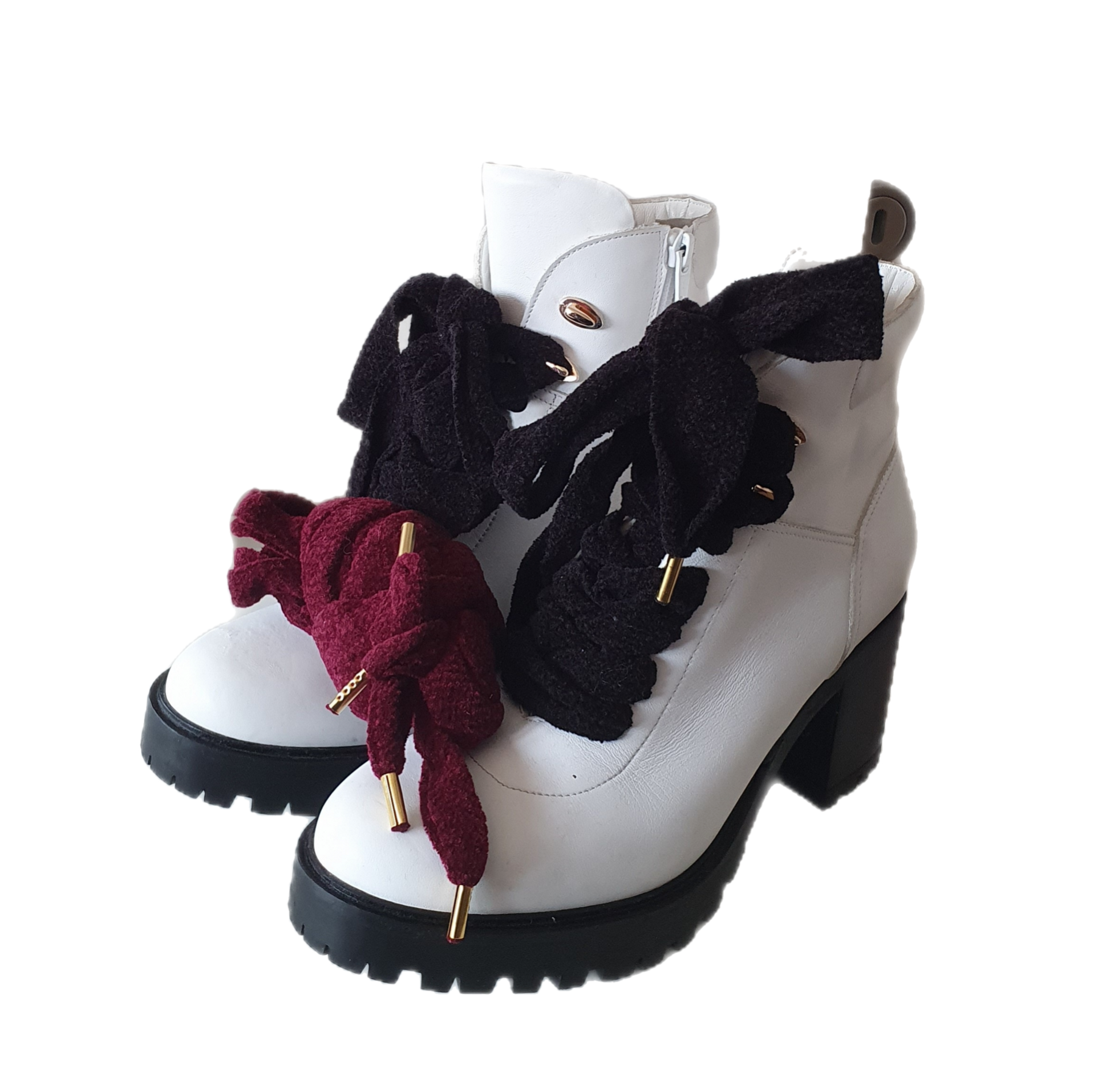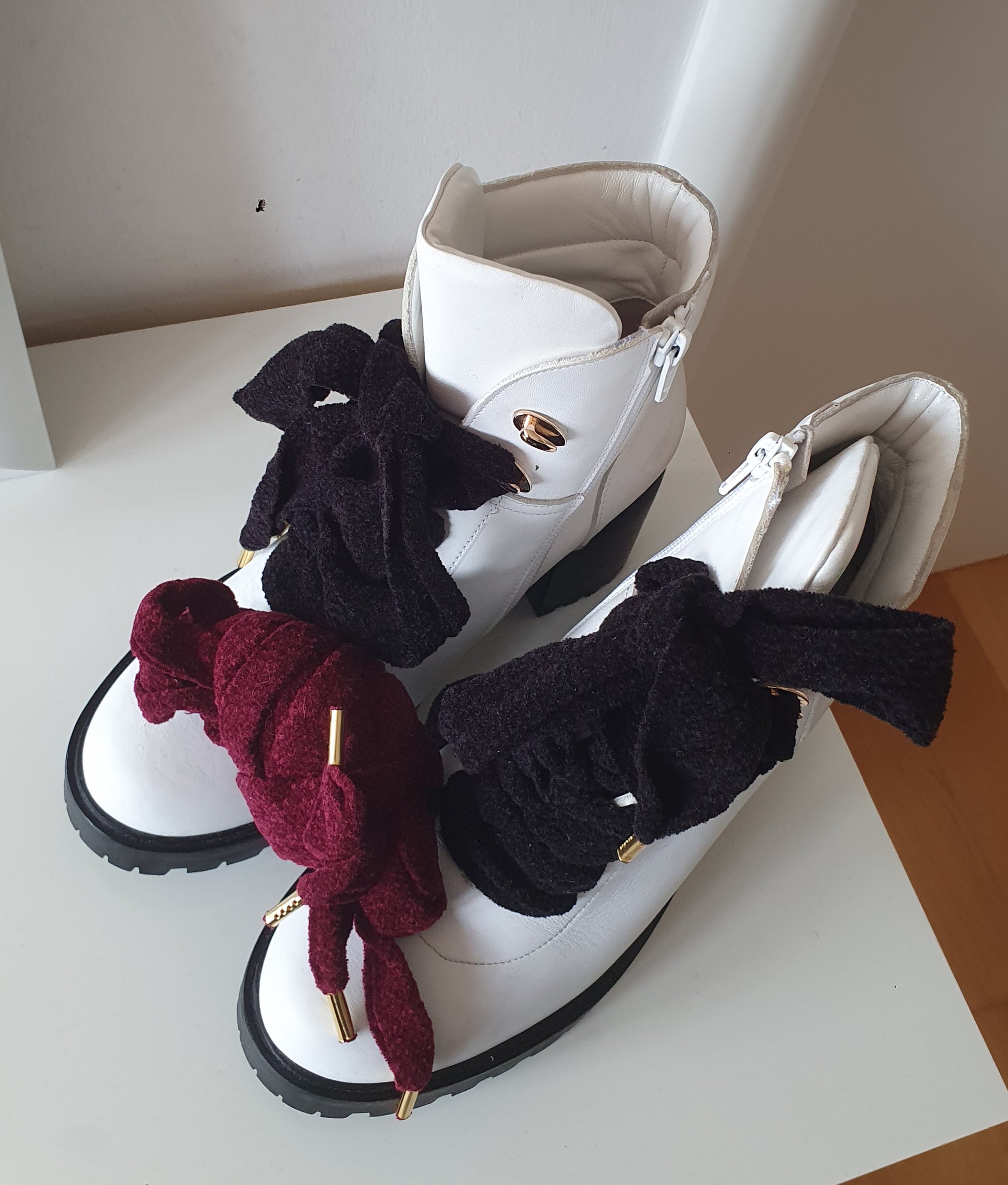 Giancarlo Paoli čizme od bijele kože. Dva para vezica - crne i bordo.