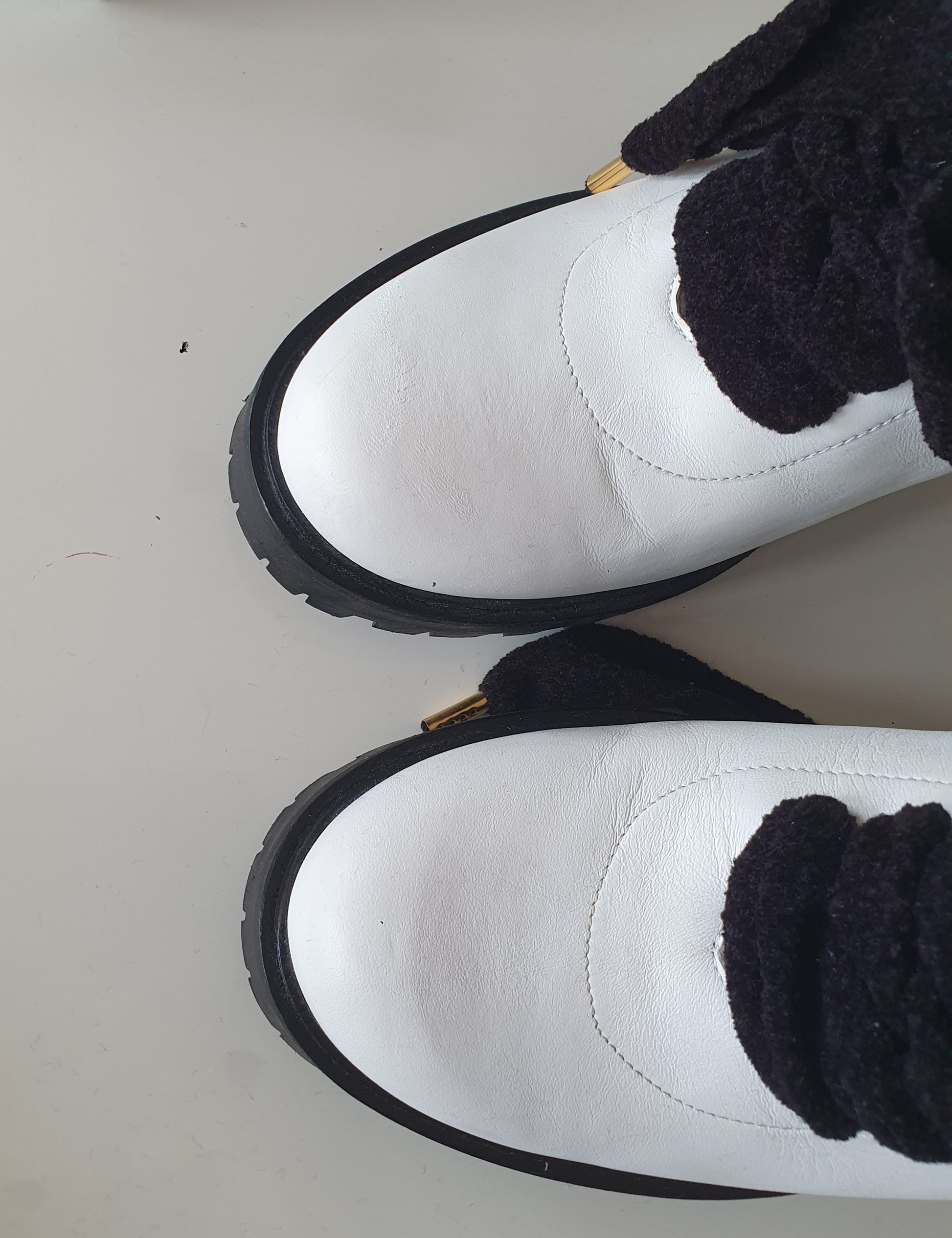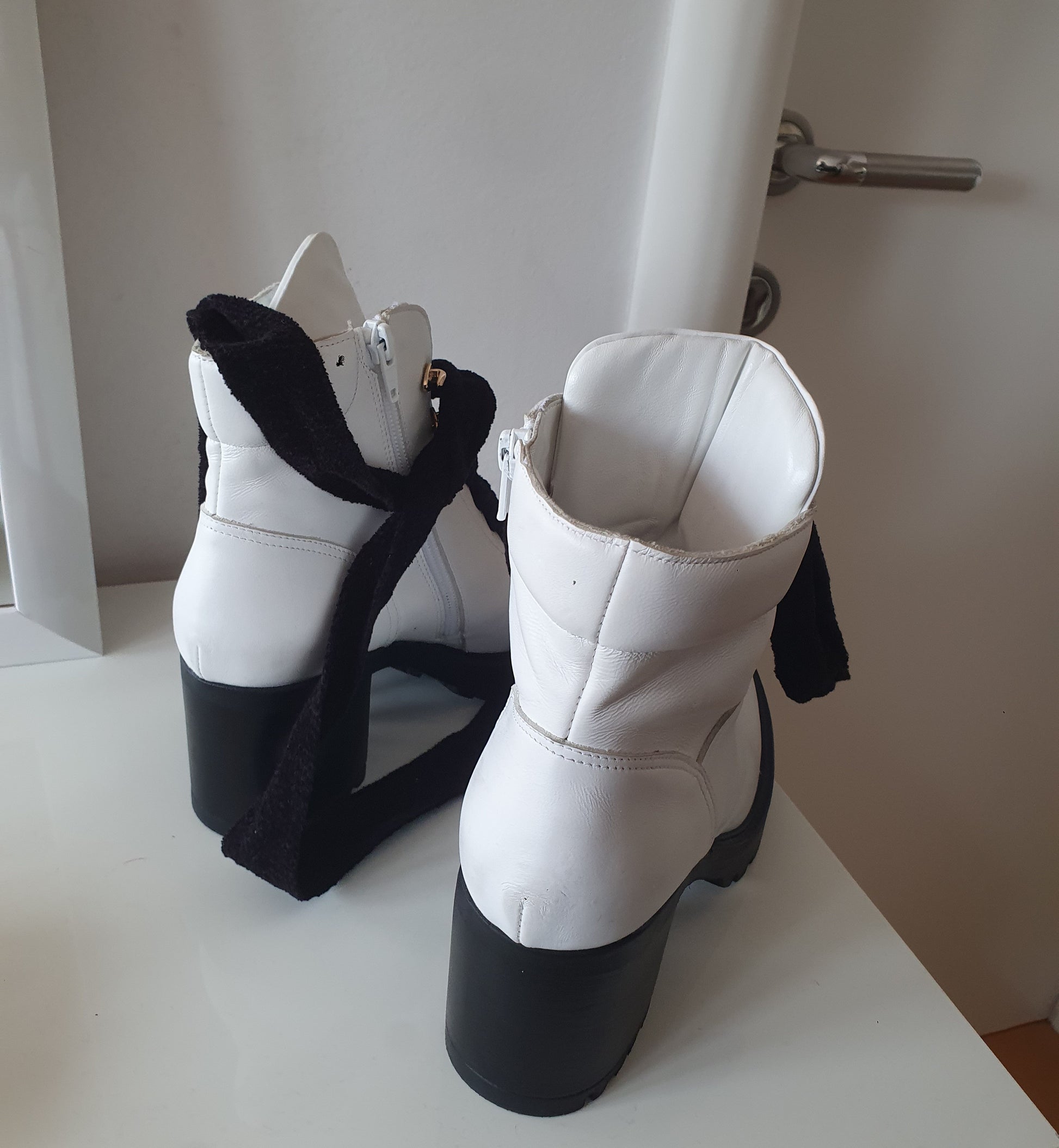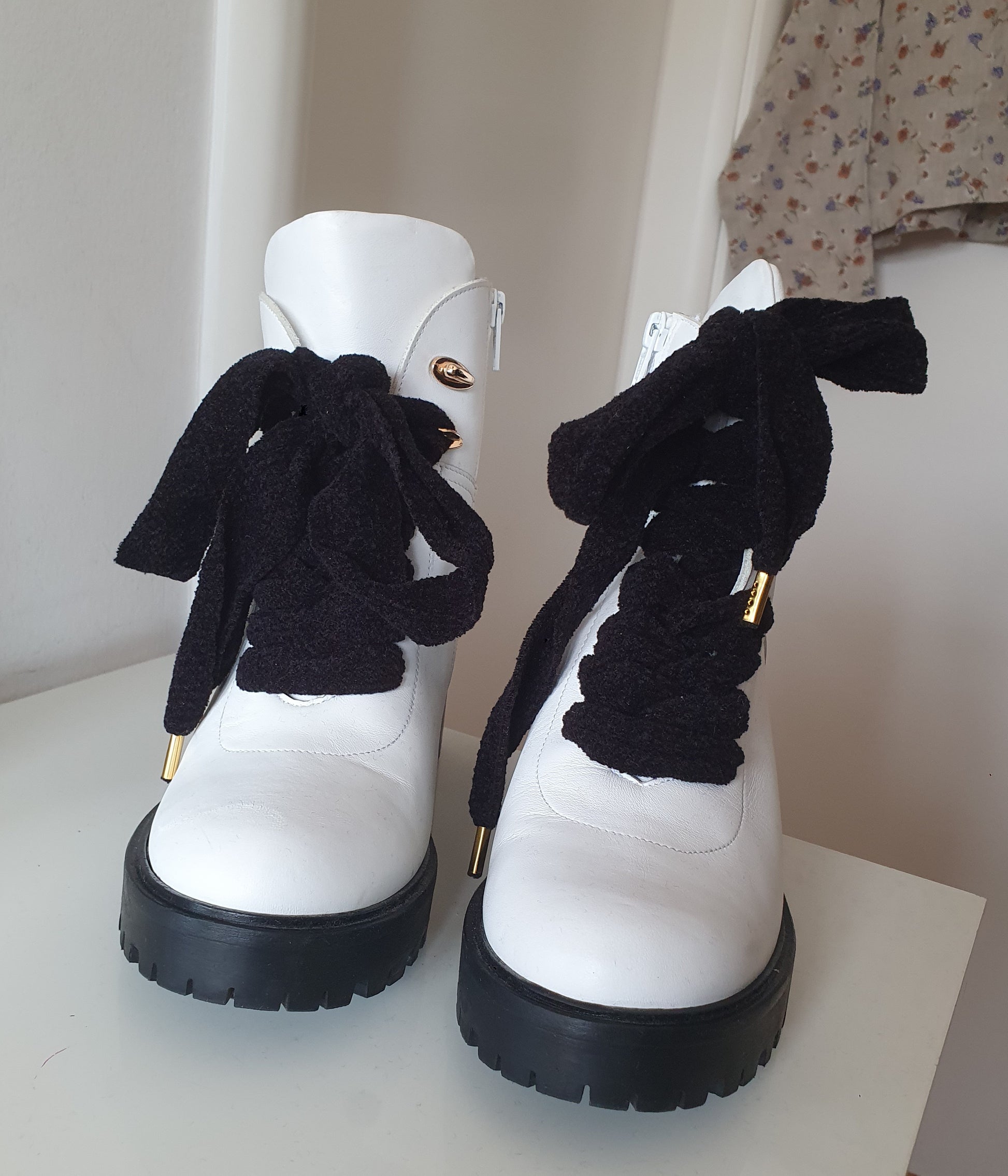 Giancarlo Paoli čizme od bijele kože. Dva para vezica - crne i bordo.