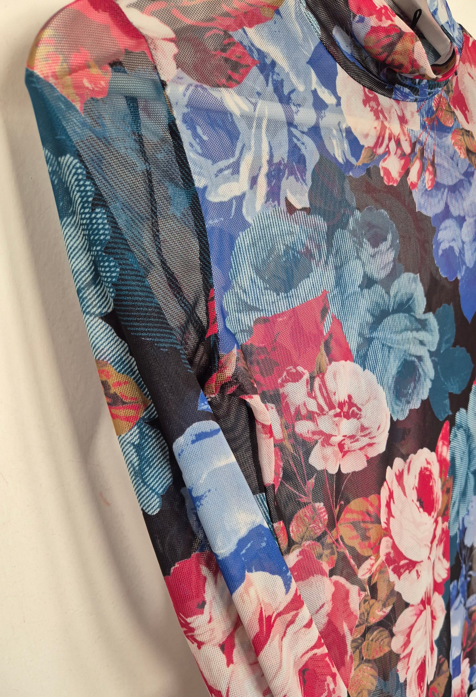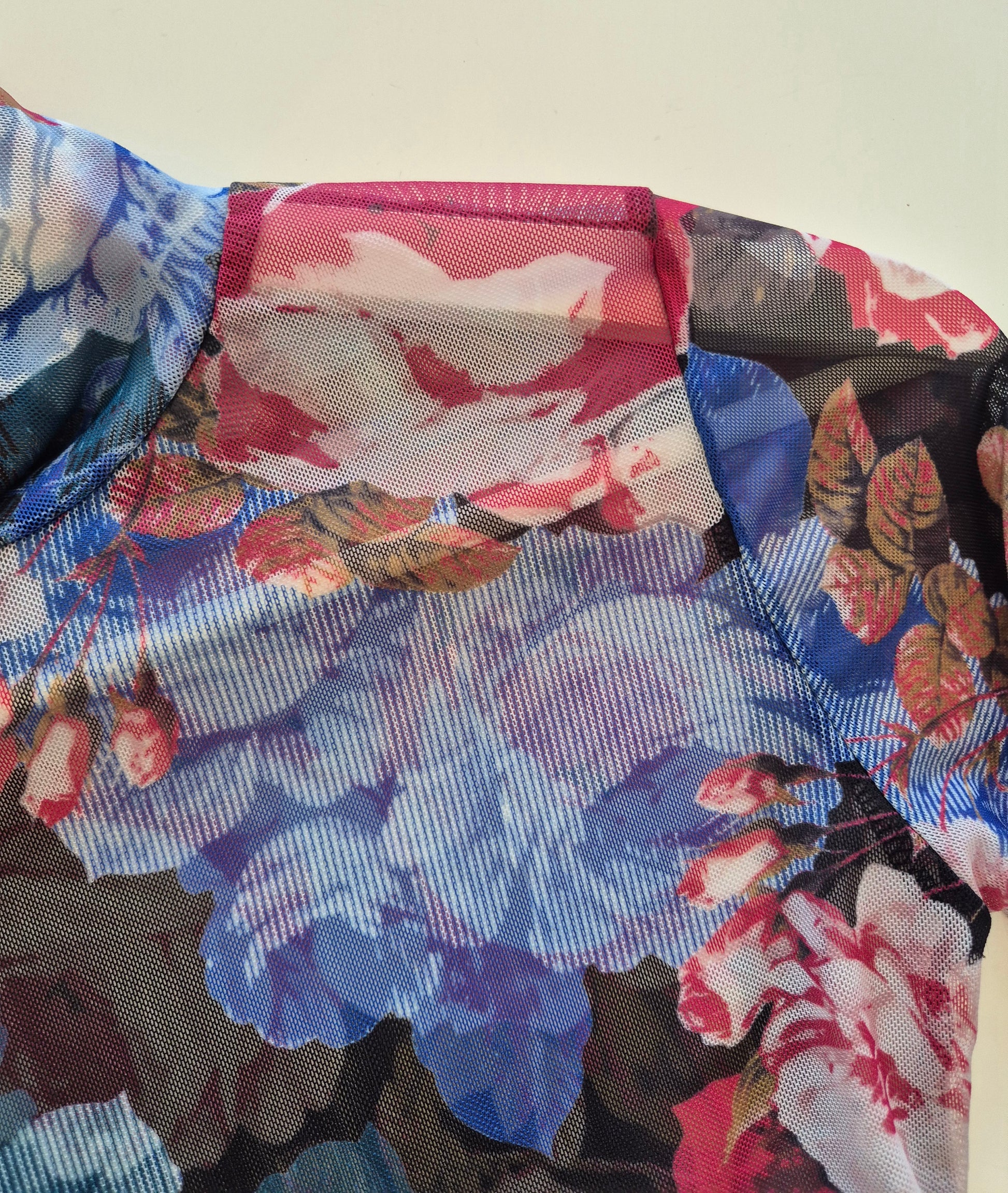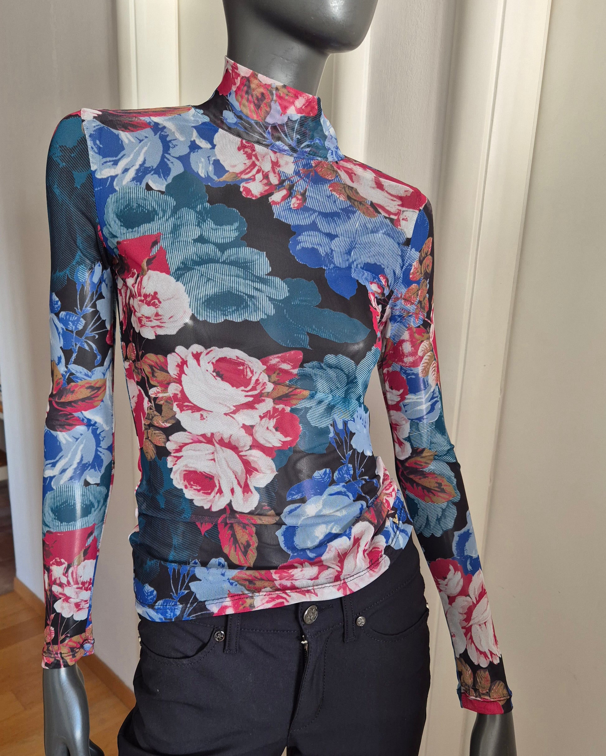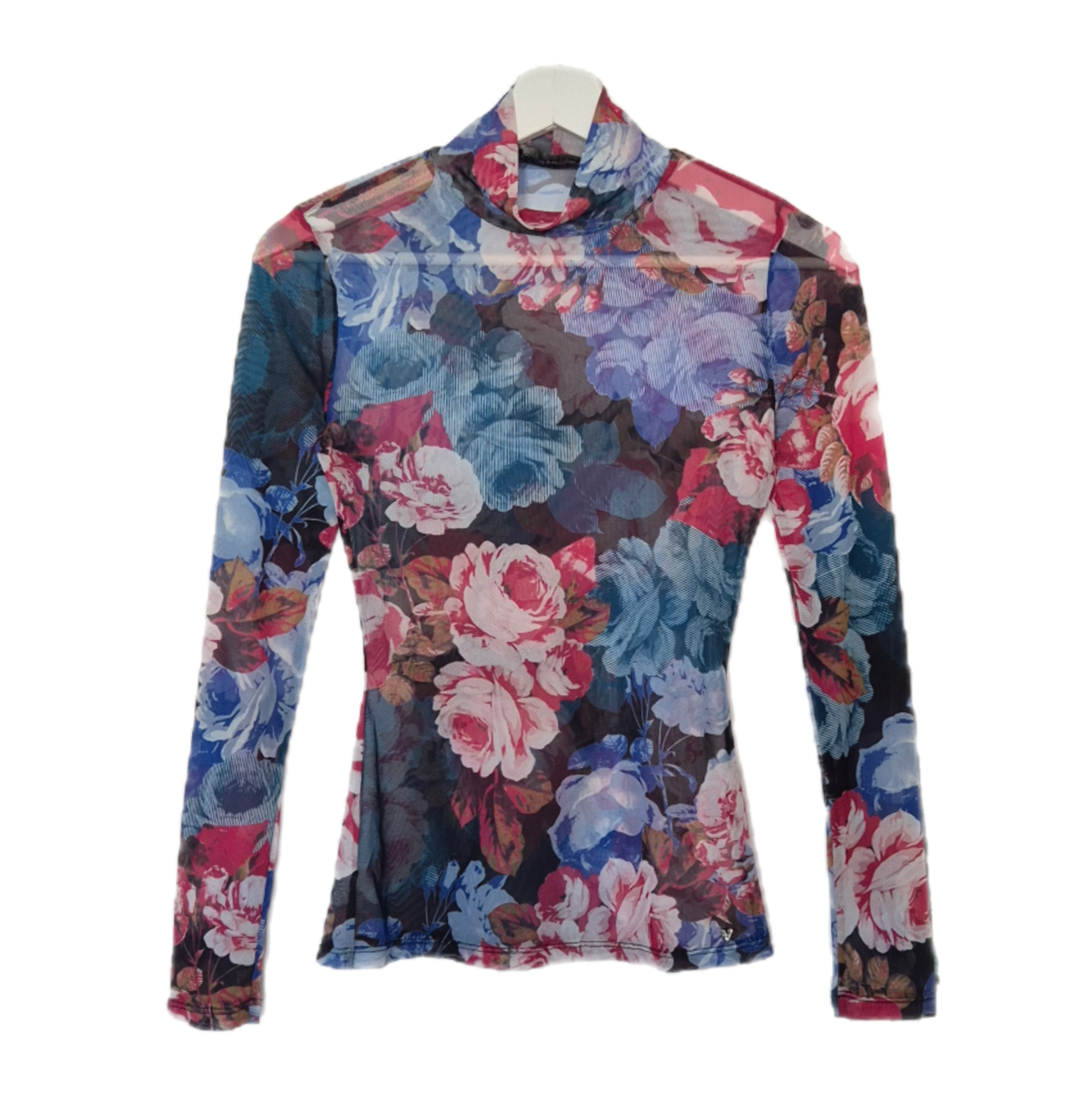 Guess top od sitne mrežice. Viši ovratnik, odlične boje. Metalna pločica s imenom brenda bočno na dnu.