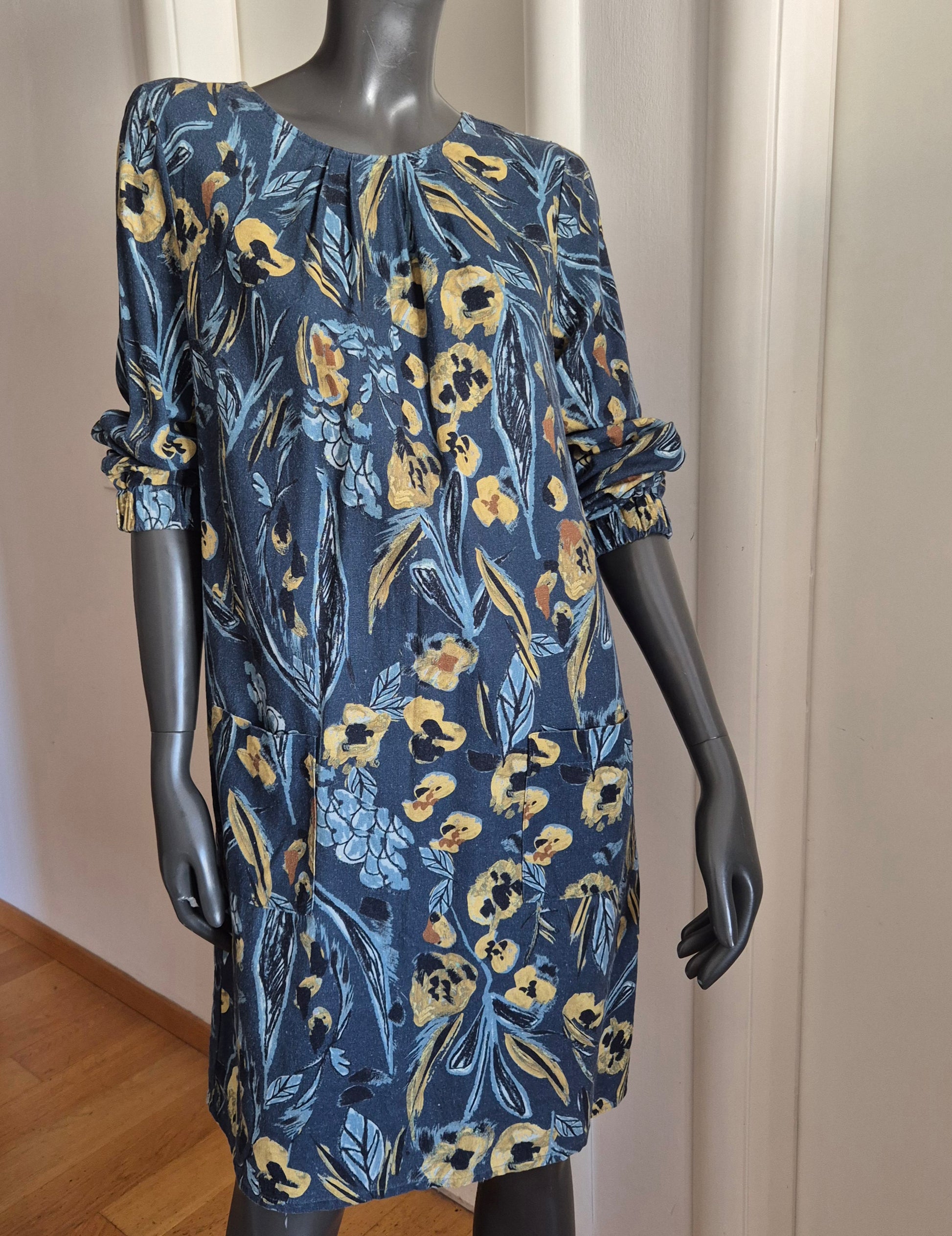 Haljina odličnog uzorka, ali i materijala: 55% konoplja i 45% viskoza.