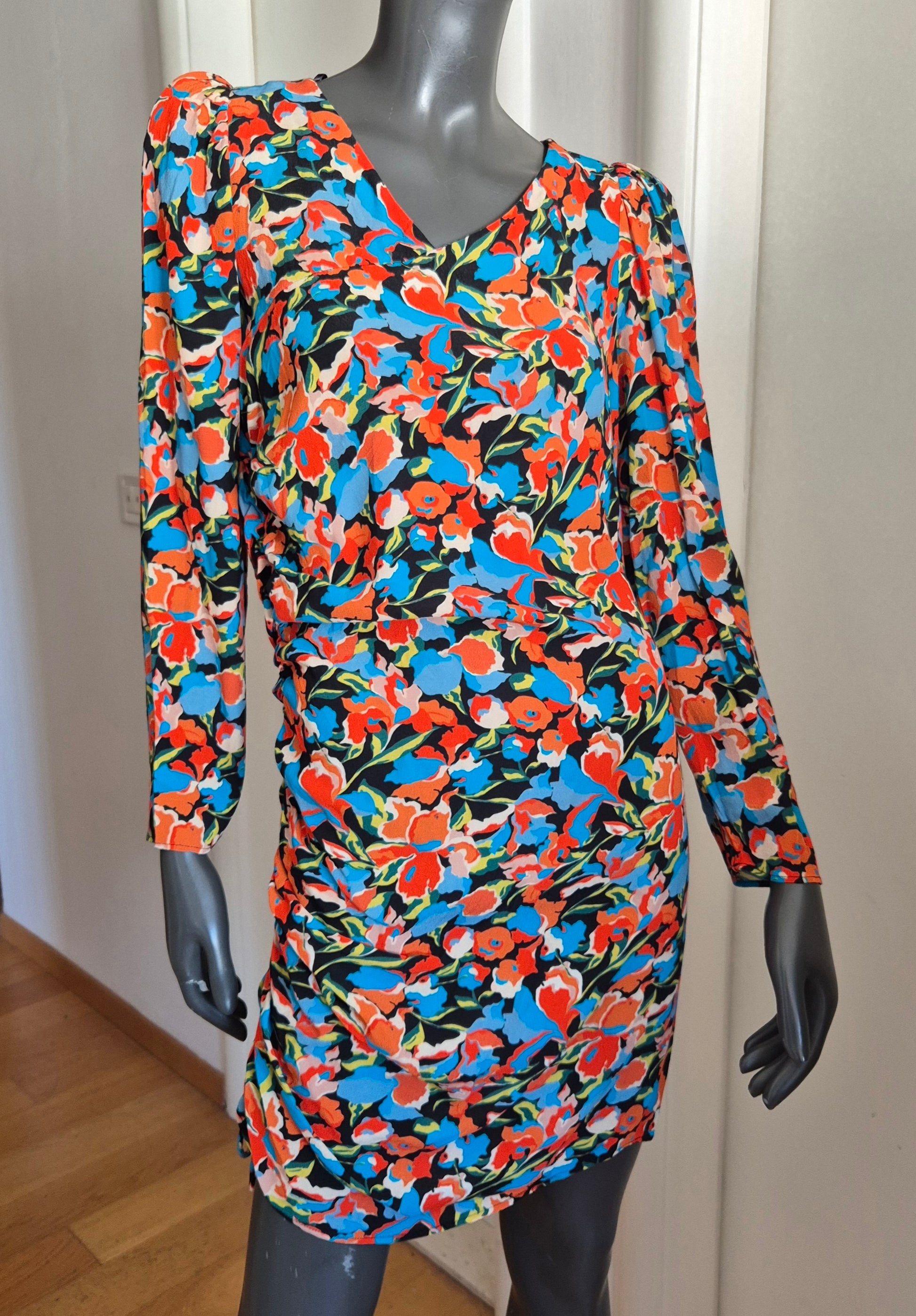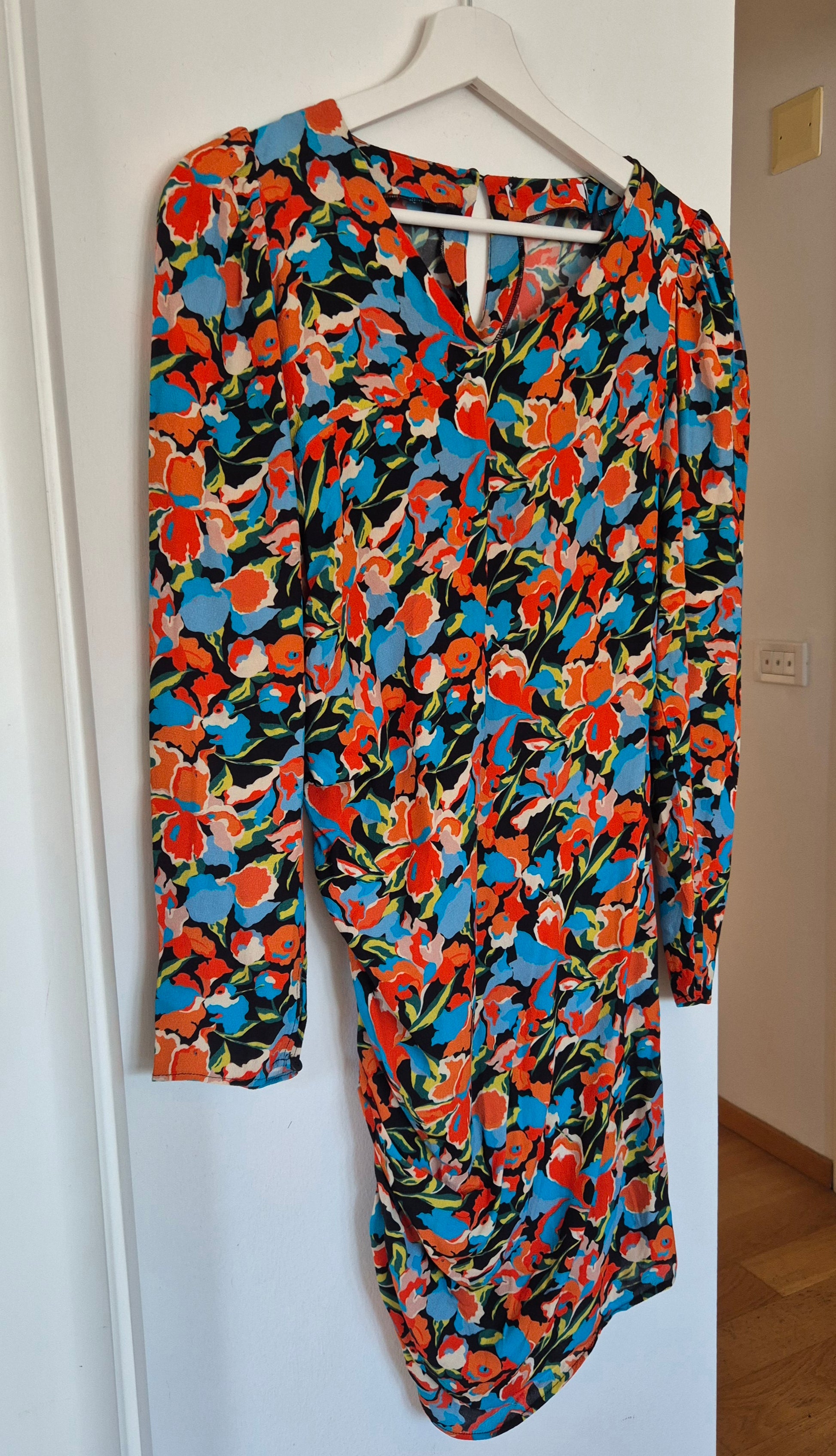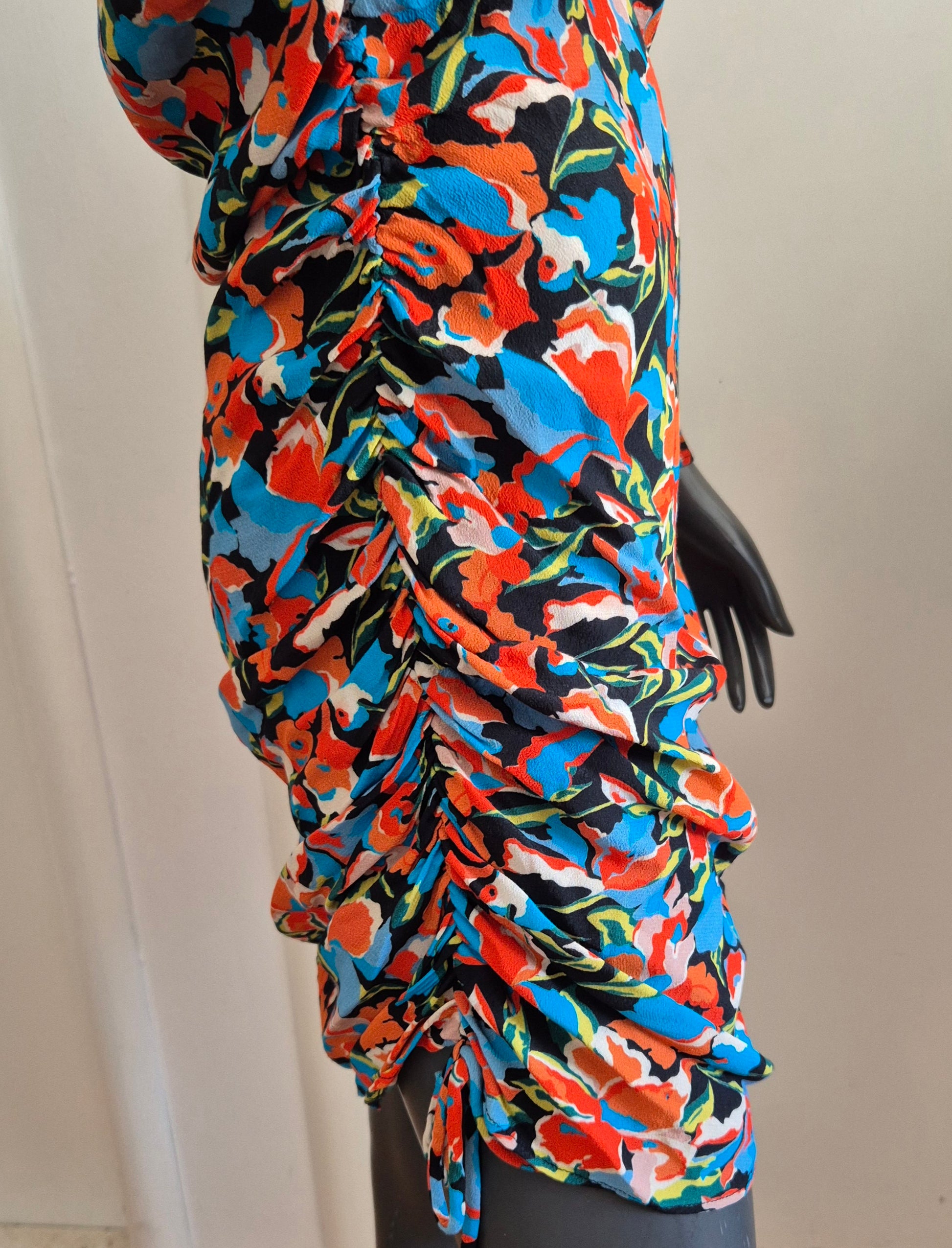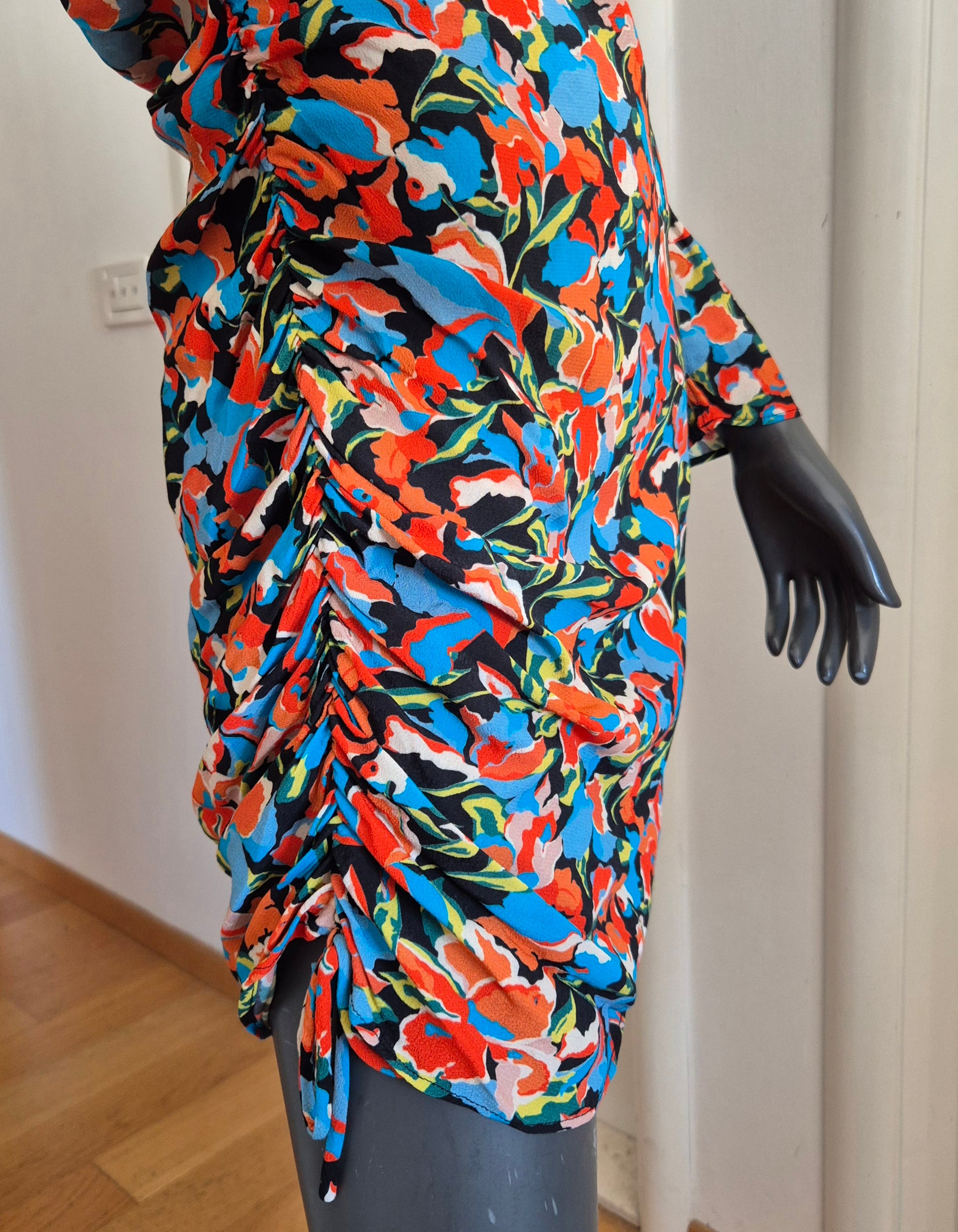 Haljina od viskoze cvjetnog uzorka. Asimetrična zbog nabranog detalja na jednom boku.