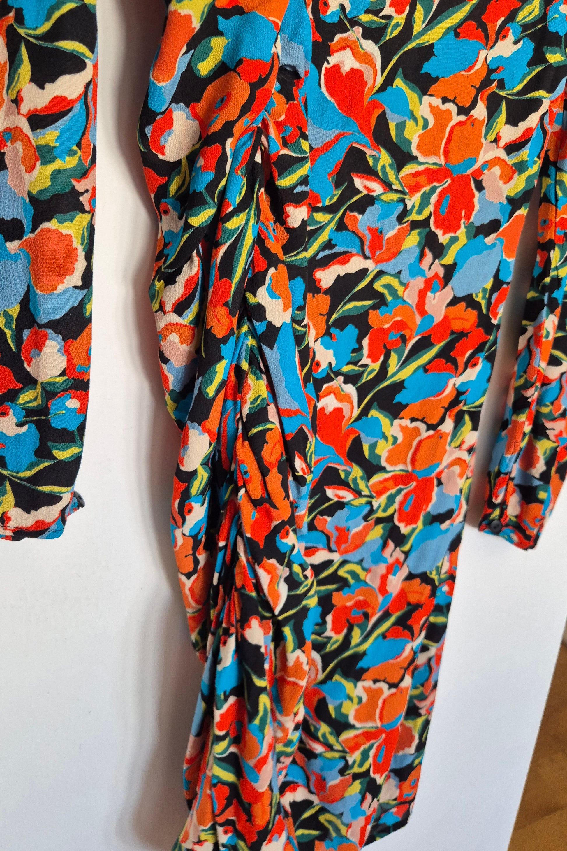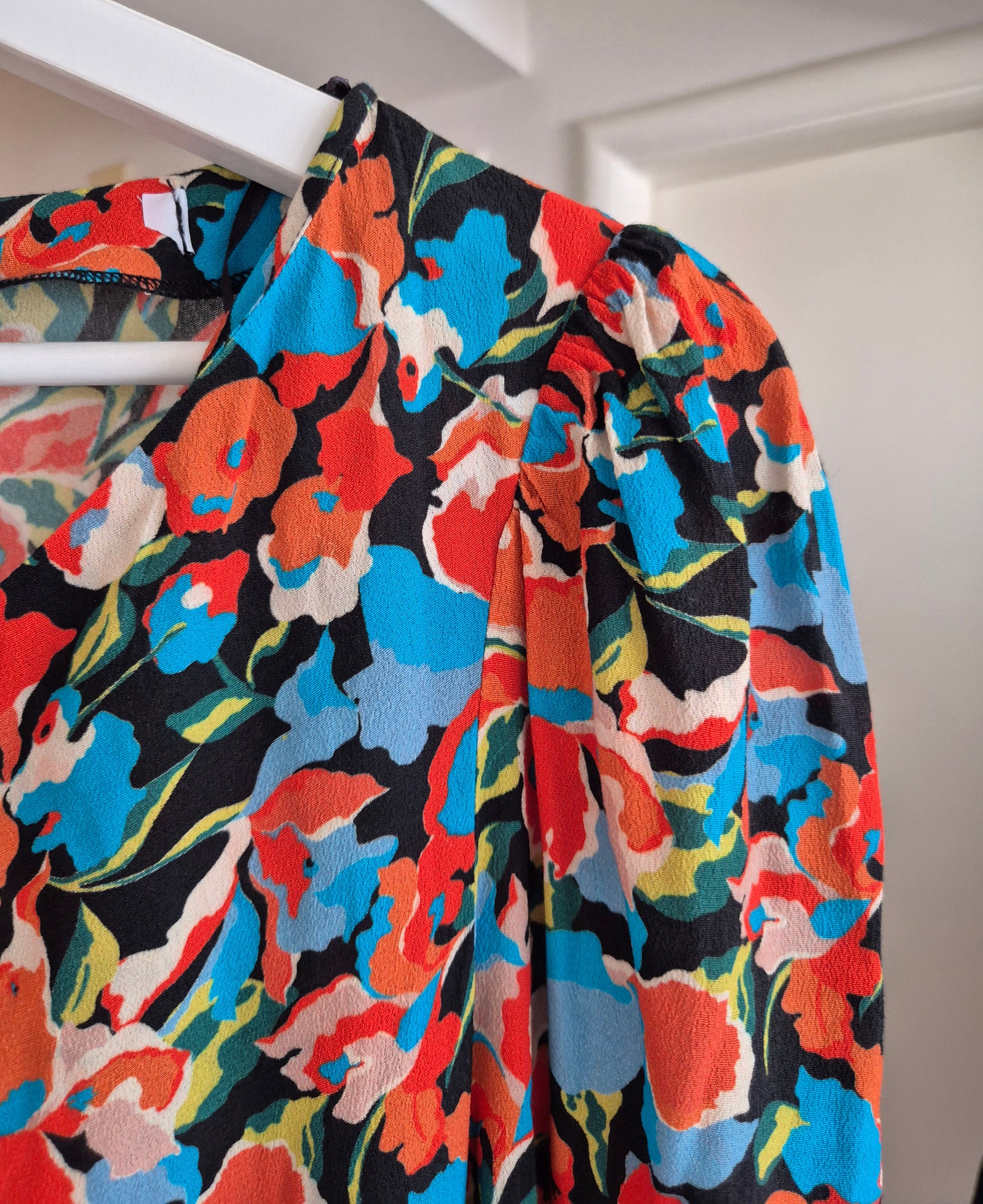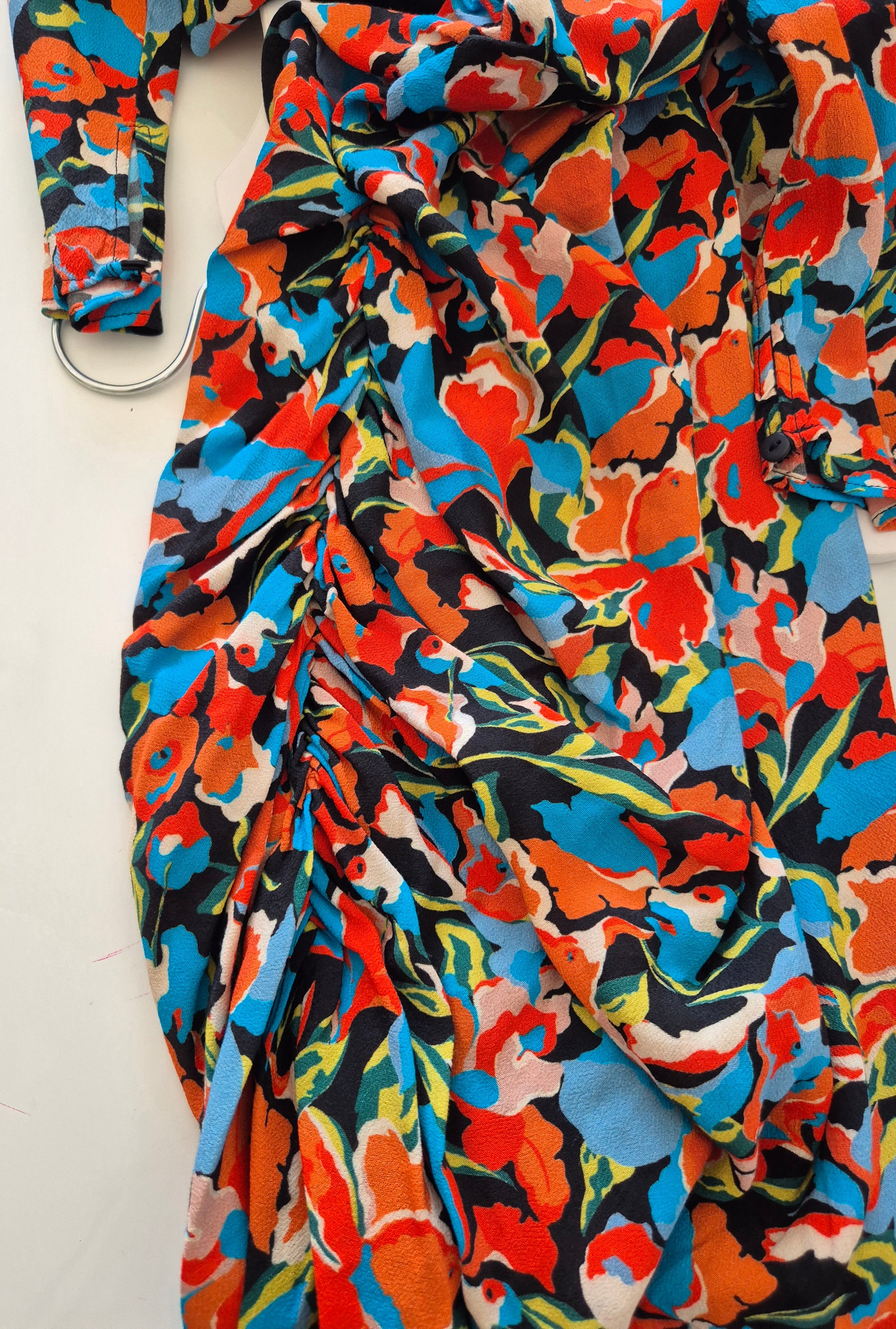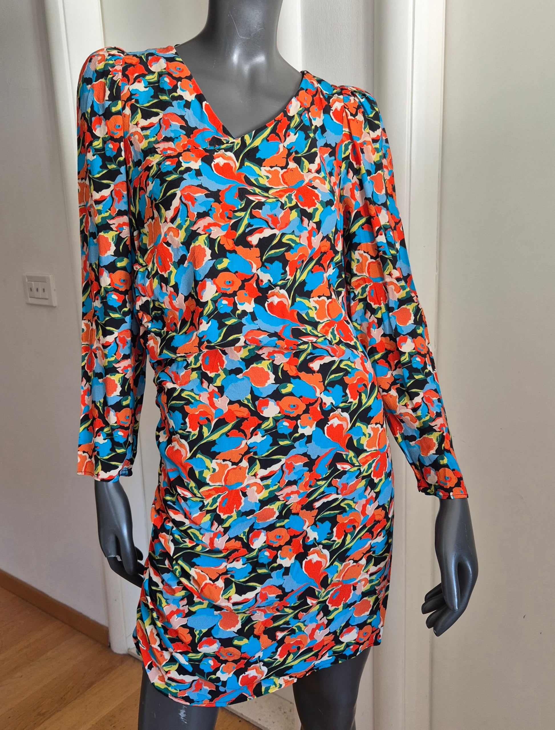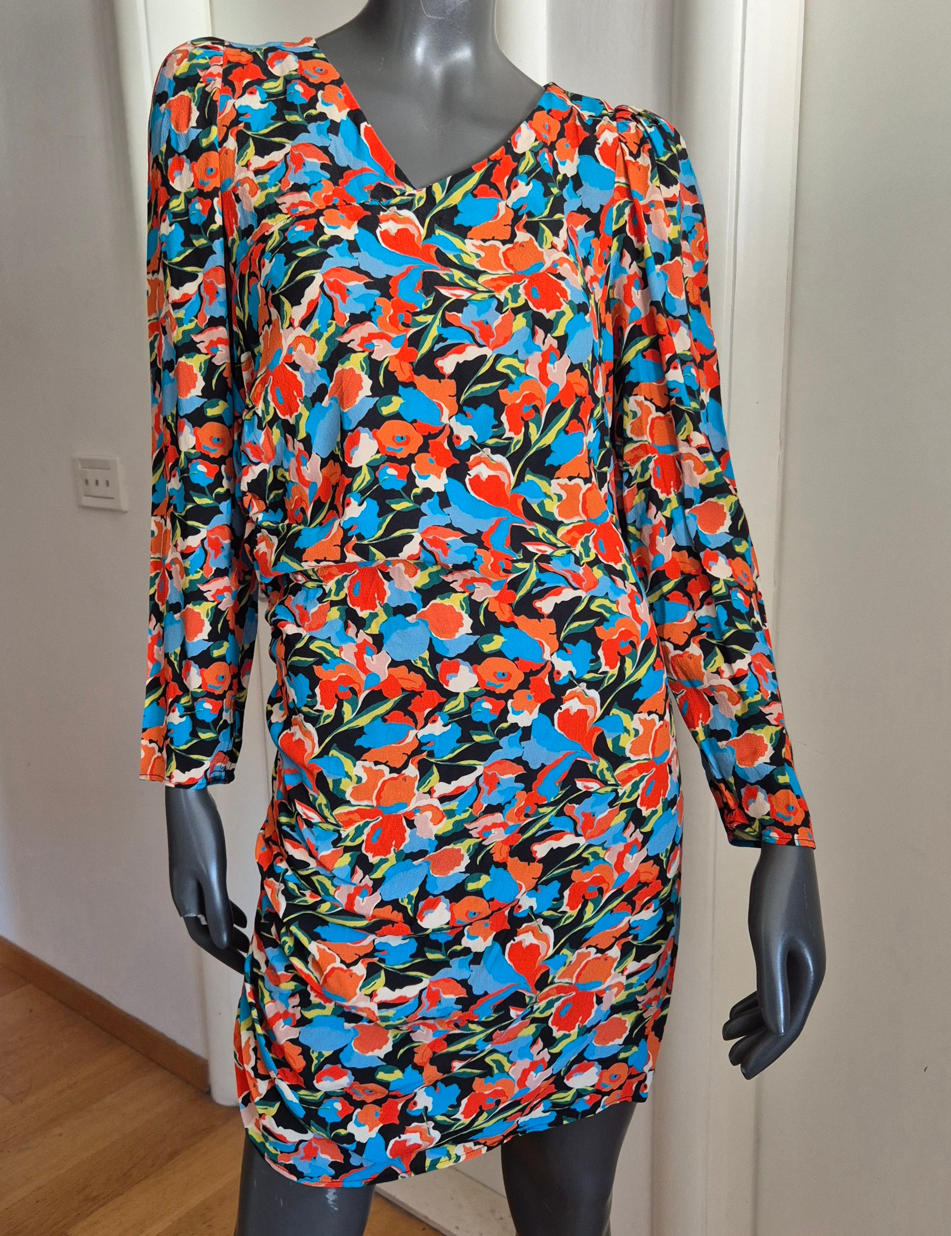 Haljina od viskoze cvjetnog uzorka. Asimetrična zbog nabranog detalja na jednom boku.