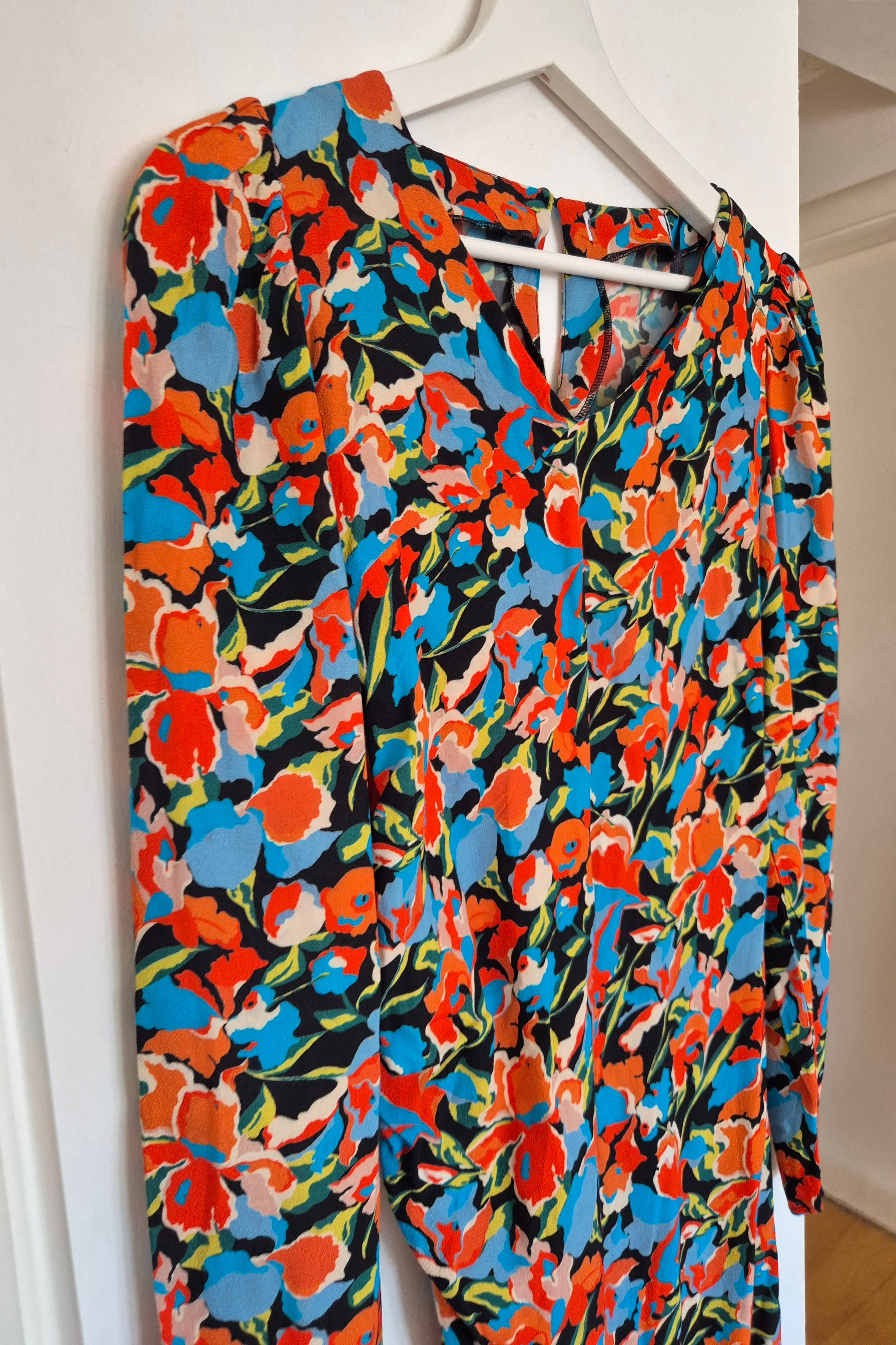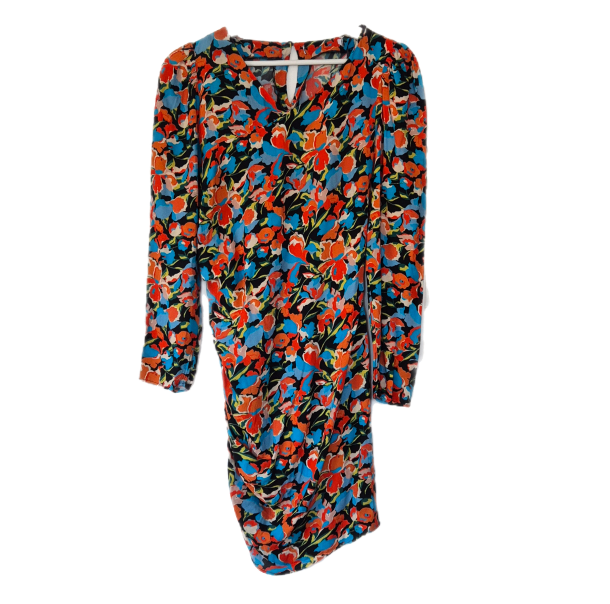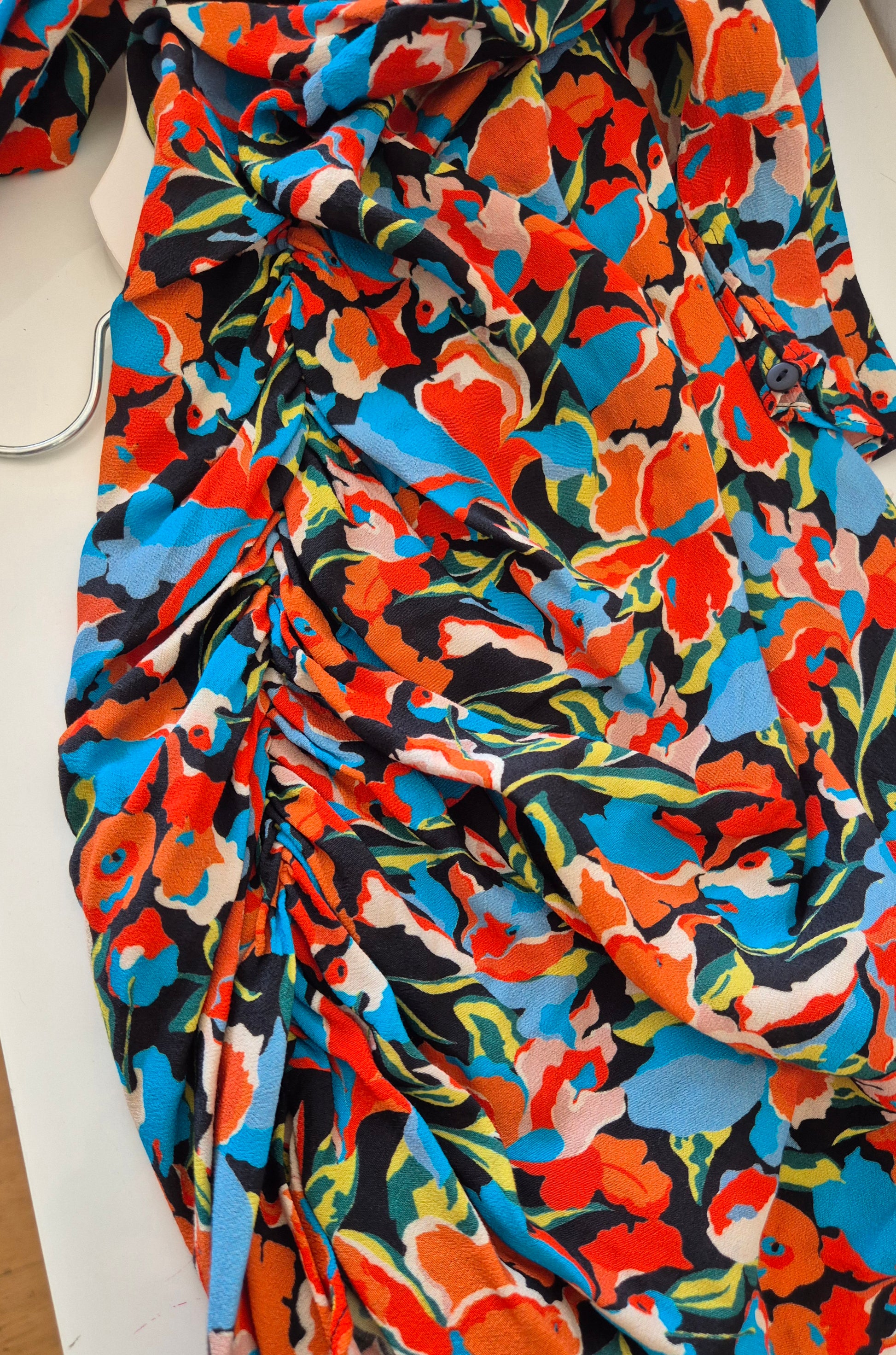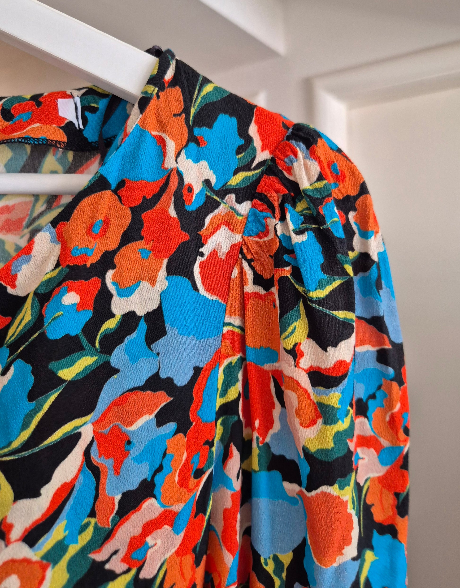 Haljina od viskoze cvjetnog uzorka. Asimetrična zbog nabranog detalja na jednom boku.
