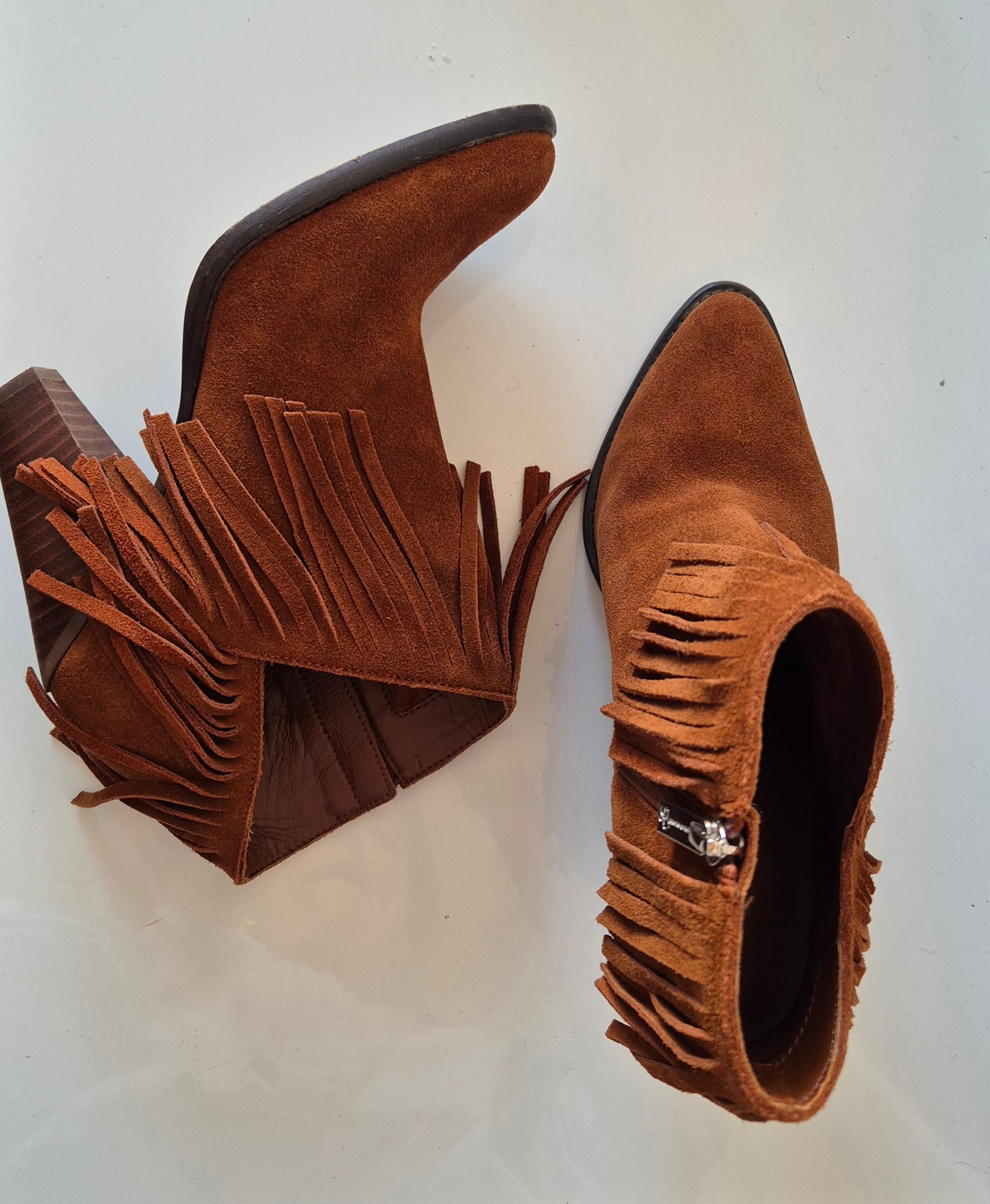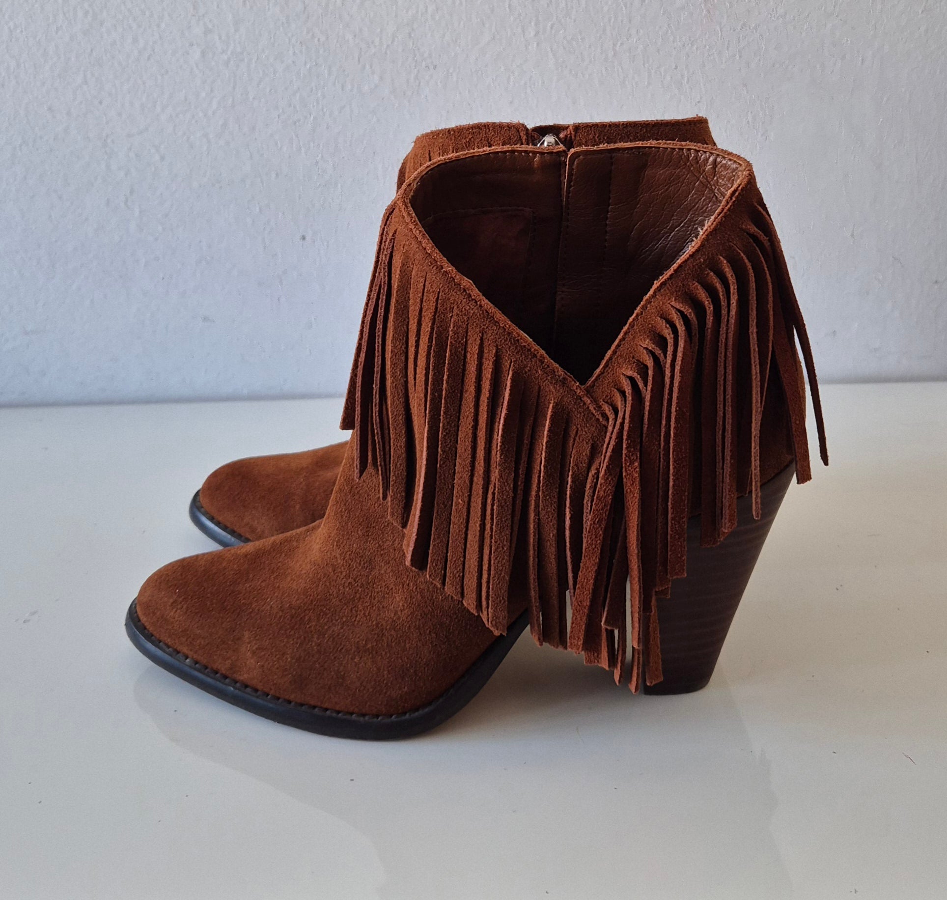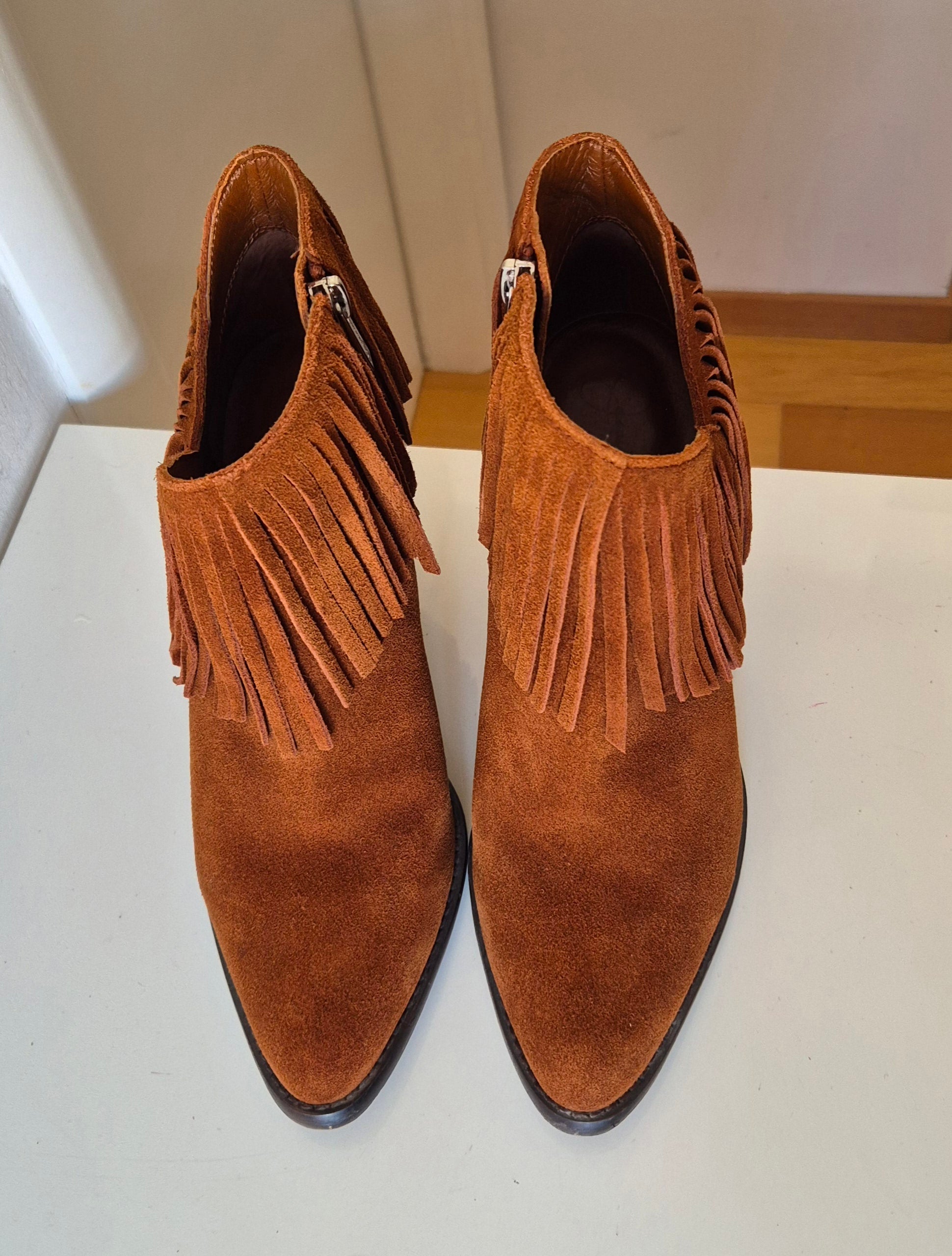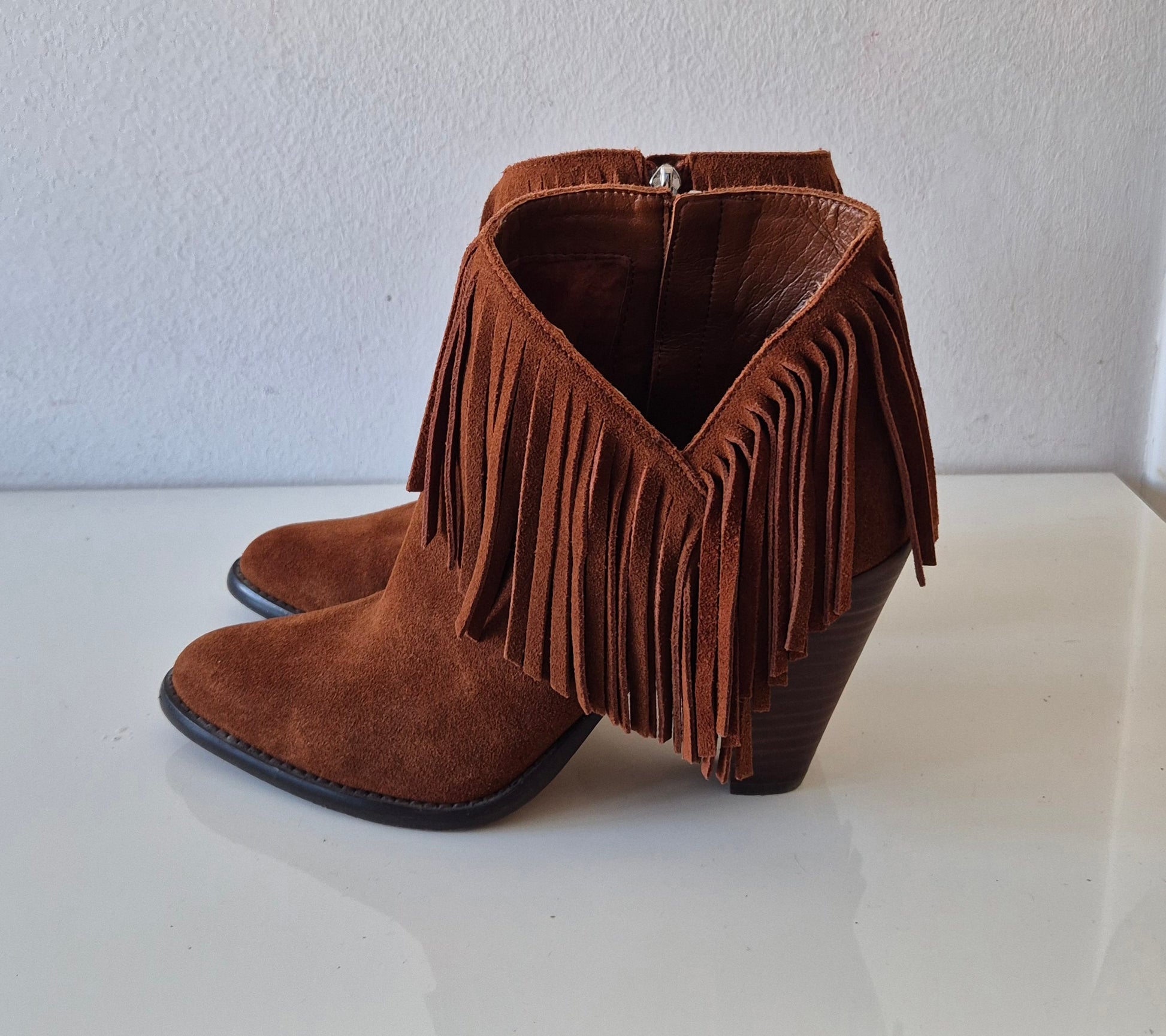 Predobre čizme od brušene kože, Jessica Simpson. S resicama, asimetrično rezane bočno. Udobne, solidne :)