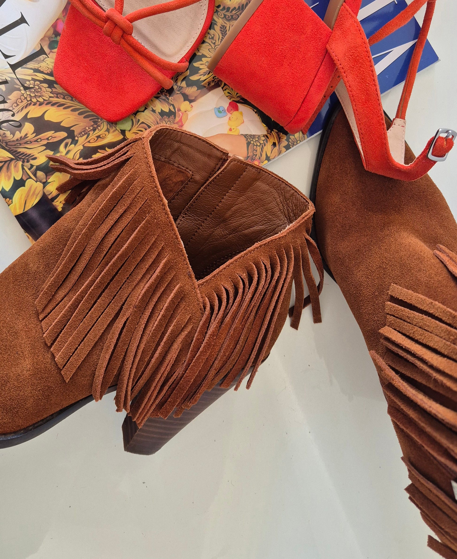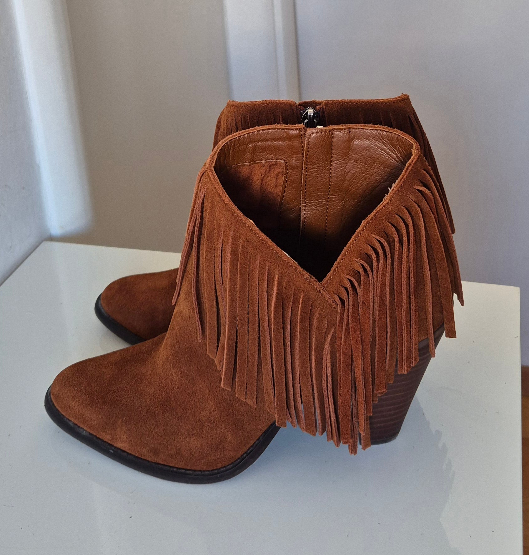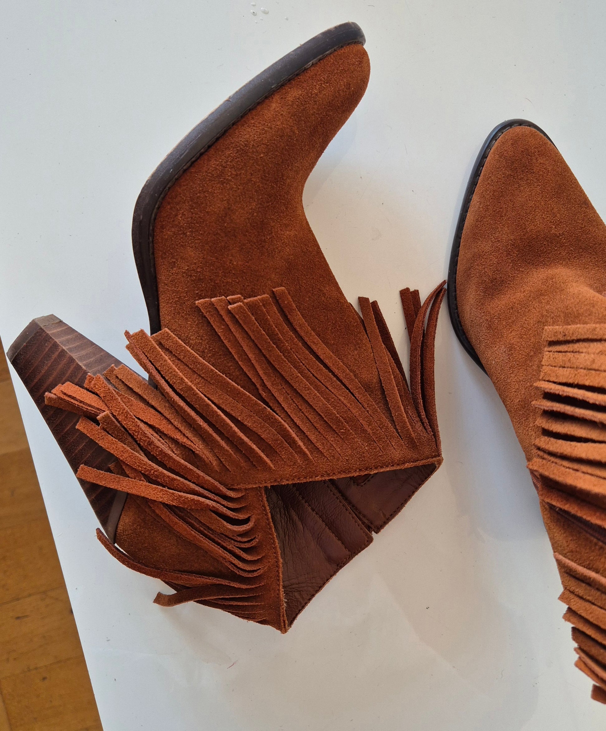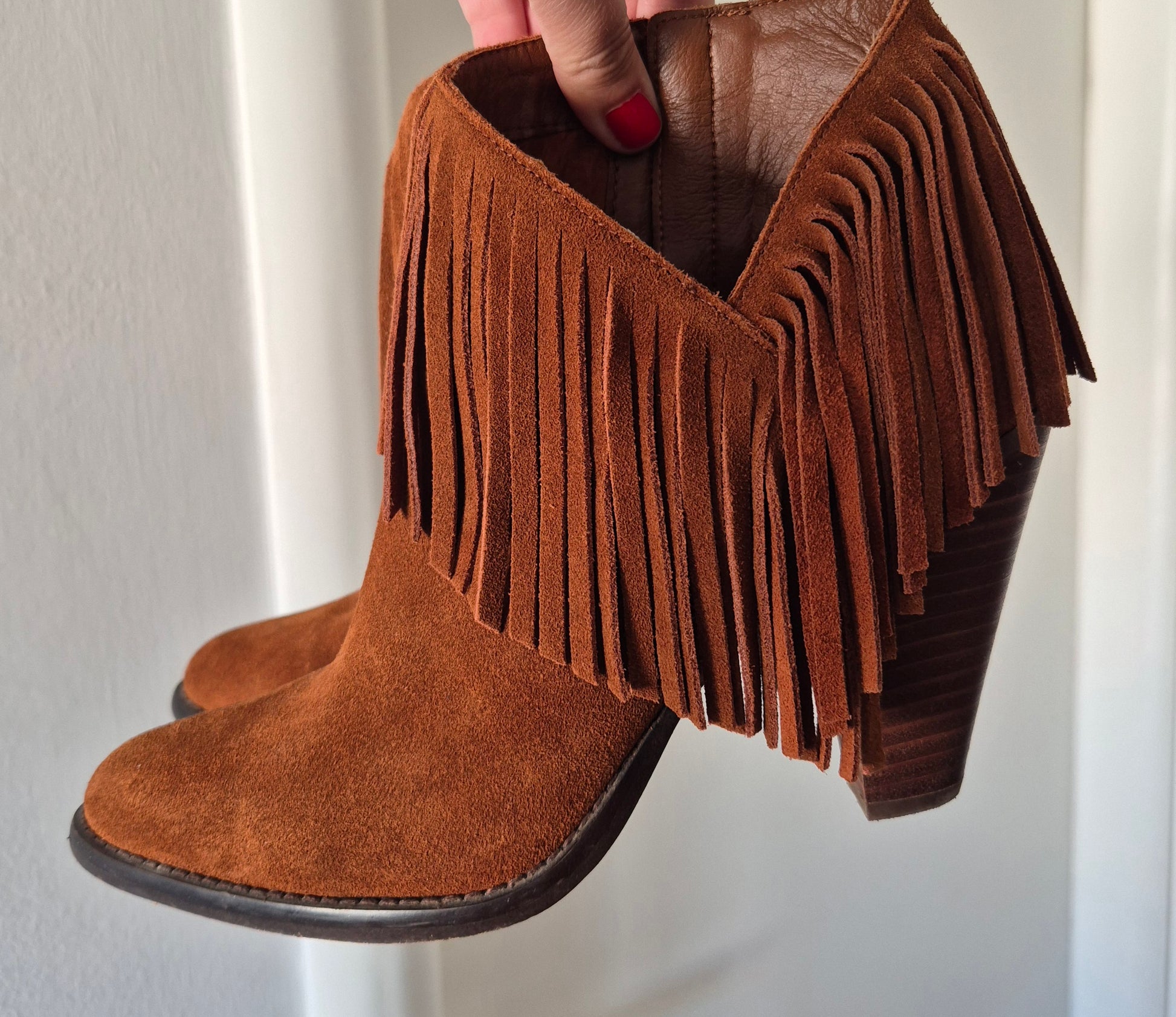 Predobre čizme od brušene kože, Jessica Simpson. S resicama, asimetrično rezane bočno. Udobne, solidne :)