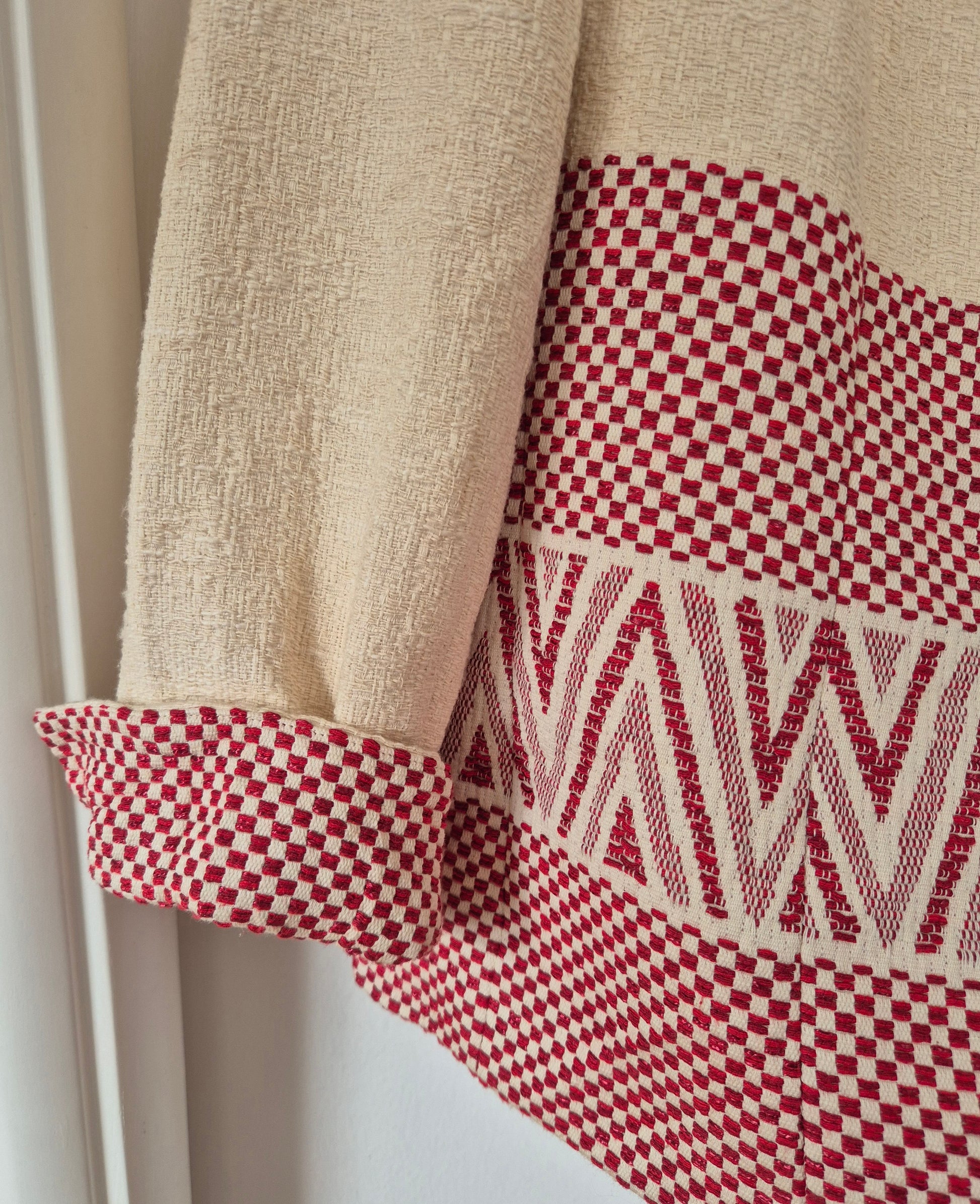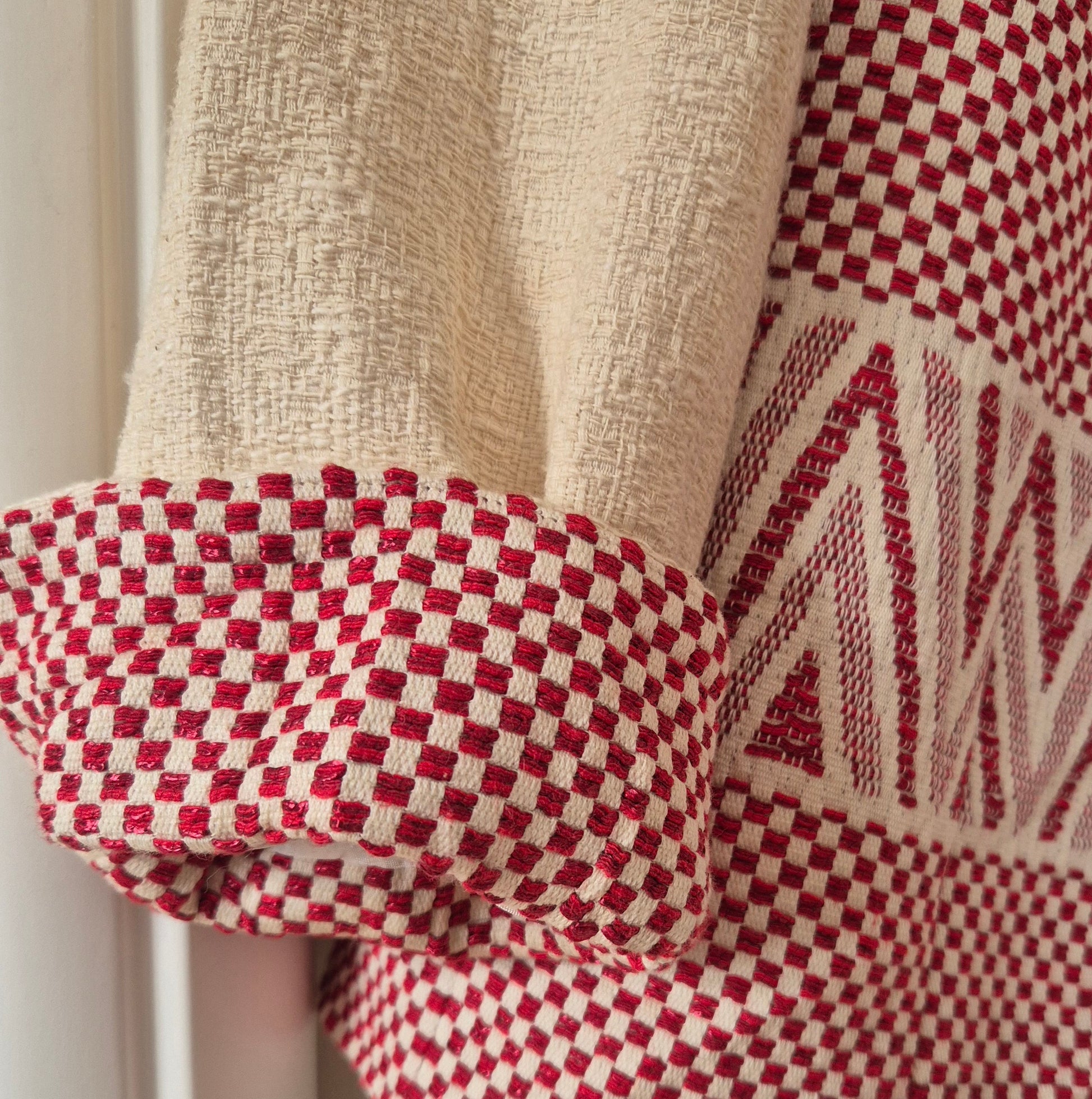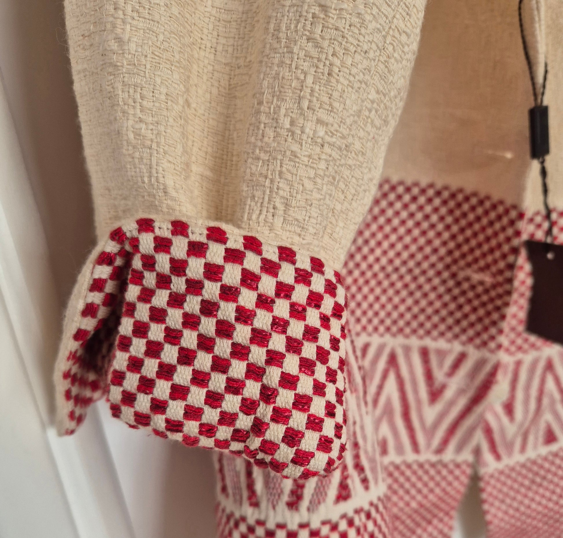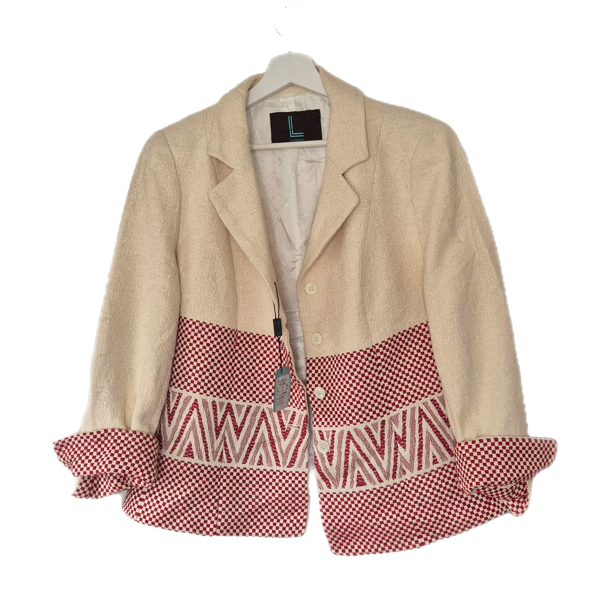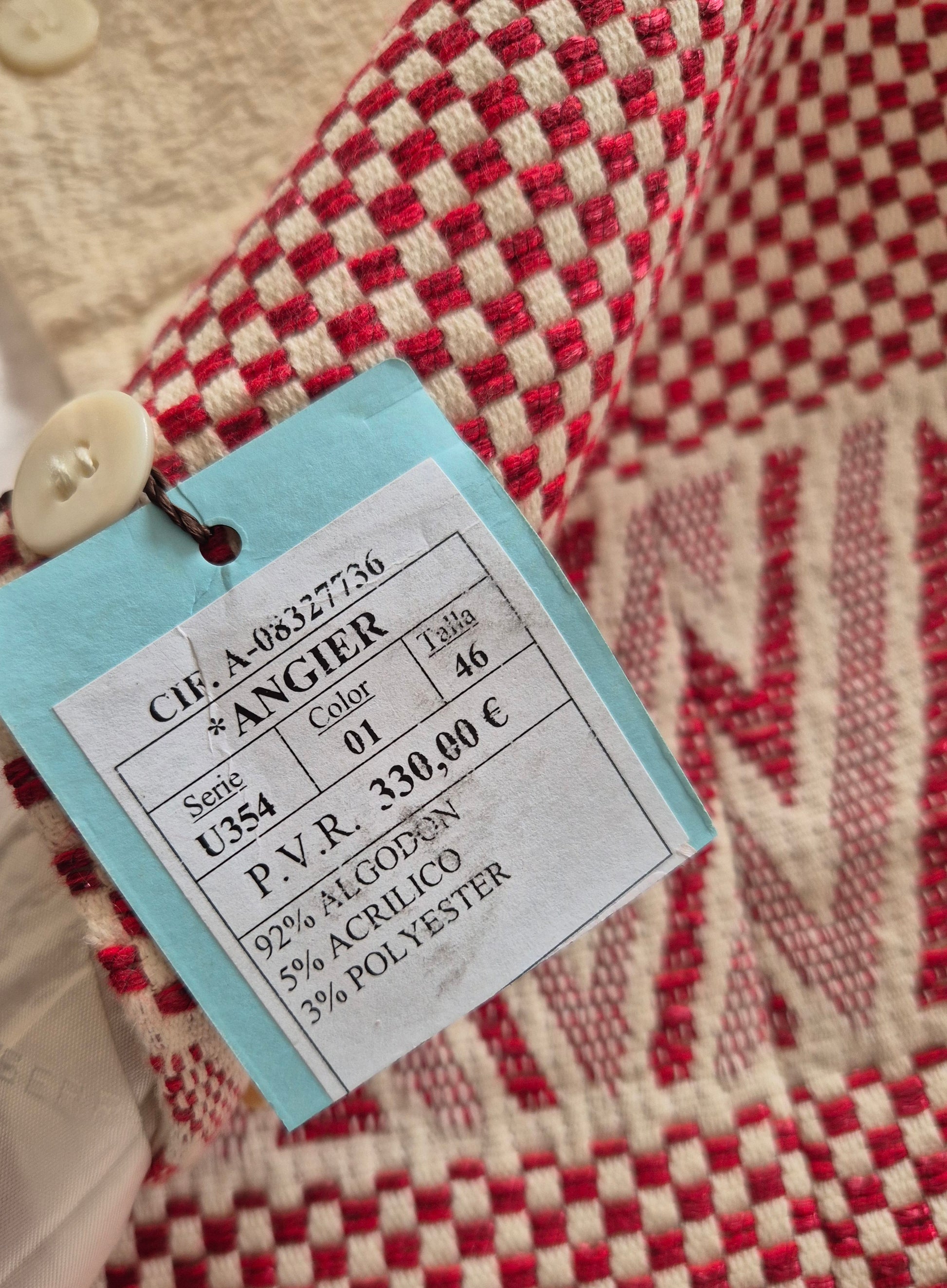 Jakna brenda Lassere (pariški brend kojeg je osnovao Louis Lasserre). Prljavobijeli pamučni bukle, crveni vez. Odličan komad. Nekorištena, s etiketom, redovna cijena 330 €.
