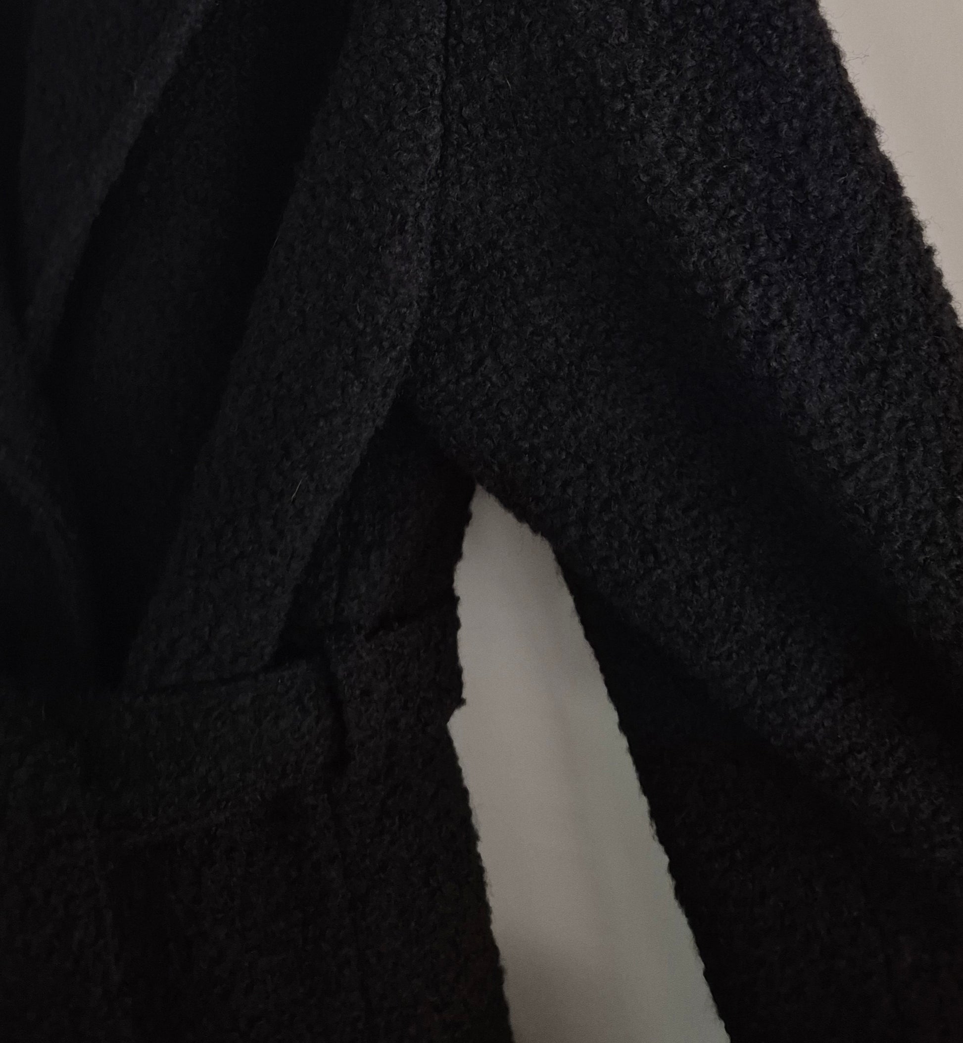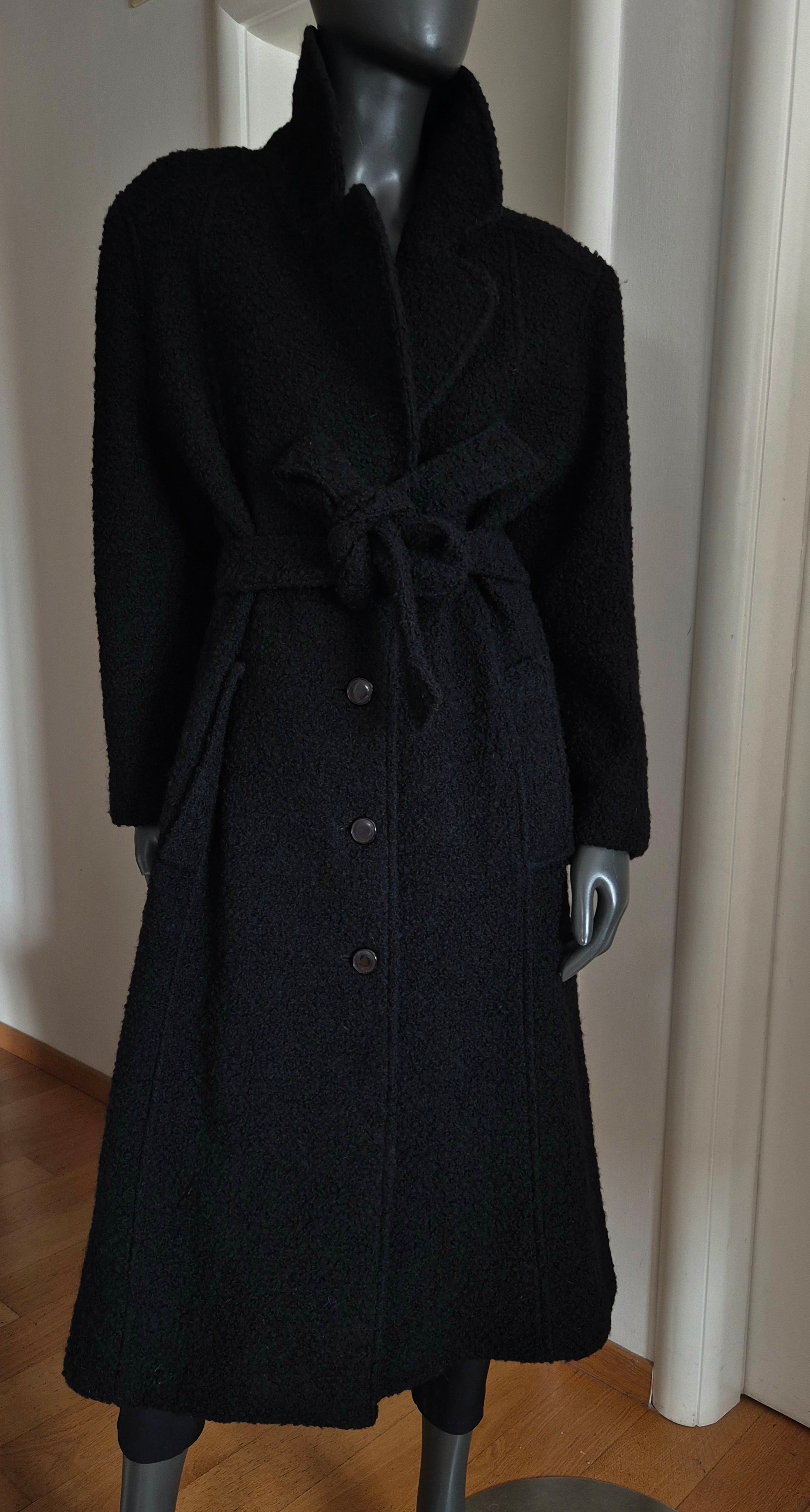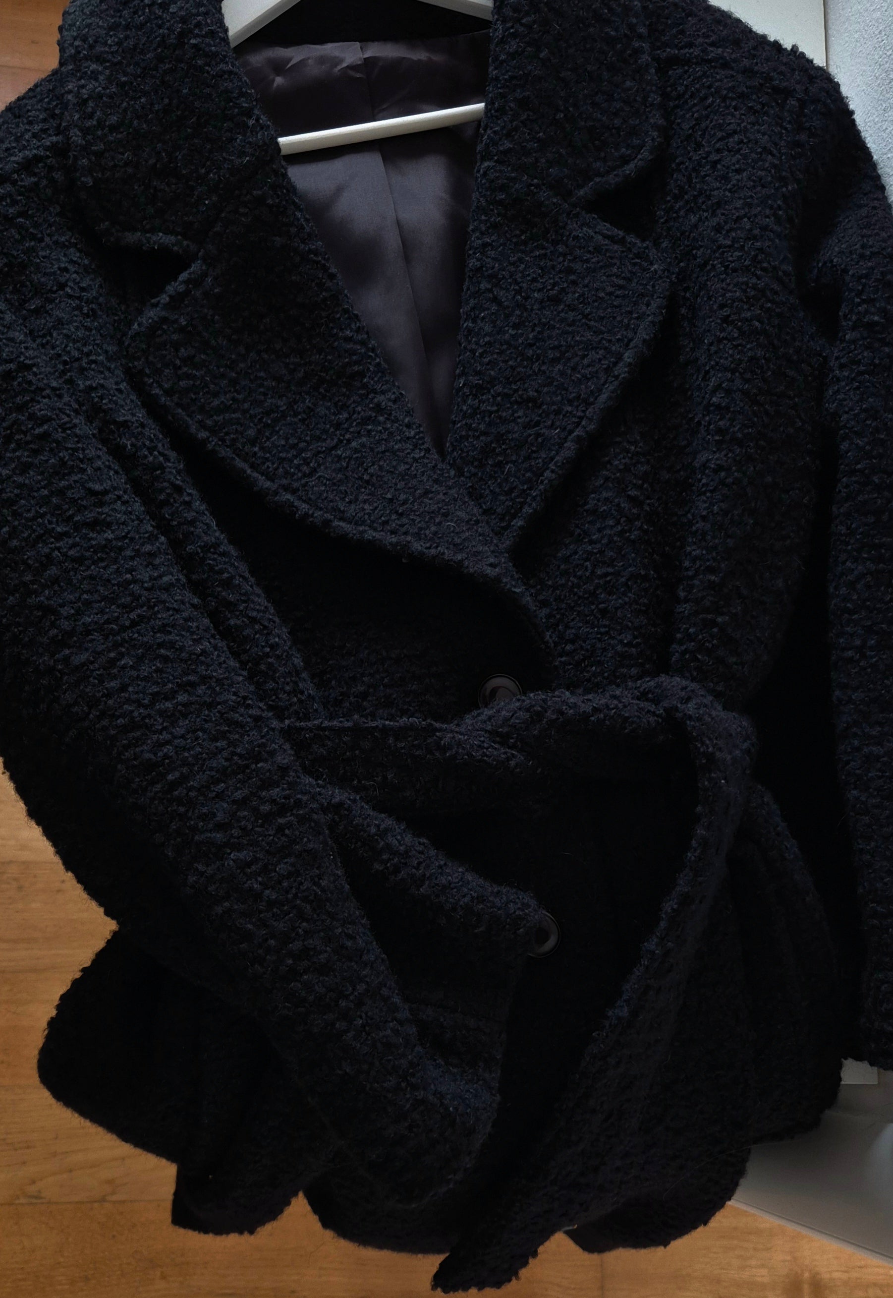 Prekrasan i jako topao Mura kaput. Crni bukle, čista vuna. Naglašenija ramena i remen u struku. Konkretan, vječan i vrijedan zimski komad 👌