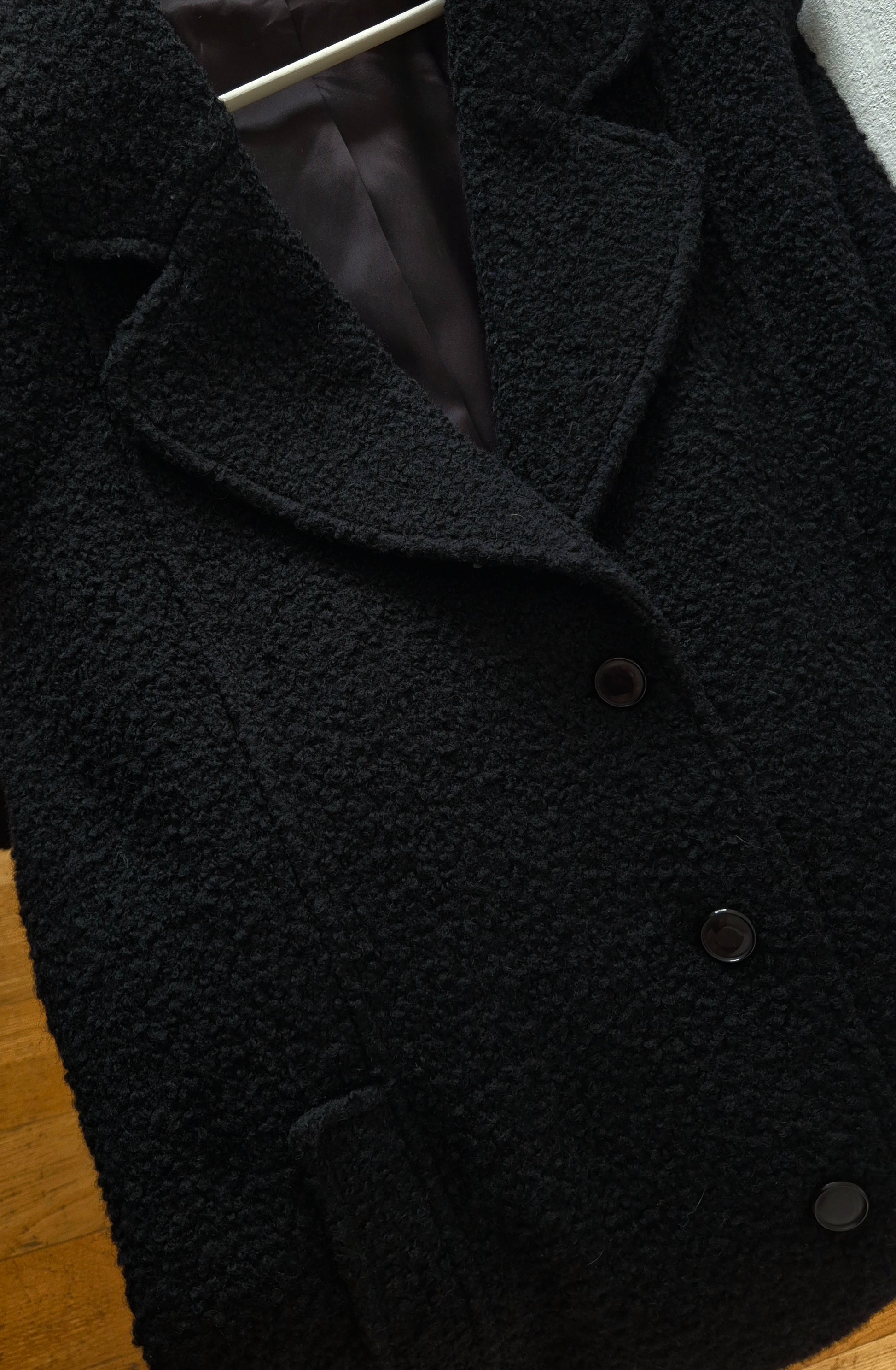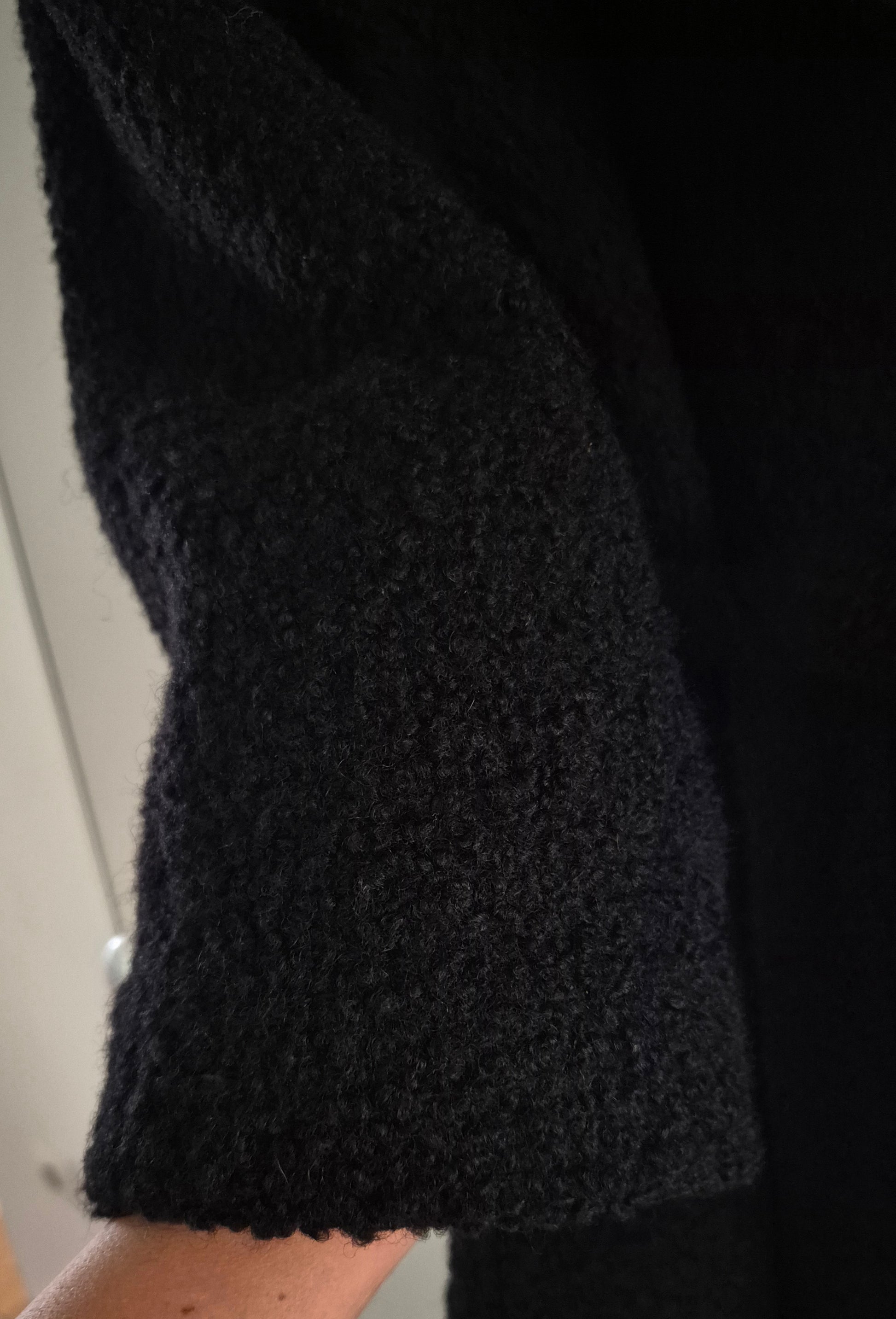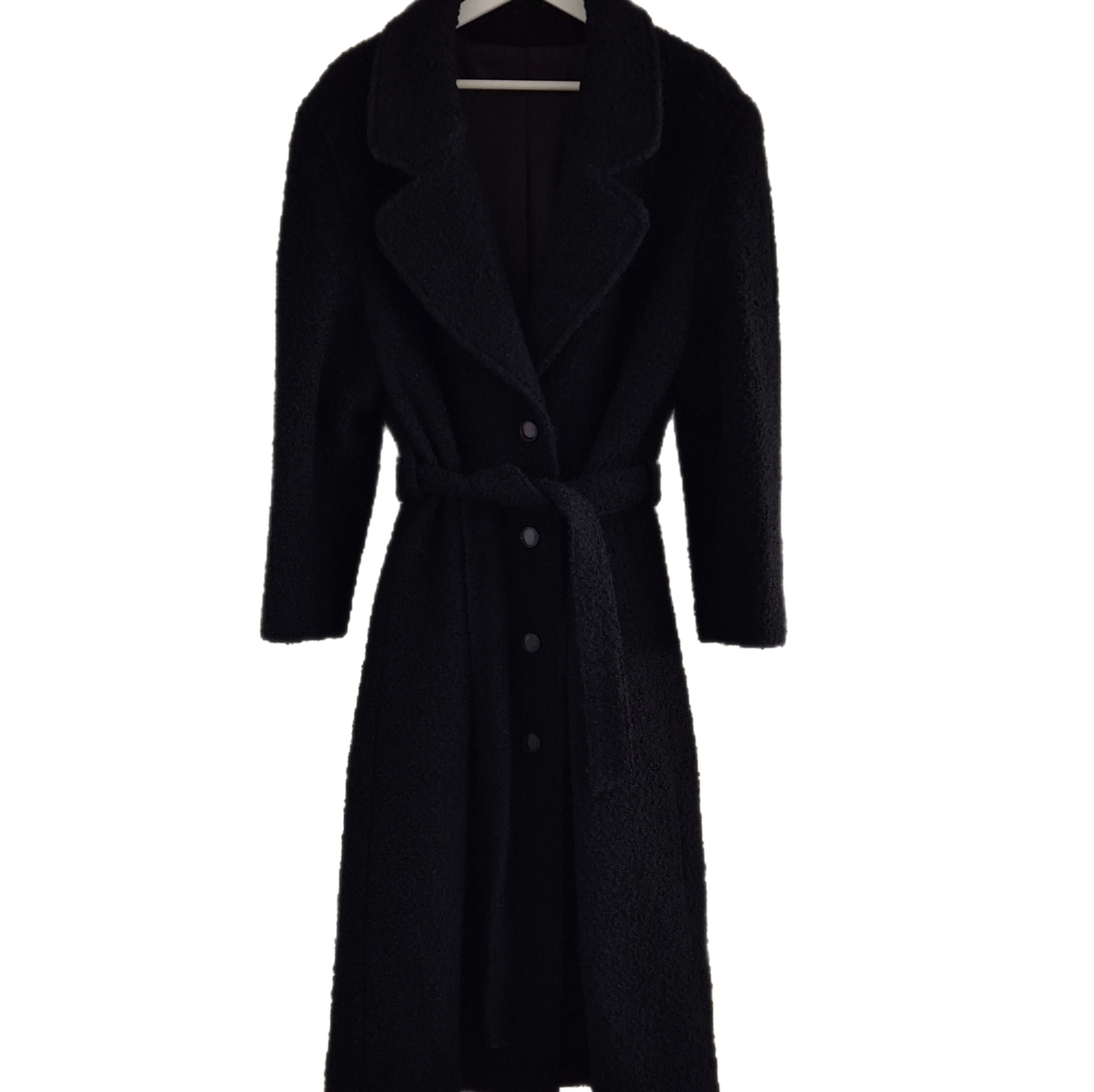 Prekrasan i jako topao Mura kaput. Crni bukle, čista vuna. Naglašenija ramena i remen u struku. Konkretan, vječan i vrijedan zimski komad 👌