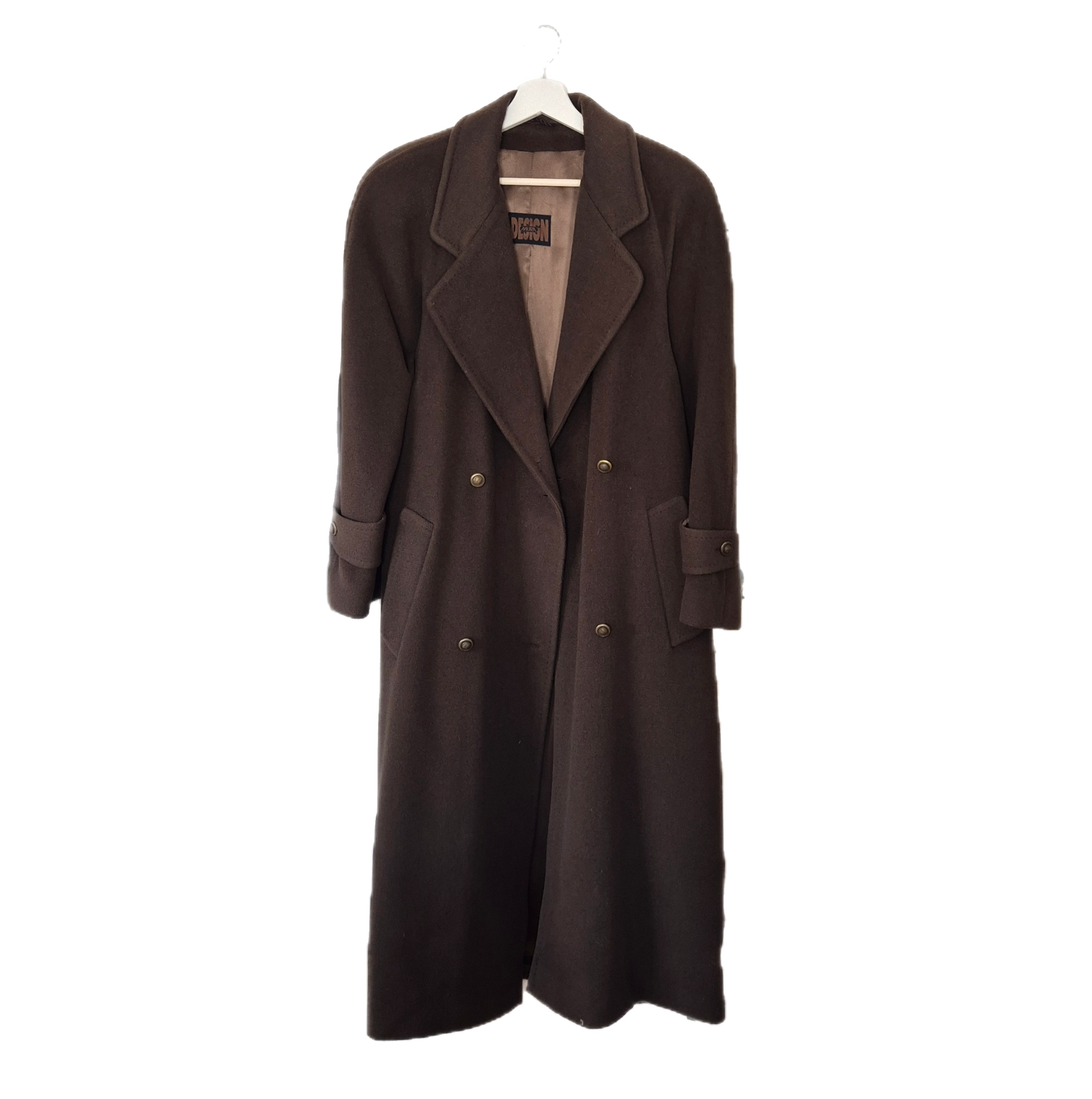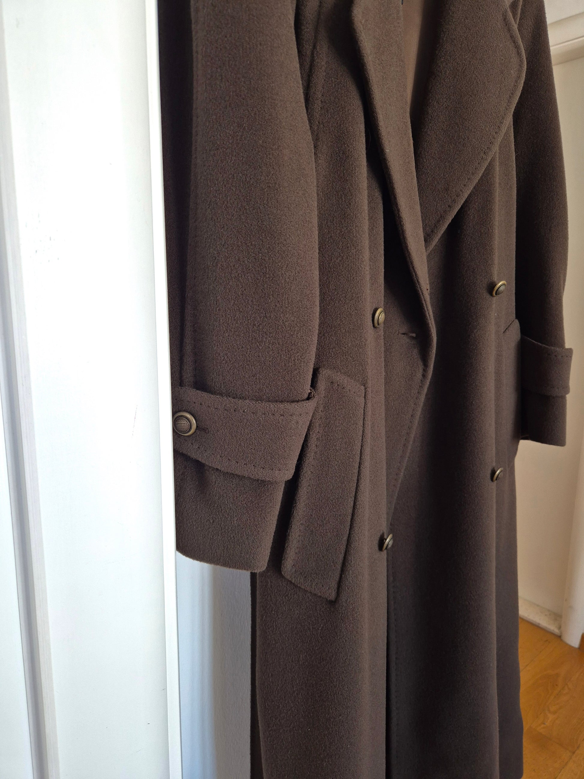 Mura vintage kaput, smeđi, 100% runska vuna. Naglašenija ramena, dvoredno kopčanje. Remen od istog materijala u struku. Nosi se opušteno, flowy, a zahvaljujuć remenu se može strukirati pa se dobije silueta 😎.