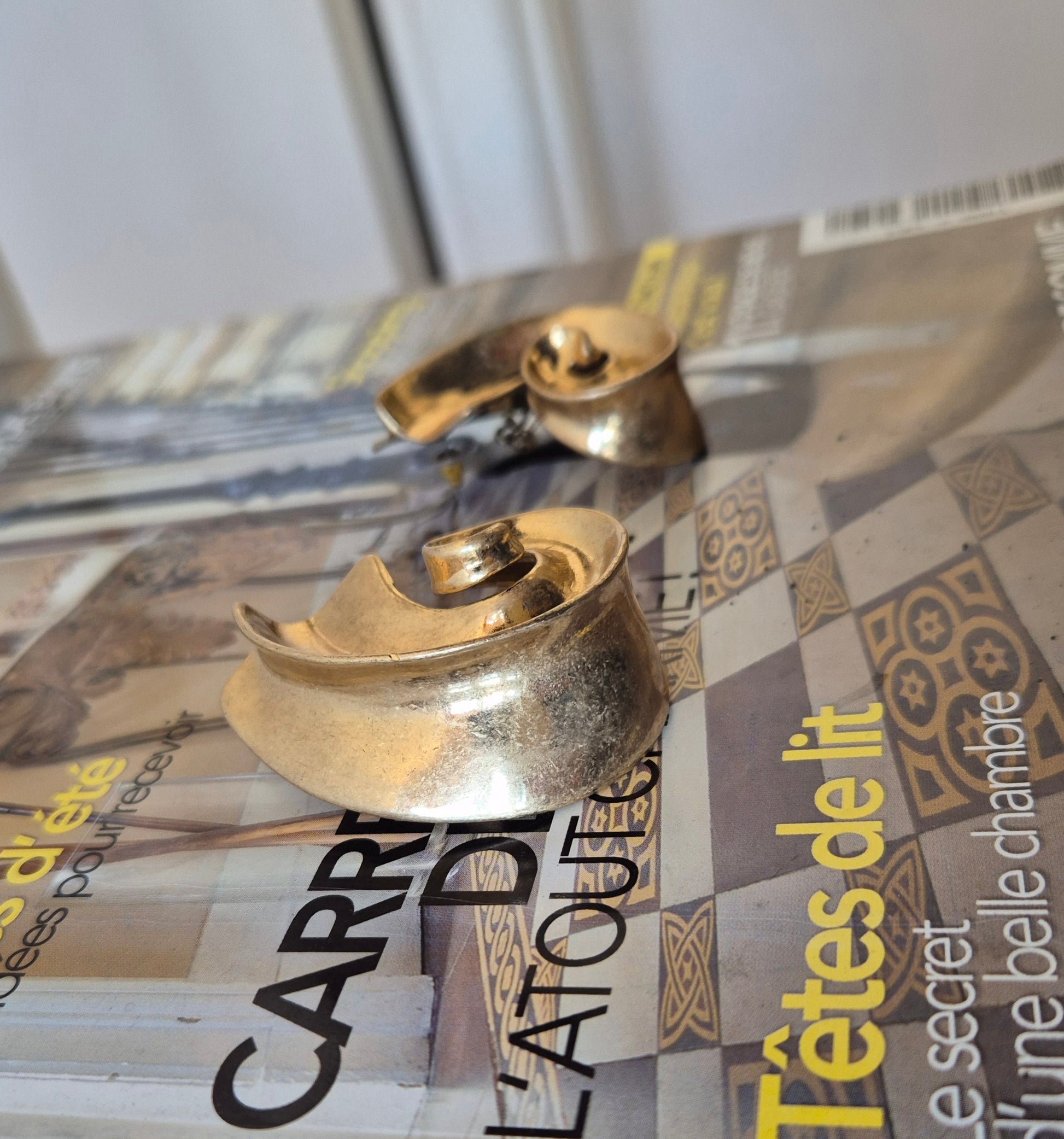 Naušnice u boji zlata, krupne i efektne. Na iglicu - za probijeno uho. Nove, nekorištene.