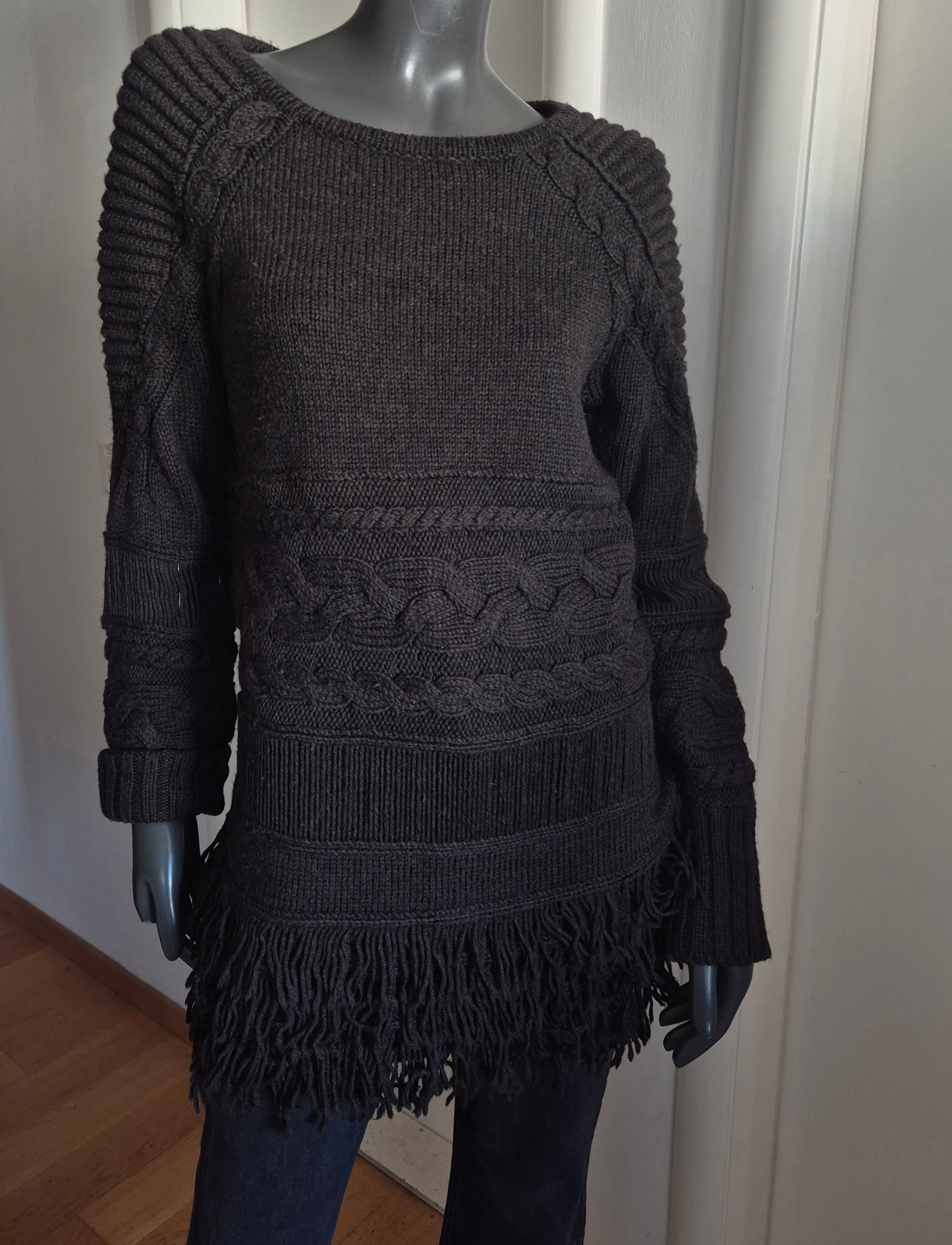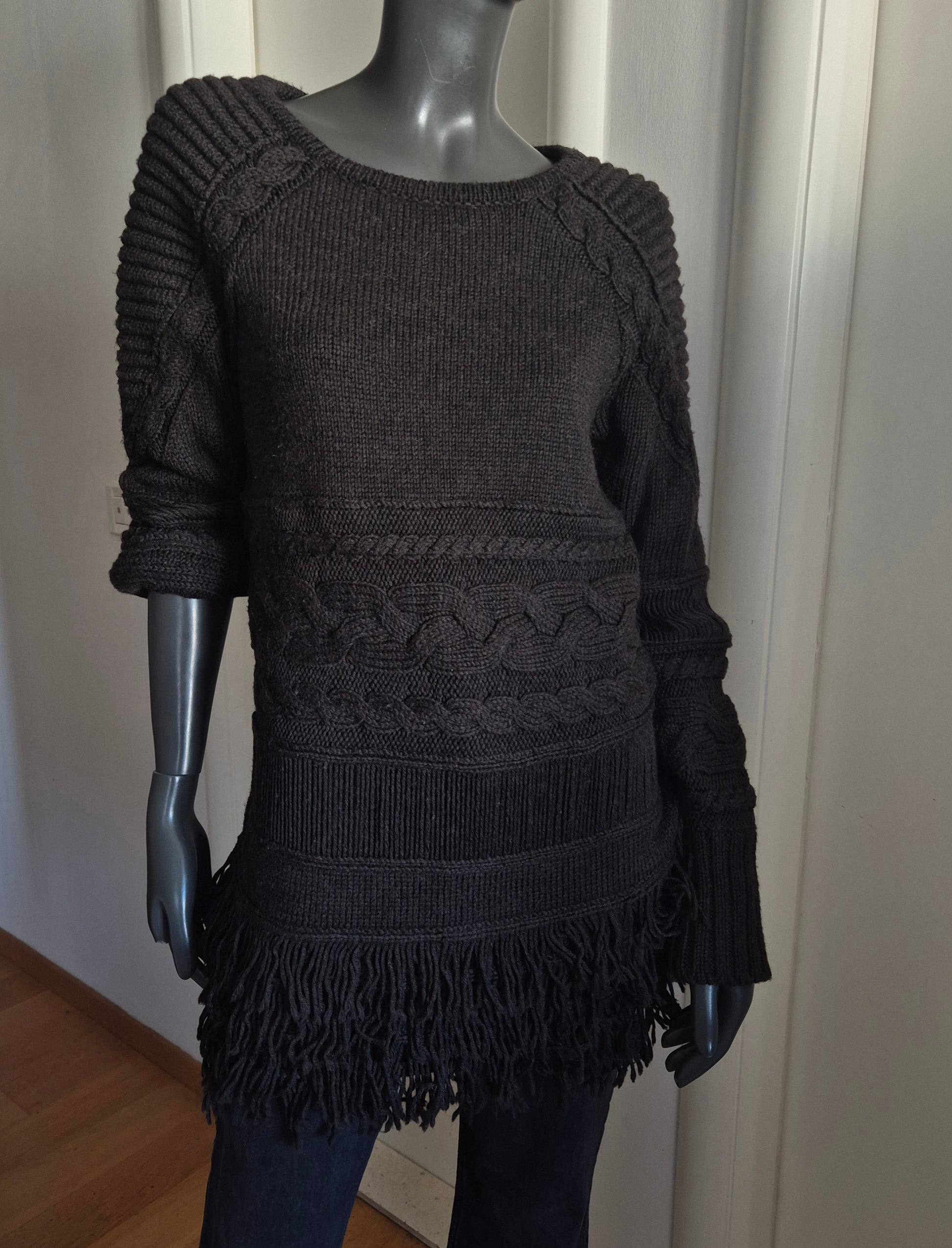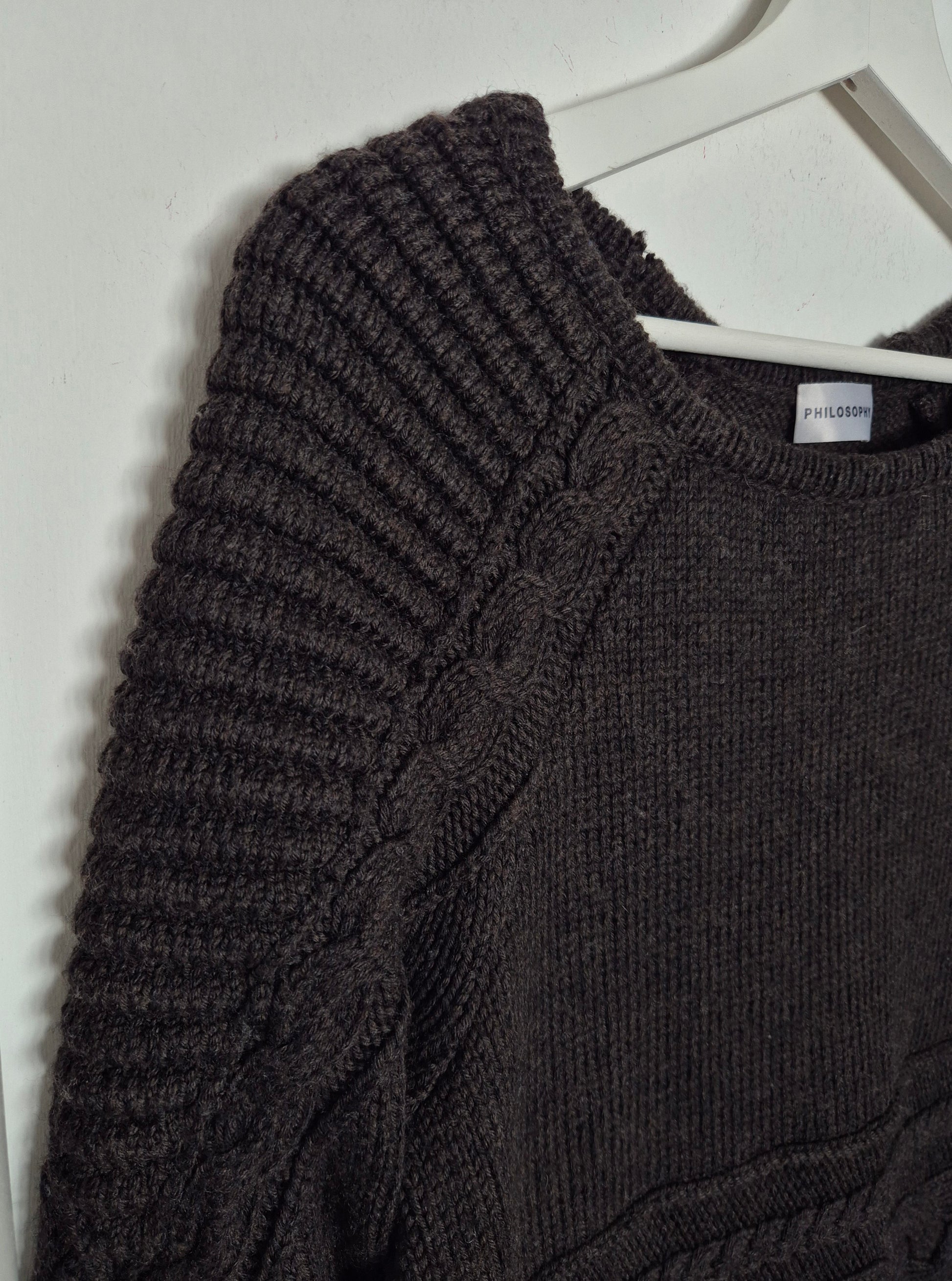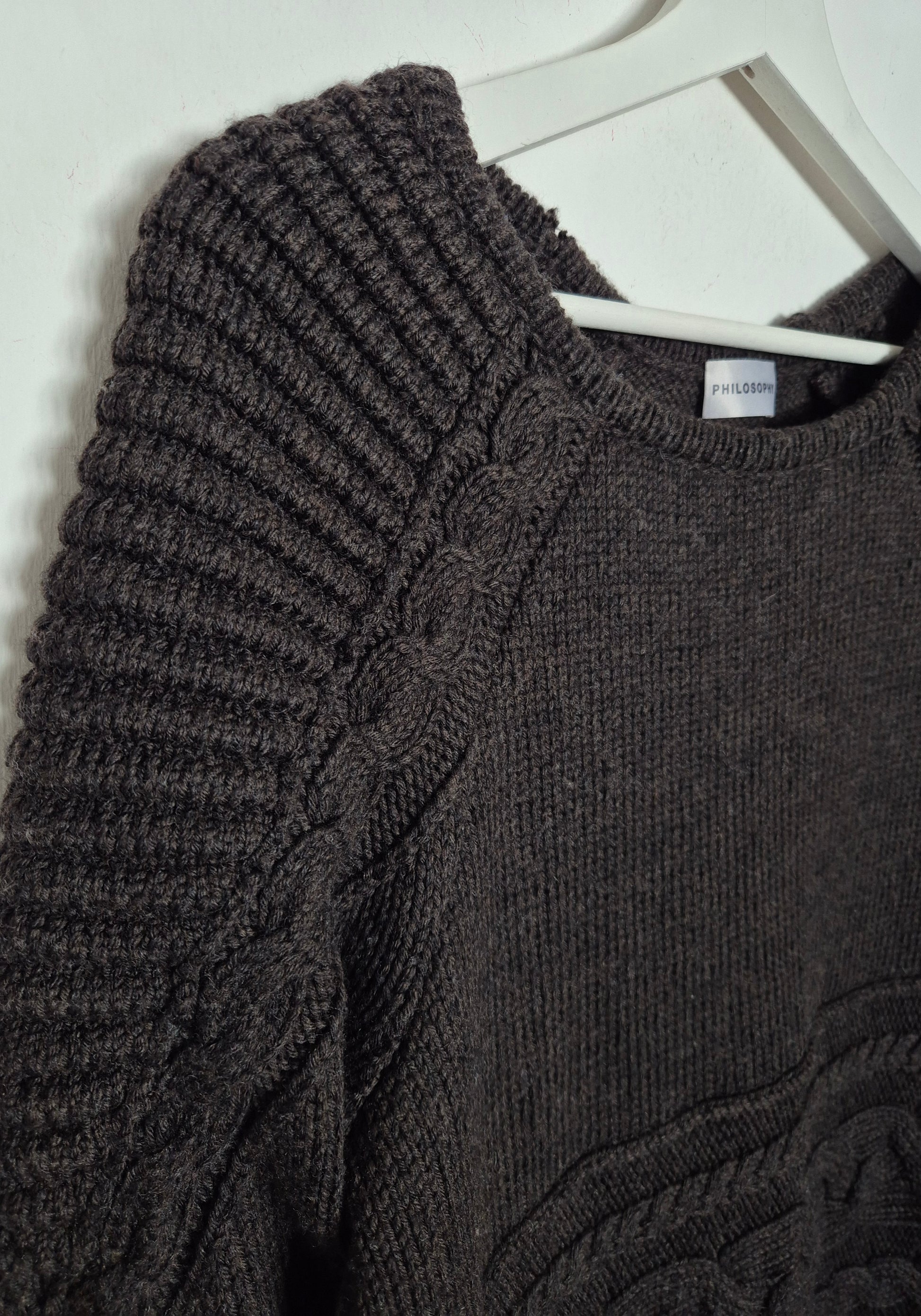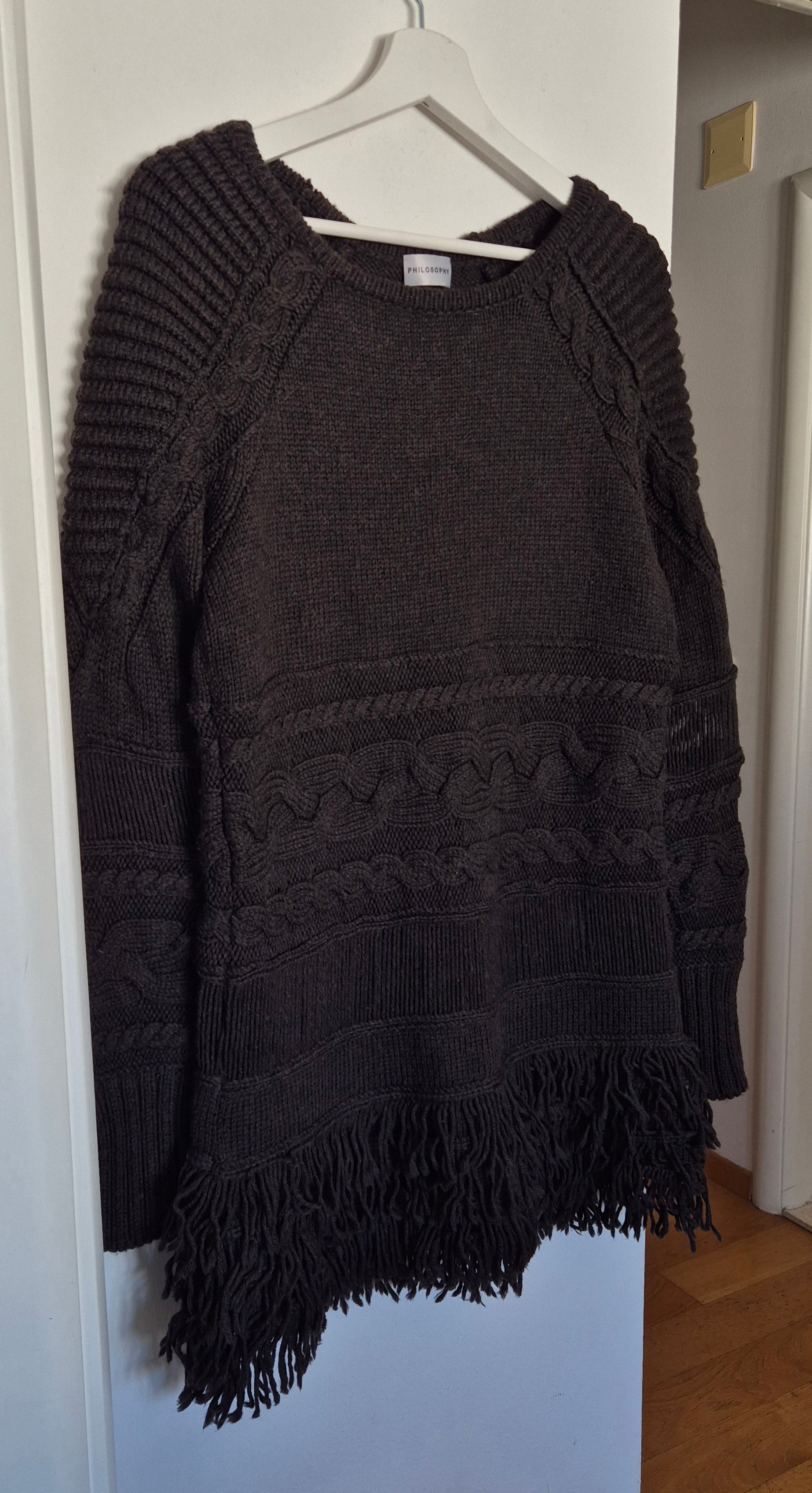 Philosophy di Lorenzo Serafini tamnosmeđi pulover, 100% vuna. Duži, s resama na dnu.