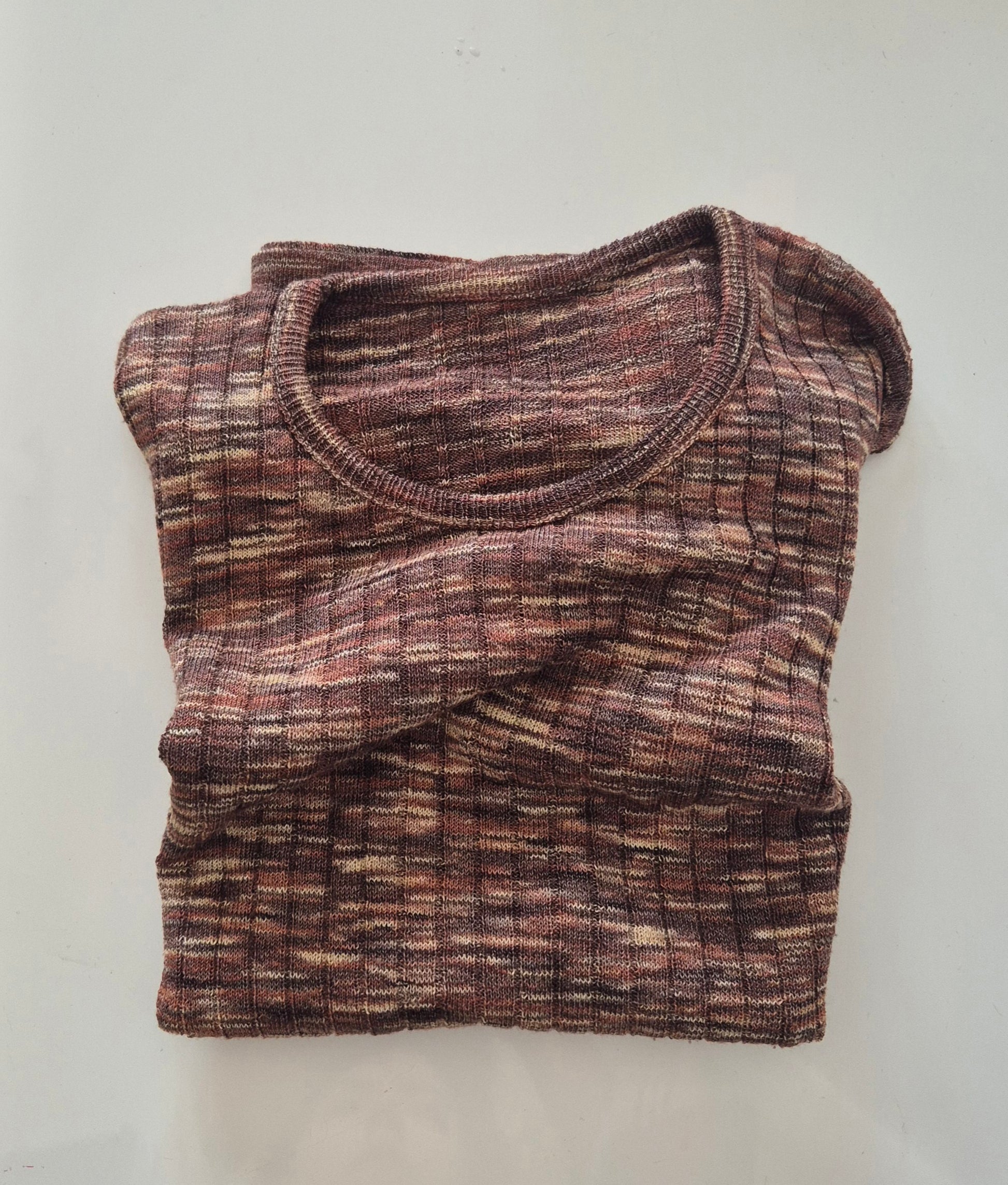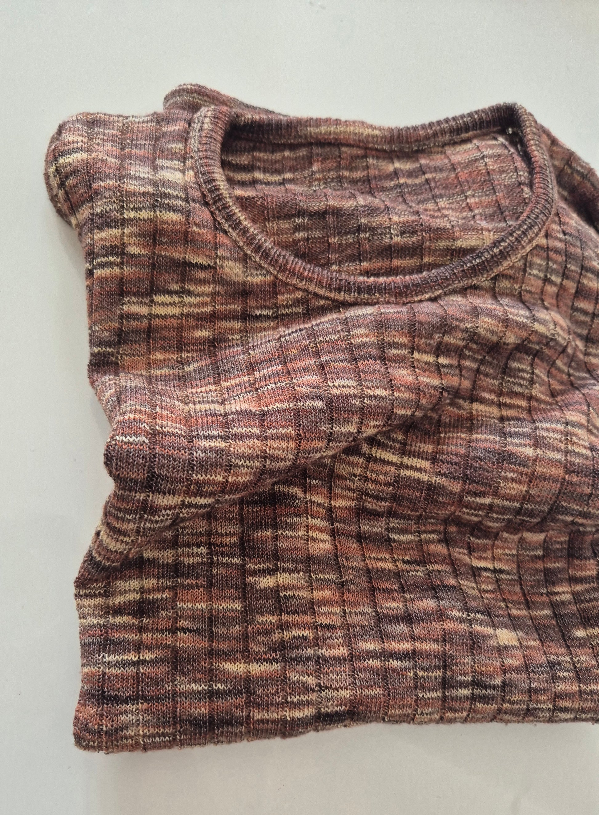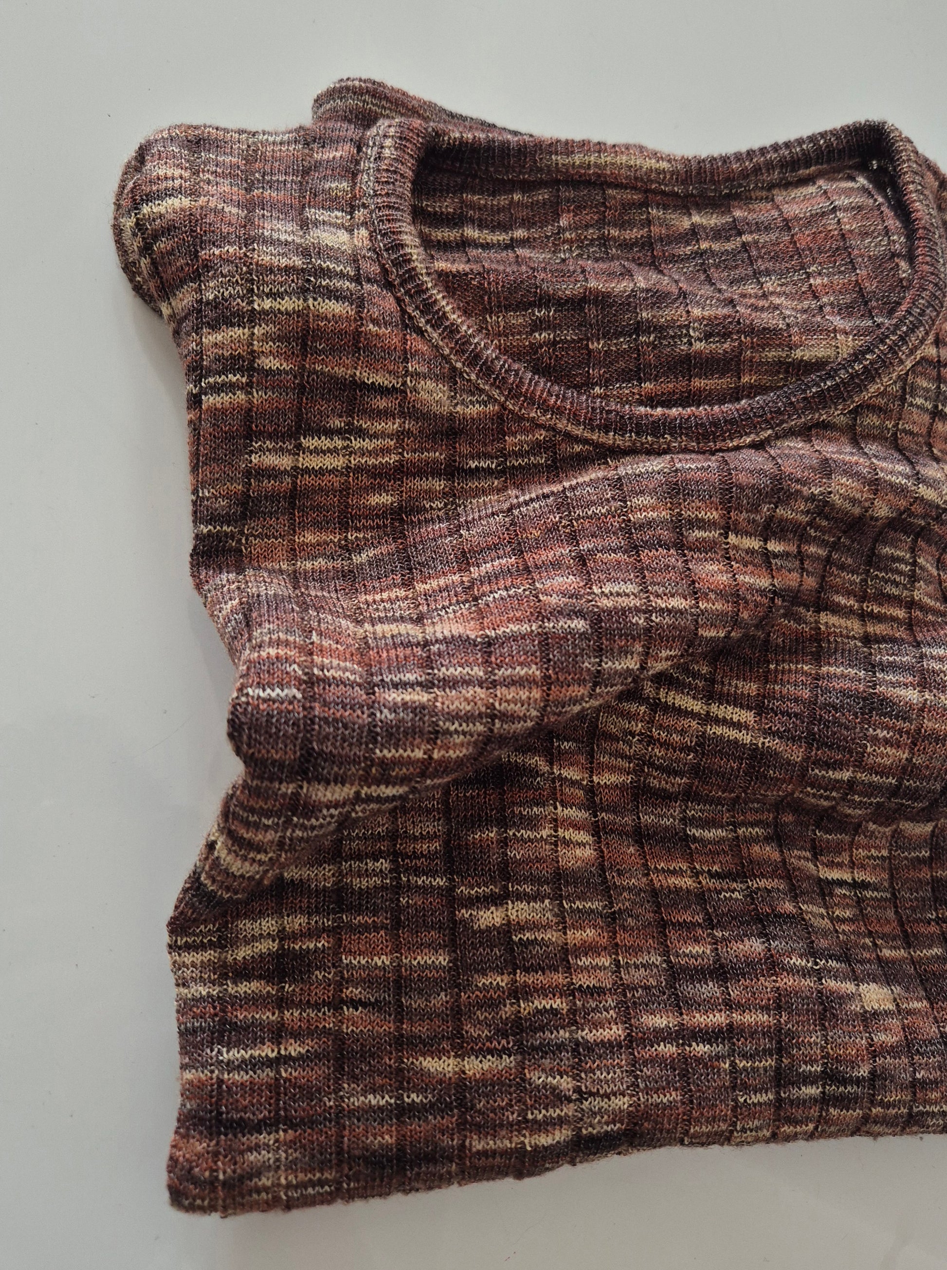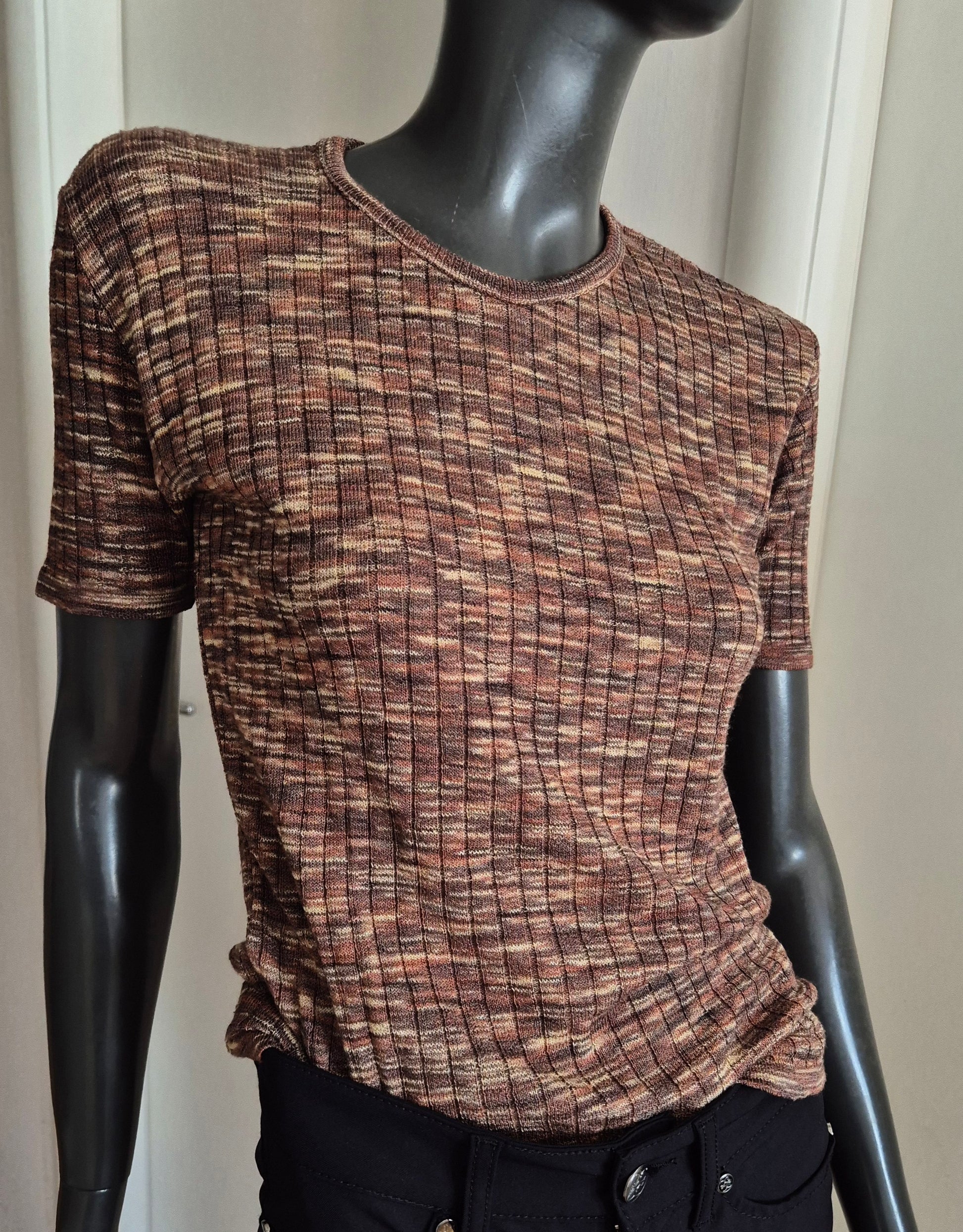 Vintage pleteni top/T-shirt. Prošaran/šatiran. Missoni vibes. Materijal nepoznat, vjerojatno mješavina pamuka/viskoze.