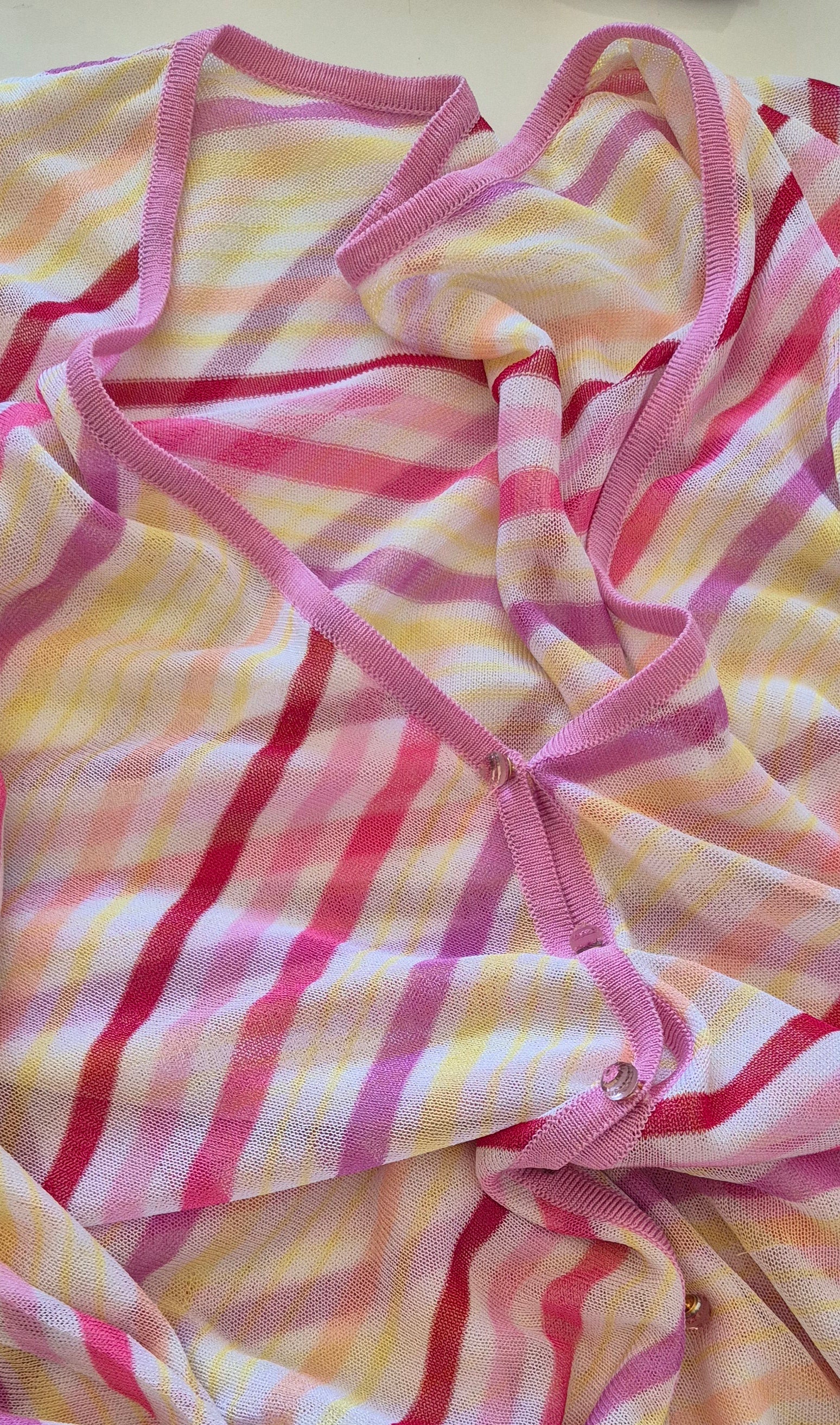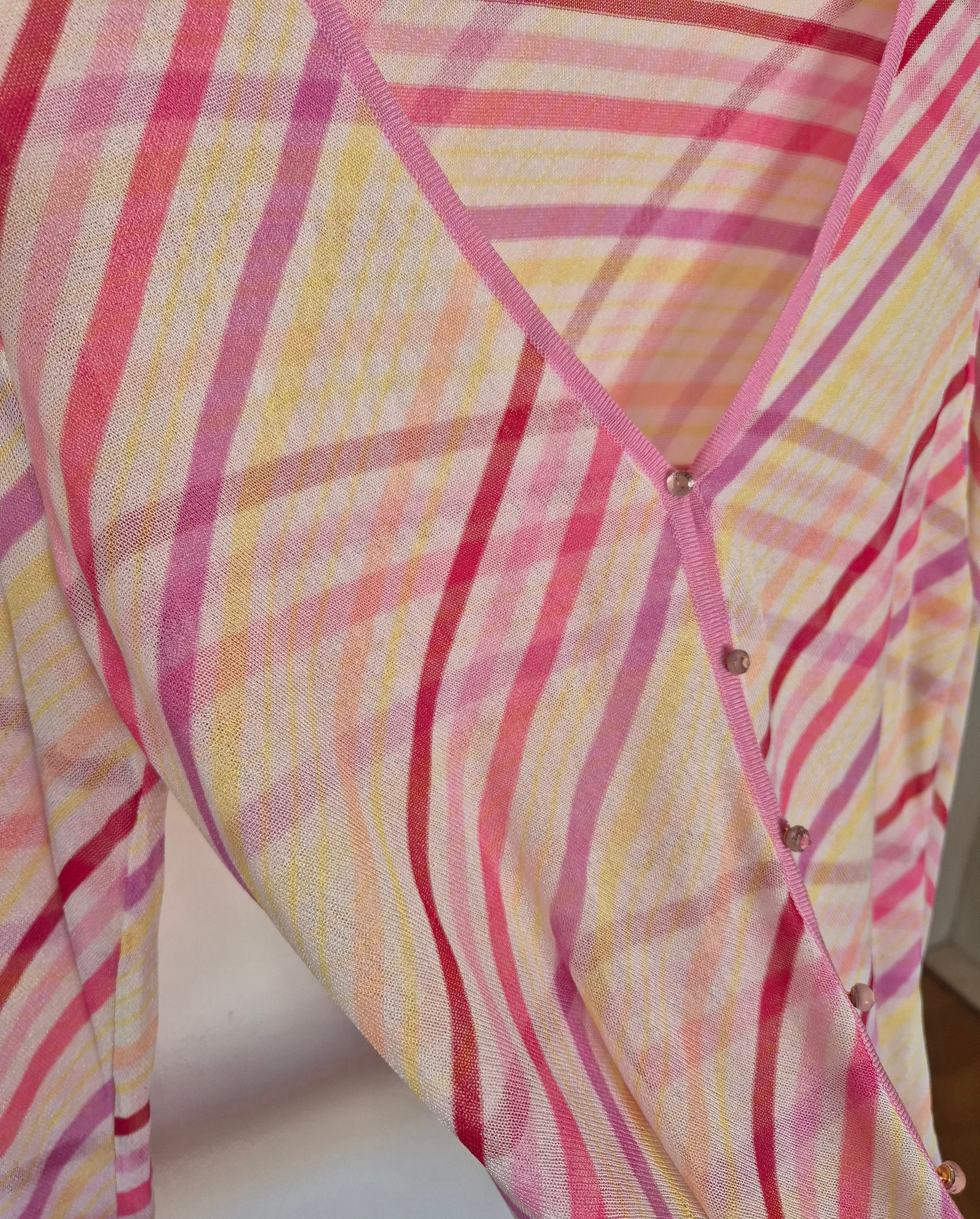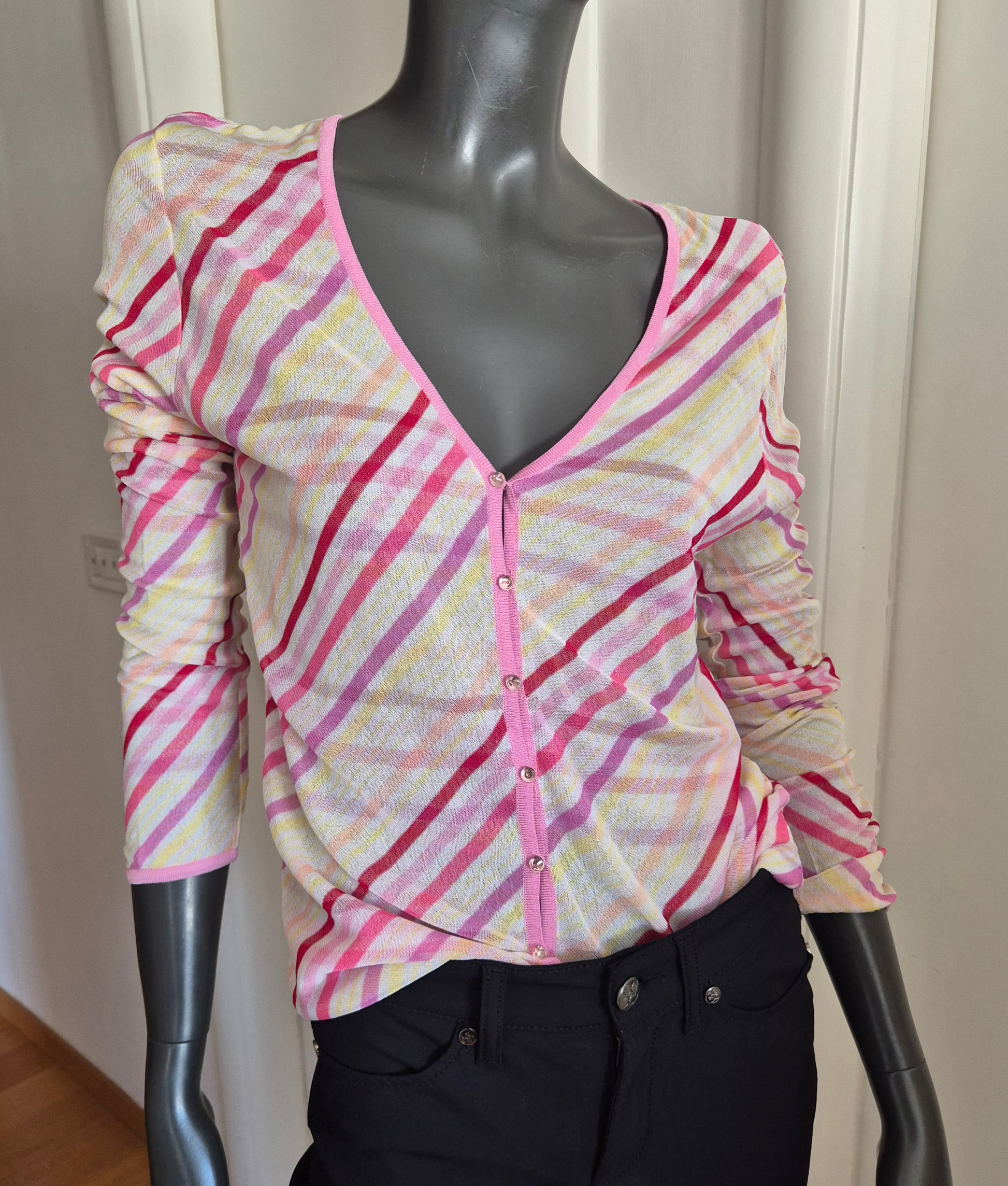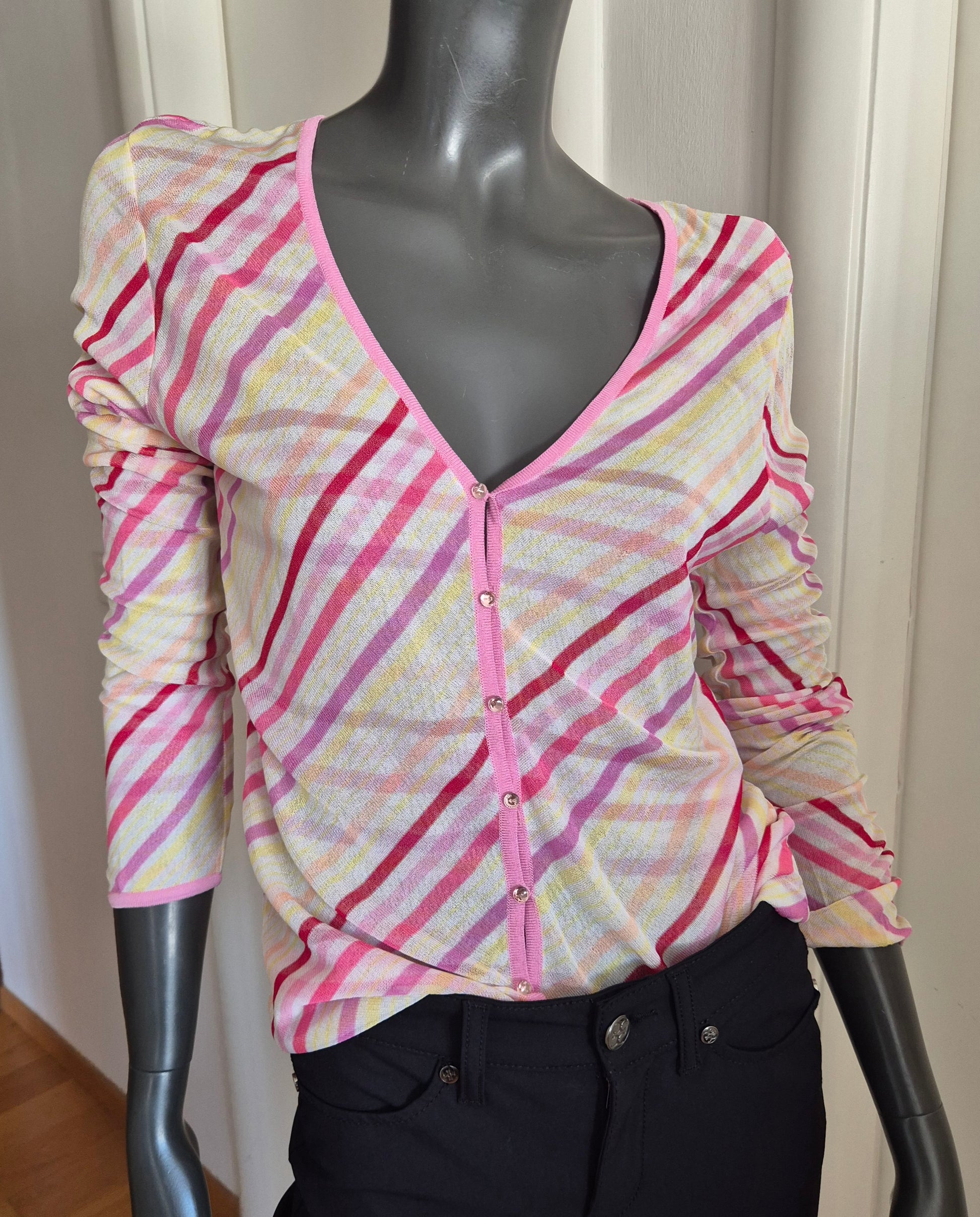 Escada kardigan, prugasti, sitna mrežica/pletivo, vjerojatno viskoza. Lagan, ali stylish komad 🩷