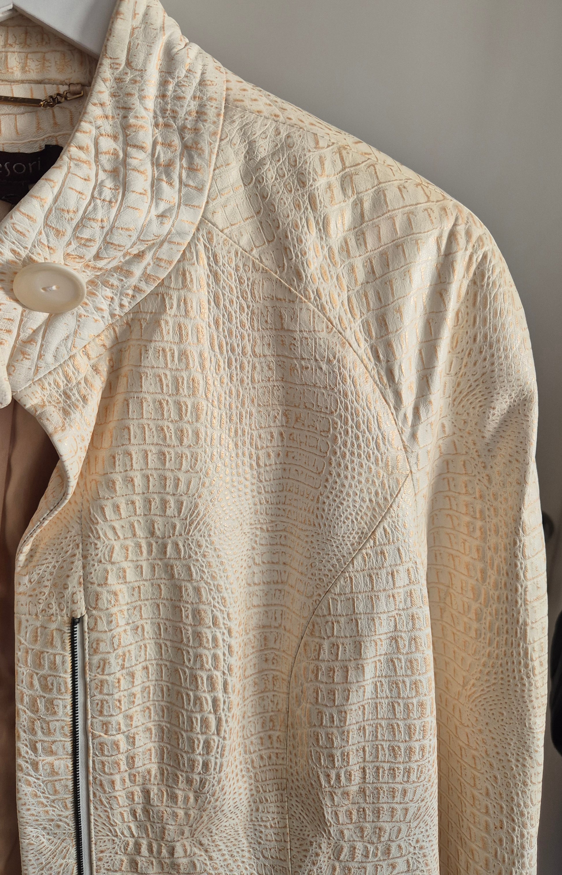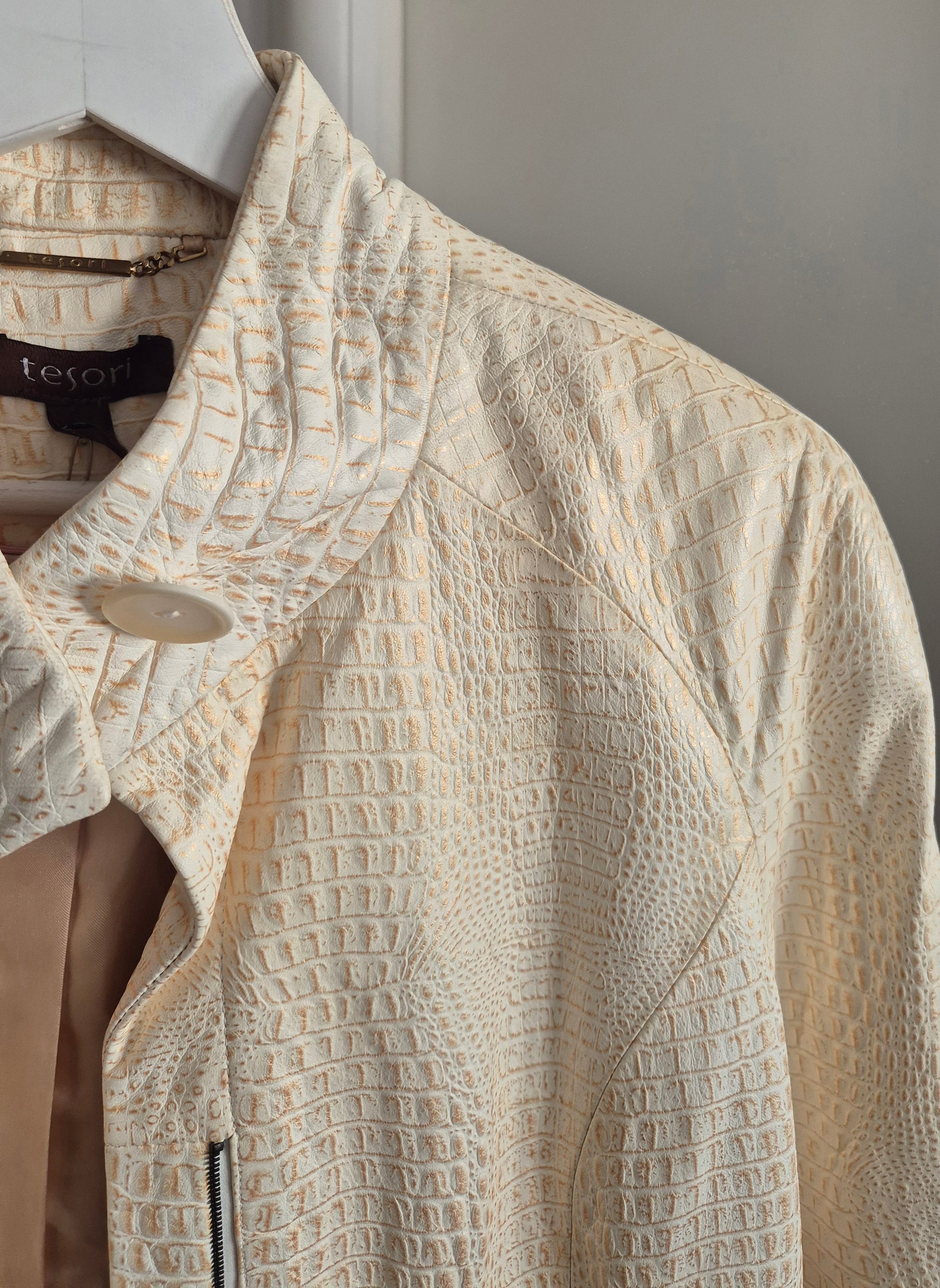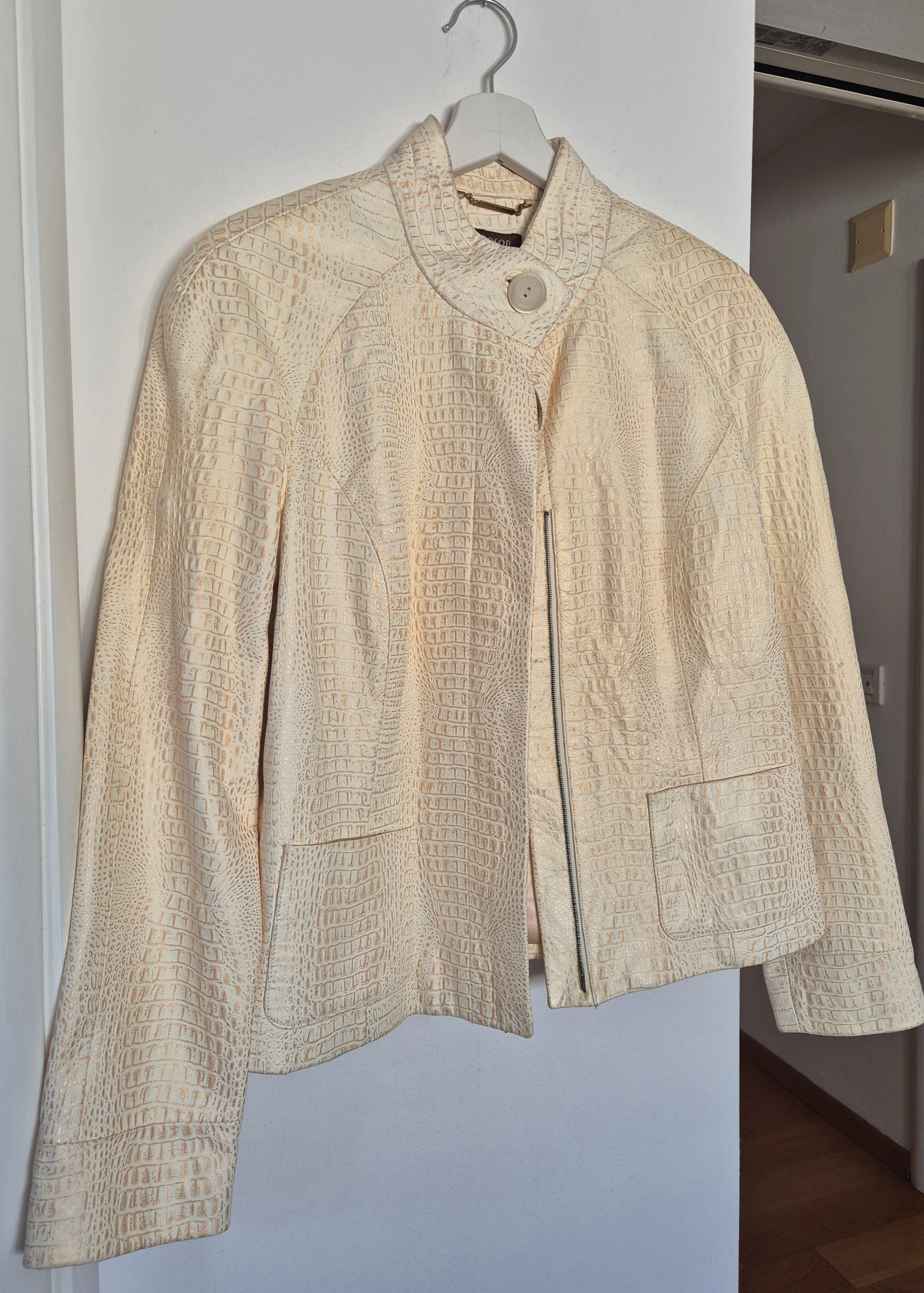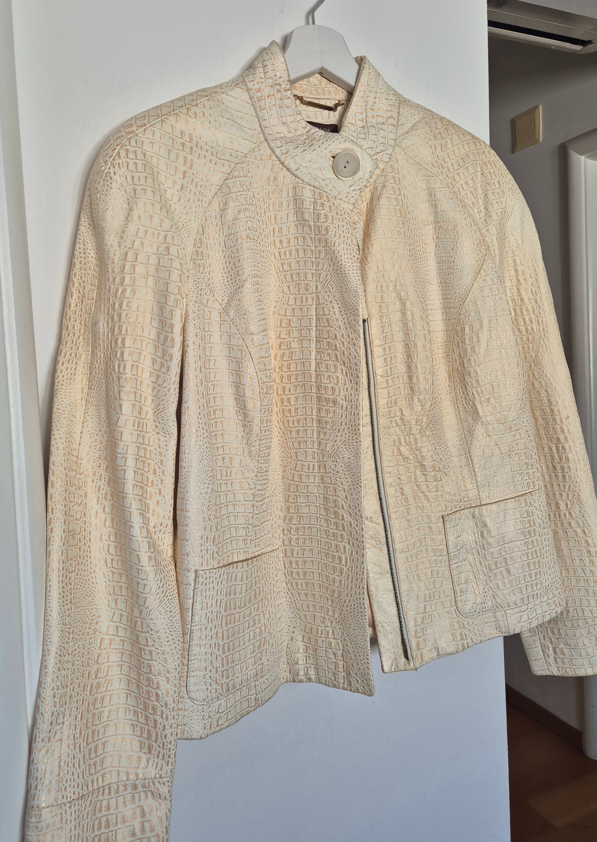 Tesori jakna od kože. Bež sa zlatnim. Jako šik i jako dobar kroj. Fina podstava od acetata.