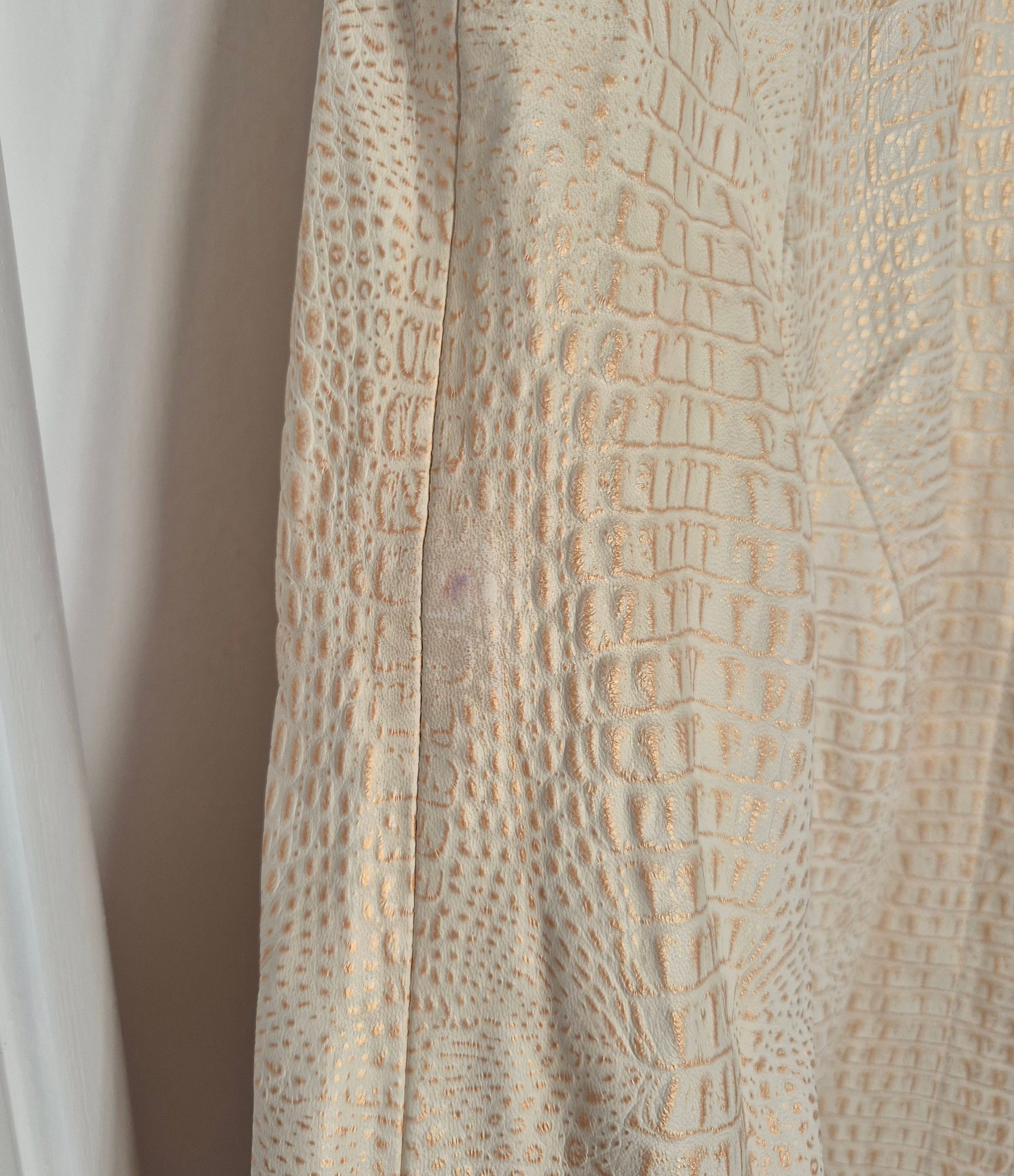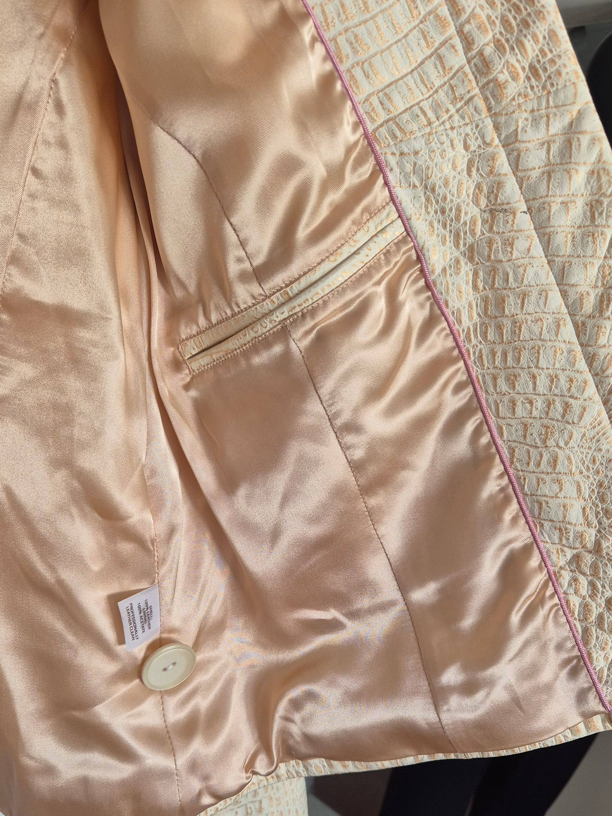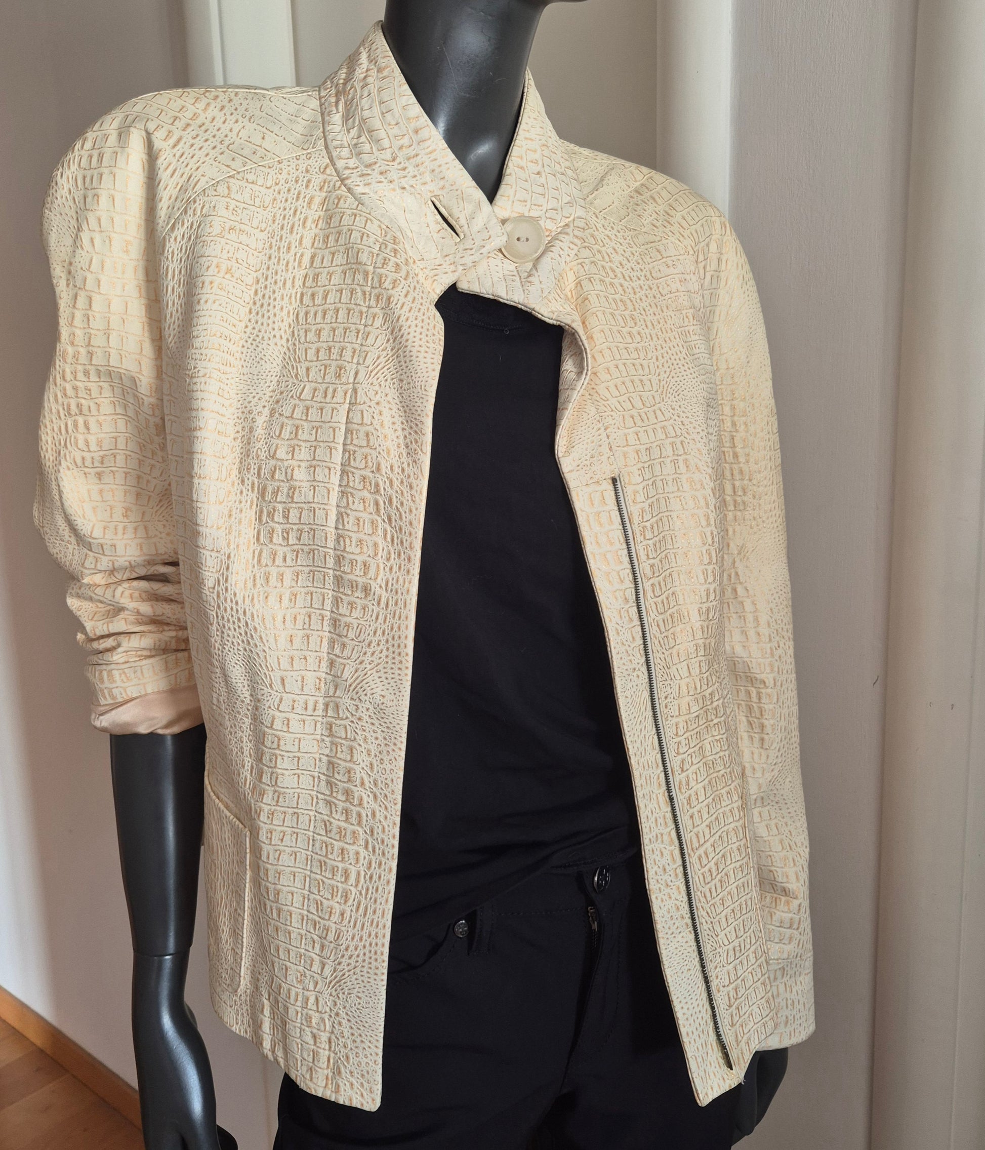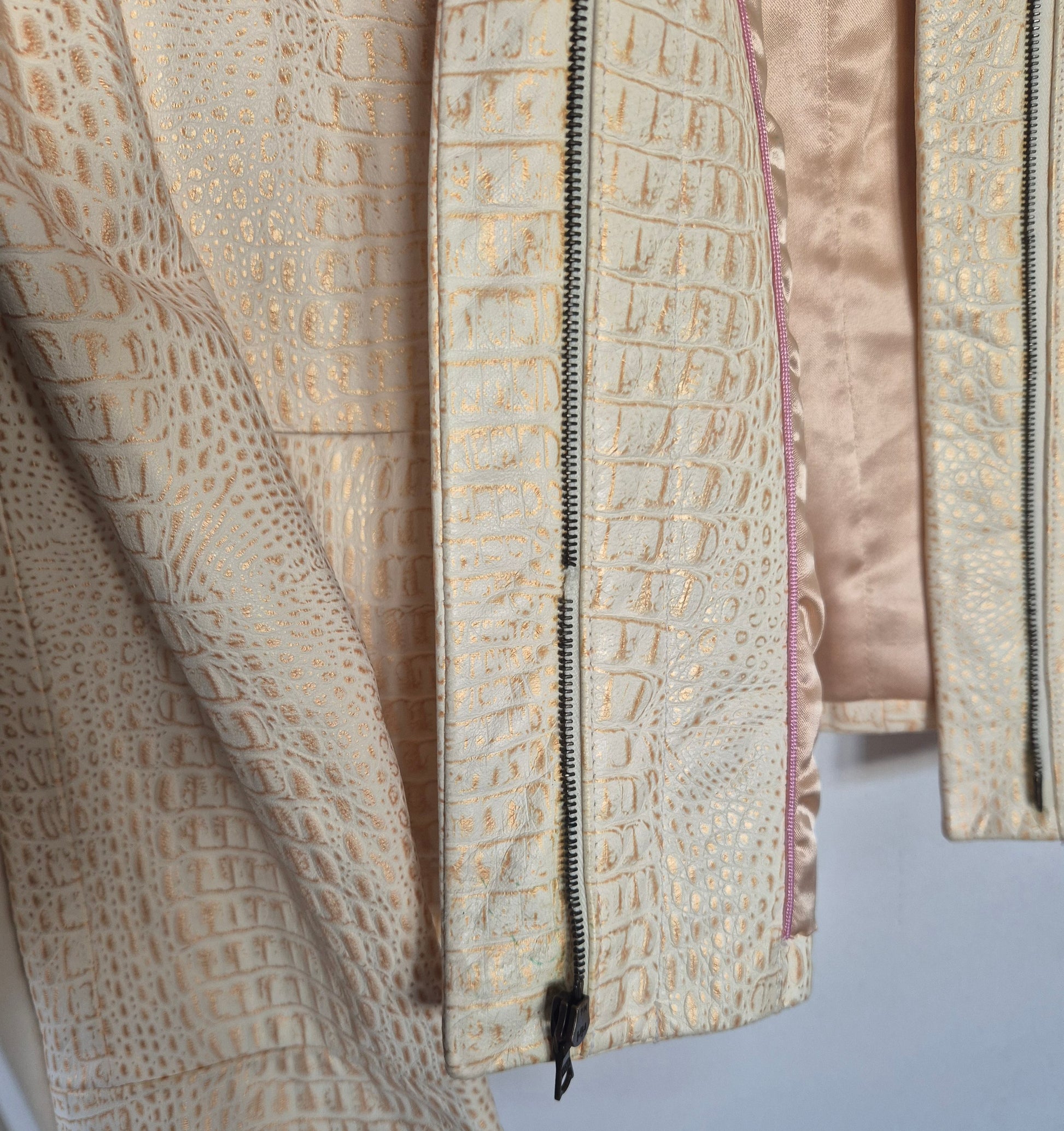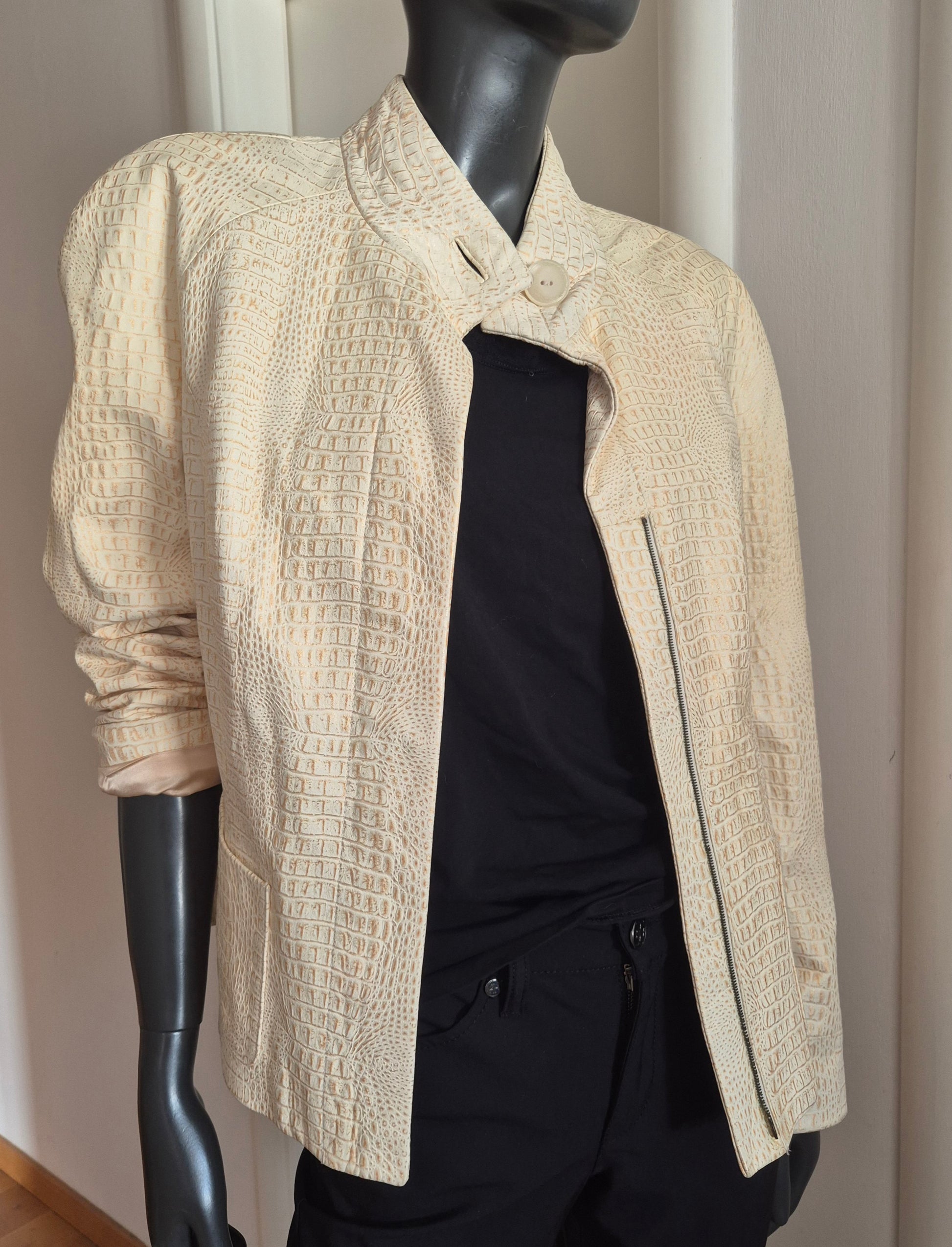 Tesori jakna od kože. Bež sa zlatnim. Jako šik i jako dobar kroj. Fina podstava od acetata.