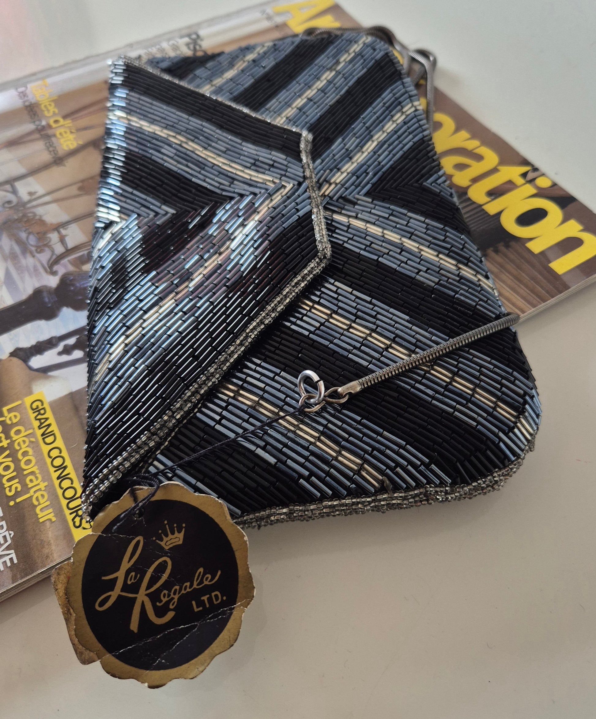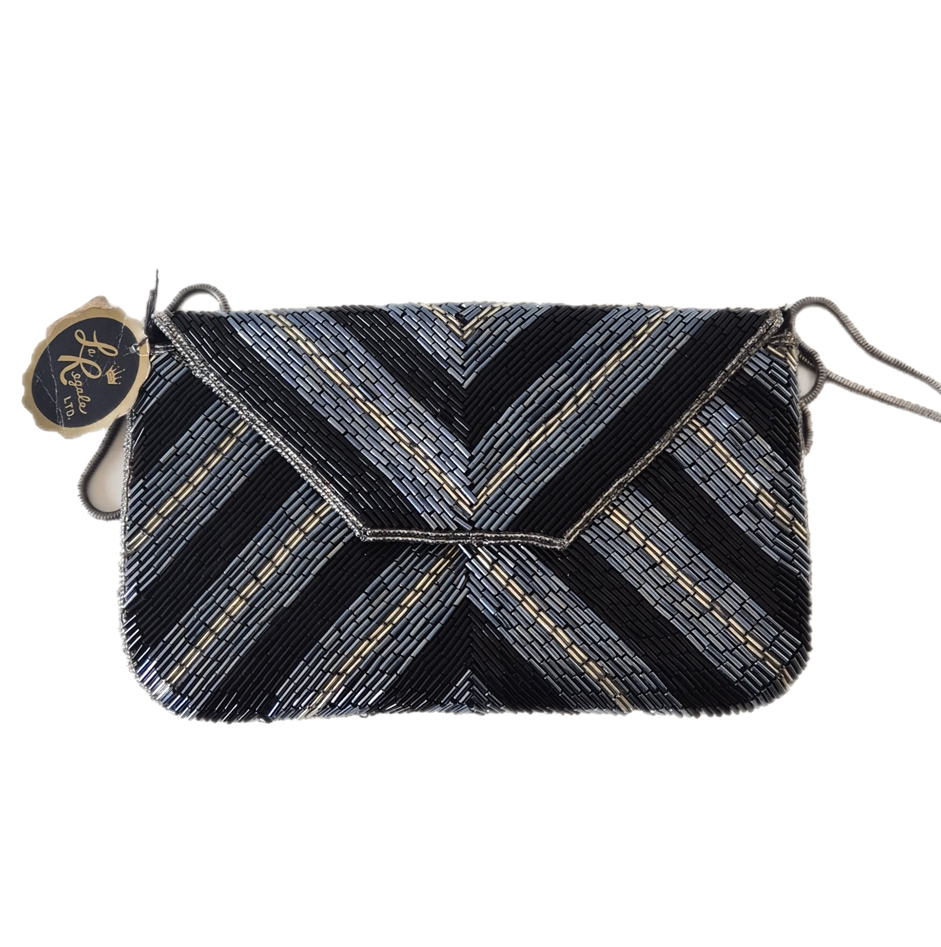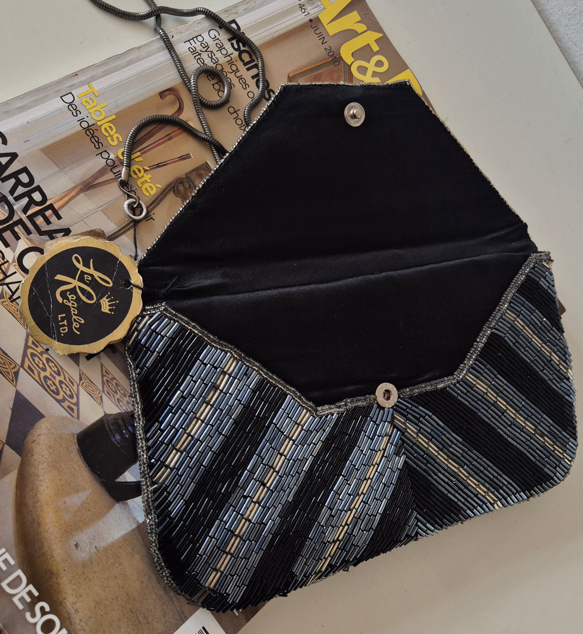 Predivna ručno rađena torbica brenda La Regale. Brend je poznat po torbicama za posebne prigode. Podstava od crne svile. Izvana perlice. Srebrni lanac. Very vintage, ali još s etiketom 🫶 Bilo se odšilo gdje je ringom lanac pričvršćen za torbu, to je sanirano :)