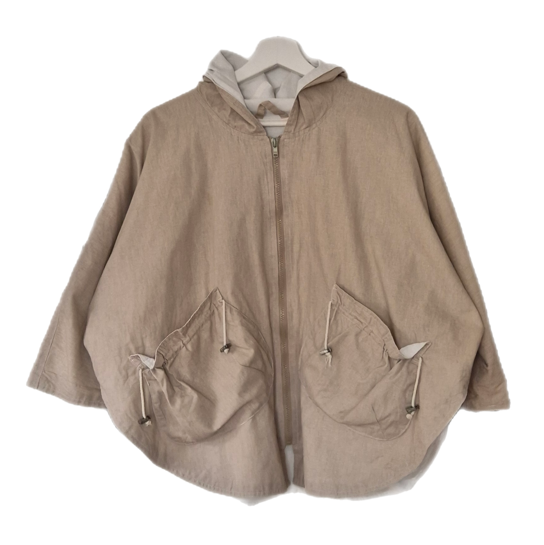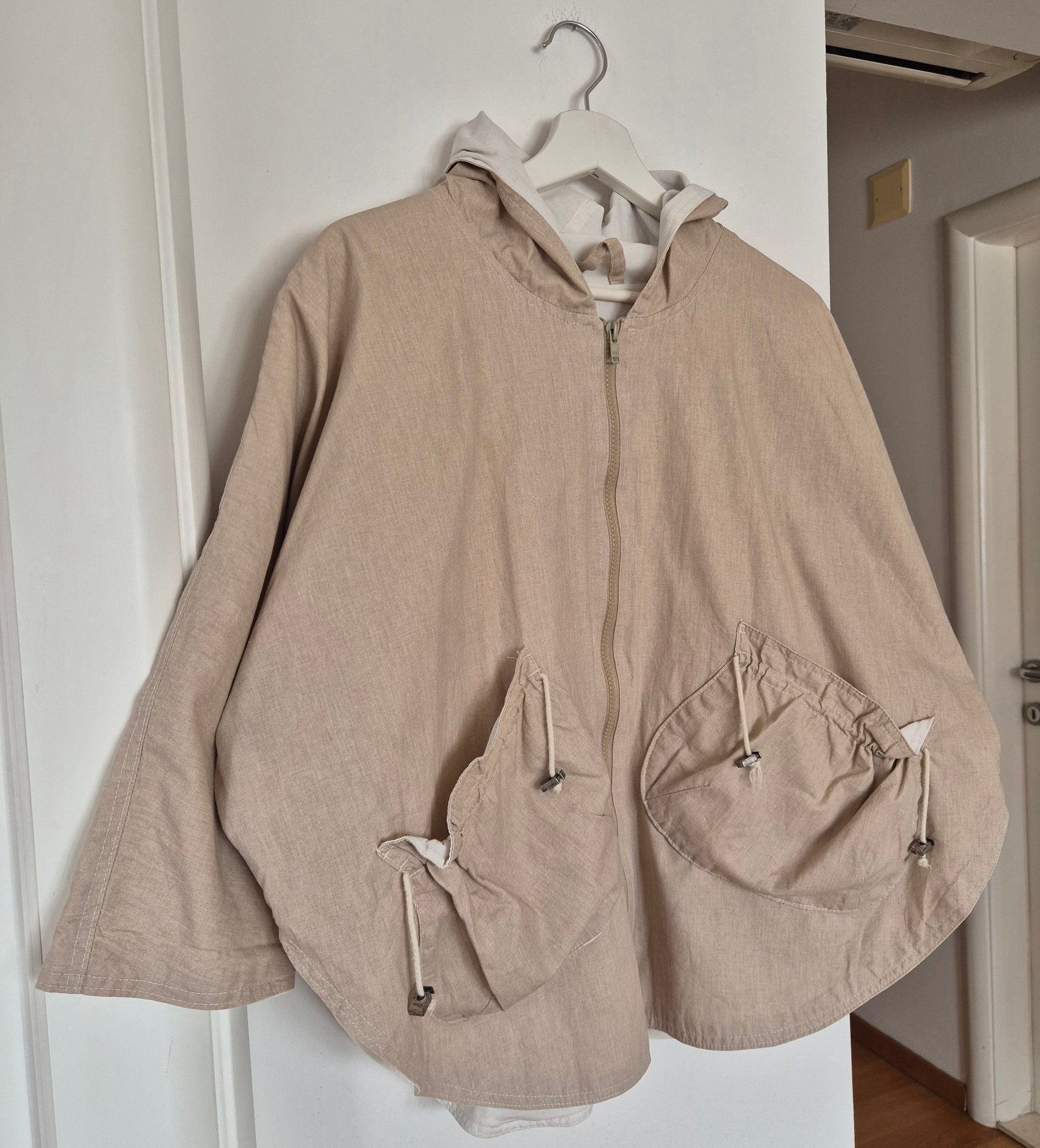Vintage jakna, tip parka. Neobični džepovi naprijed te jedan iza. Kapuljača. Bijela pamučna podstava. Šišmiš rukavi, sva je bublasta :)