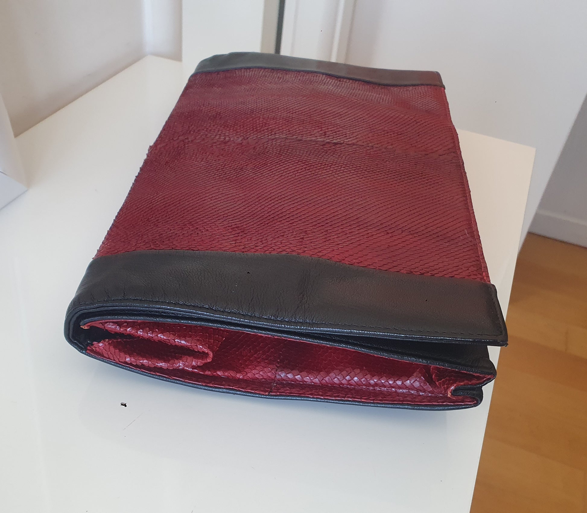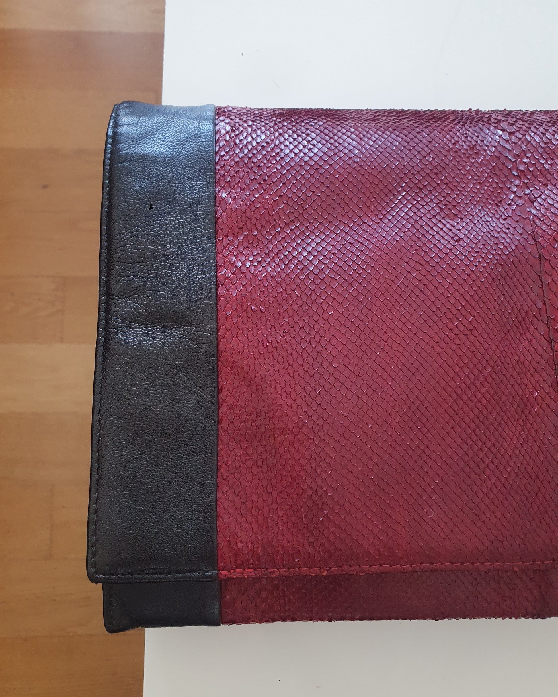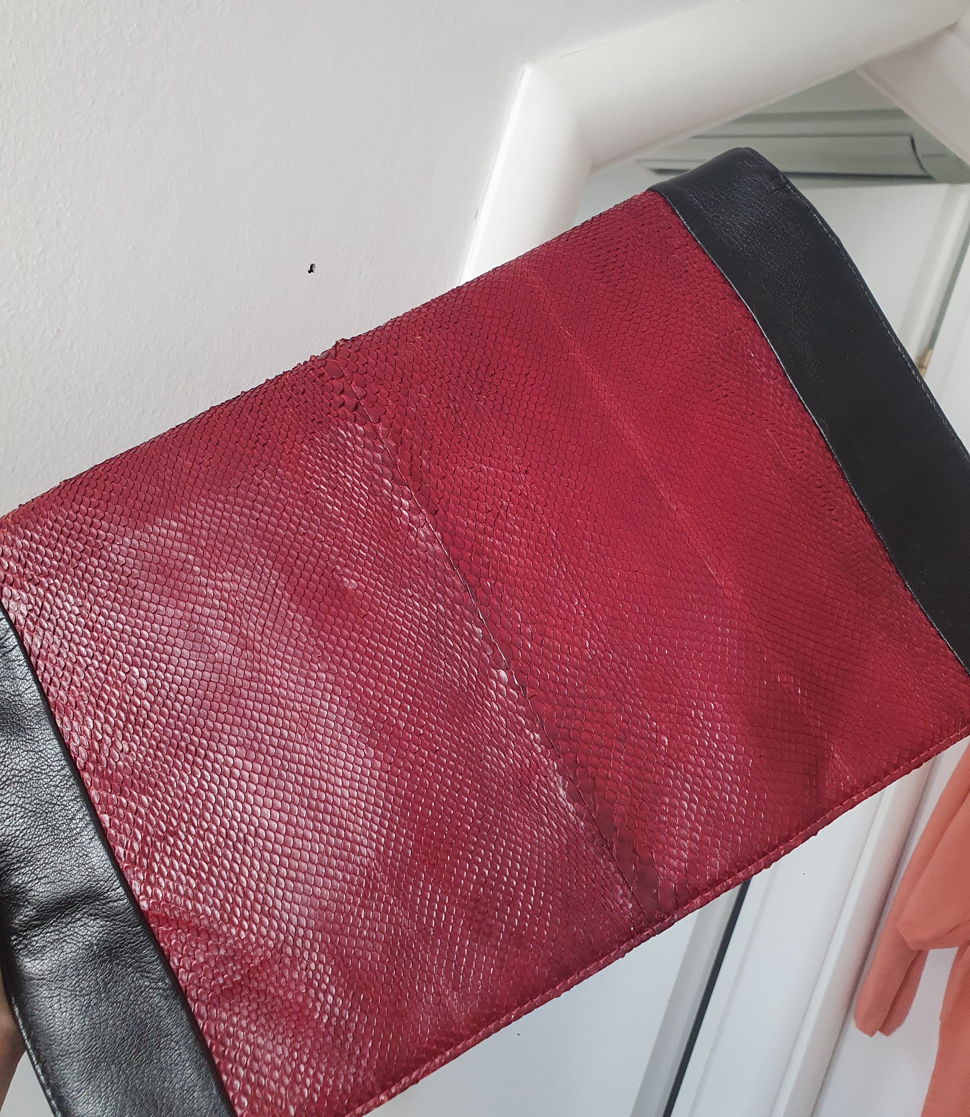 Vintage oveće pismo torba. Kombinacija bordo zmijske kože i crne glatke kože. Unutrašnjost brušena koža.