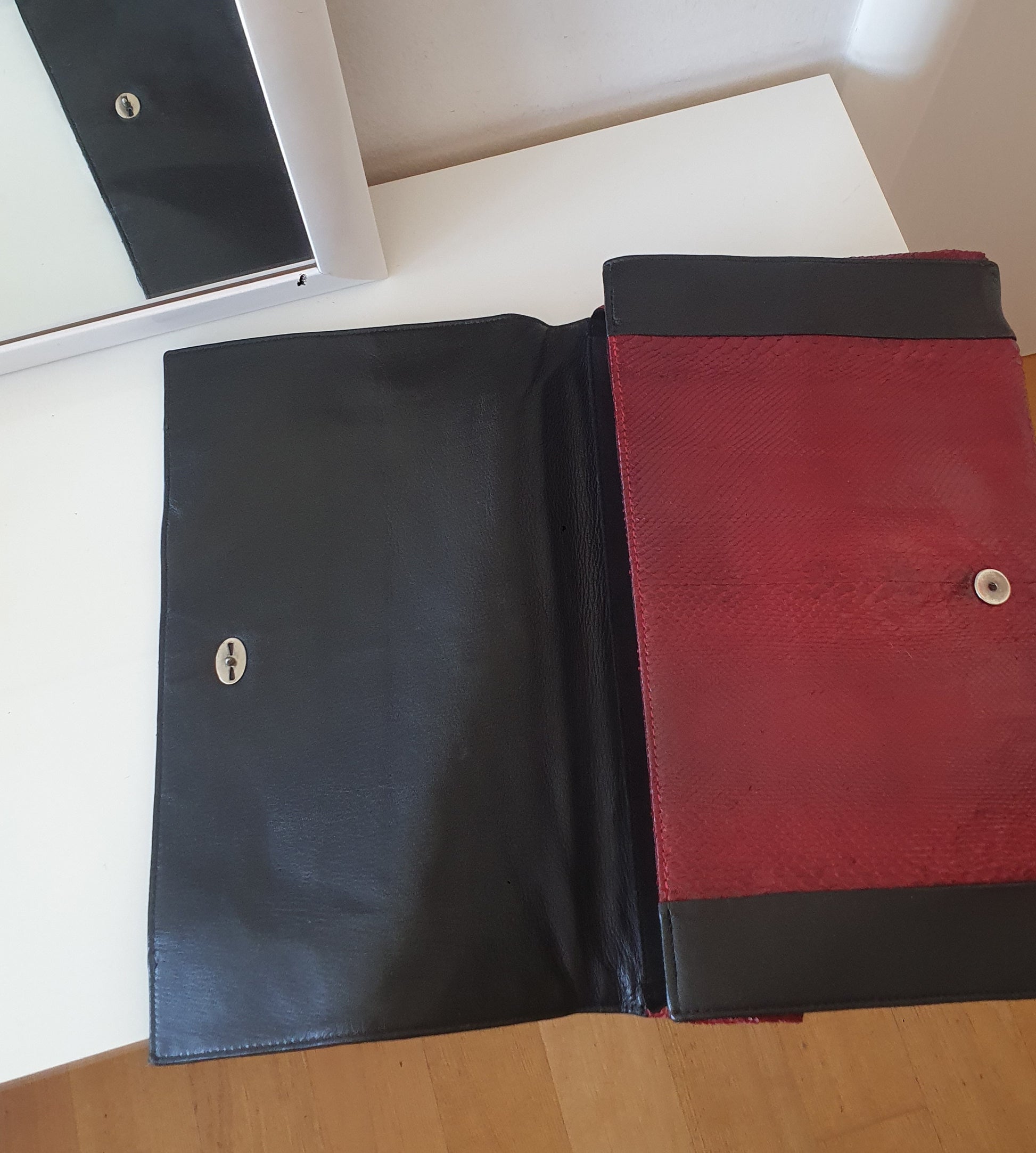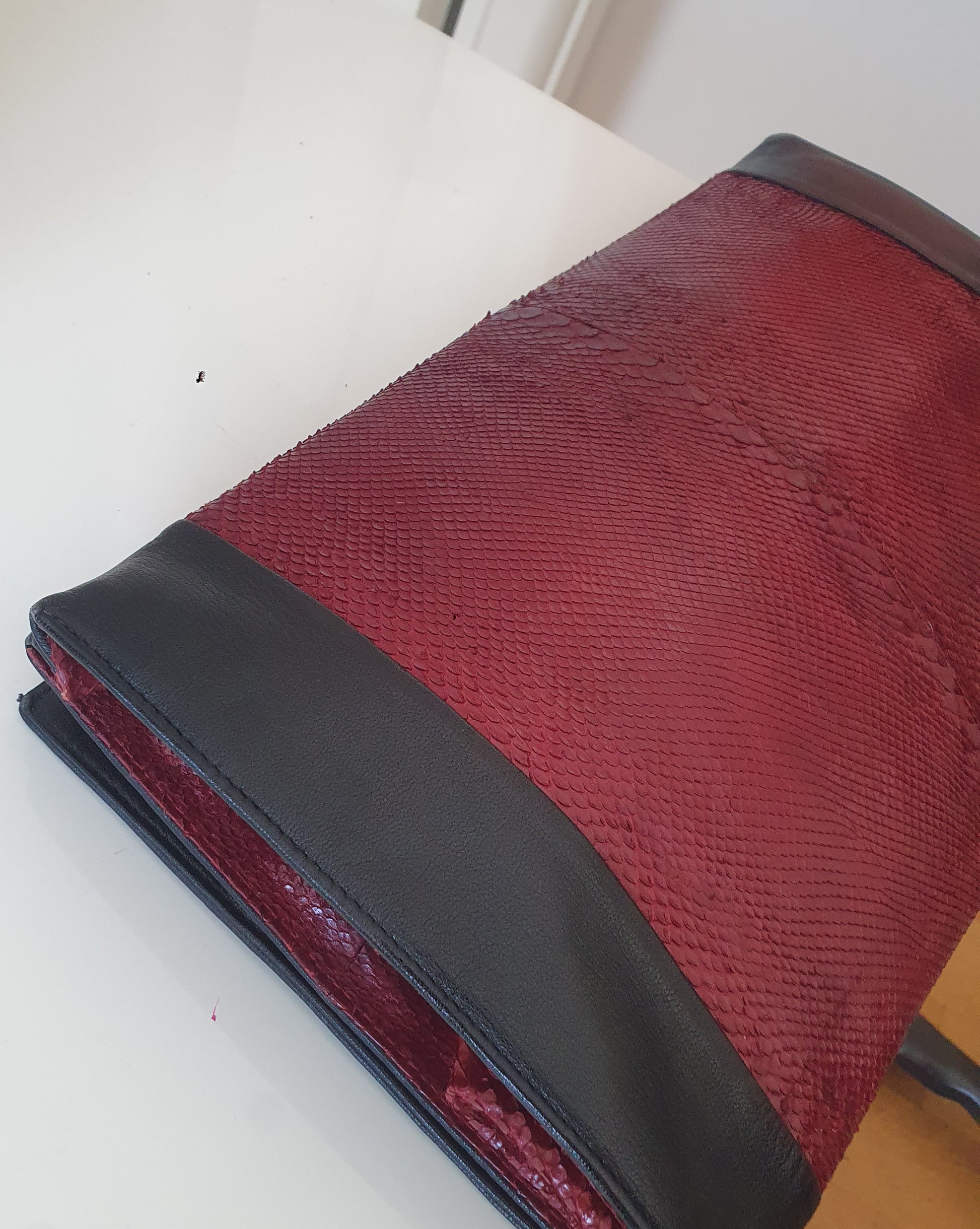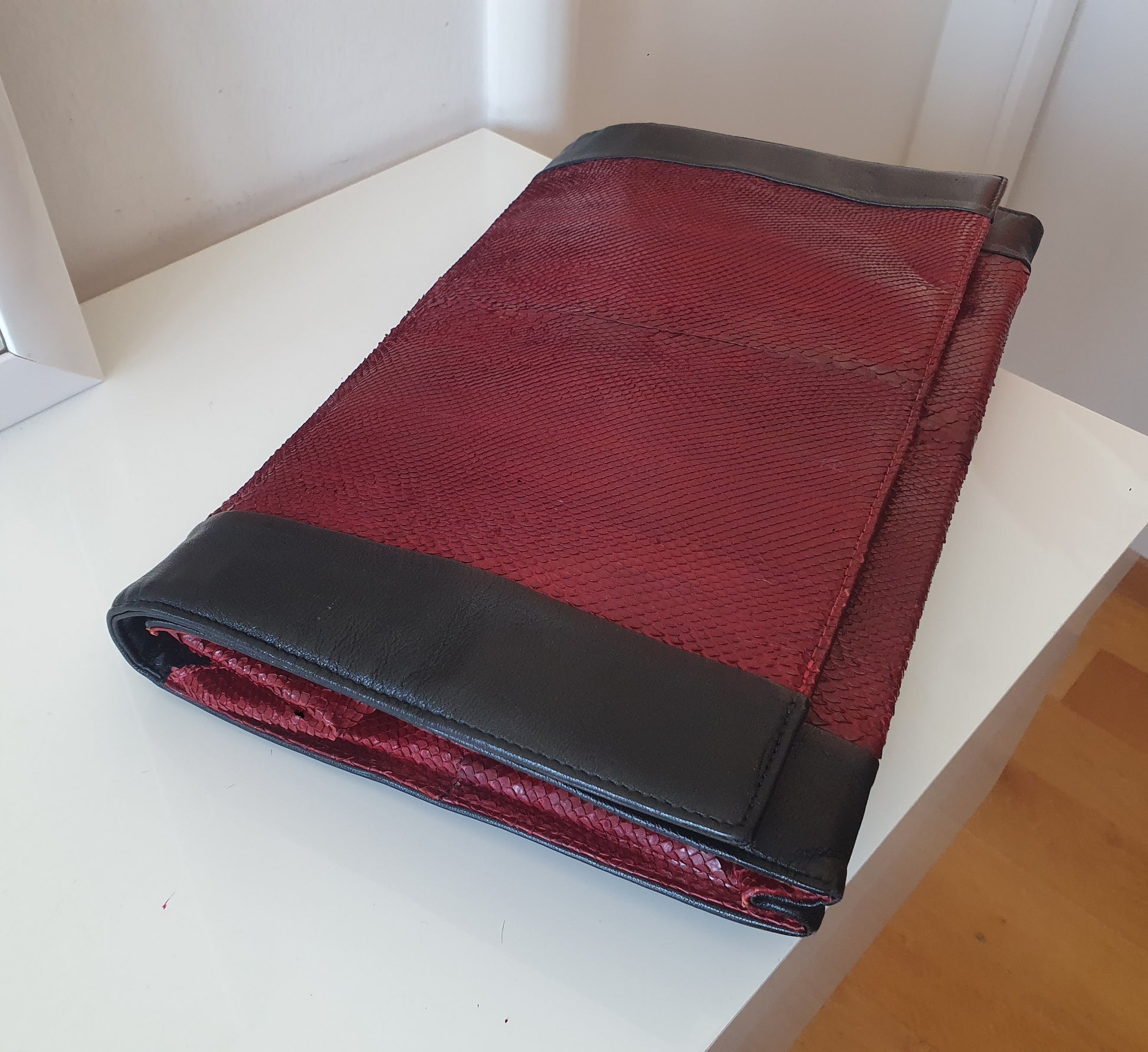 Vintage oveće pismo torba. Kombinacija bordo zmijske kože i crne glatke kože. Unutrašnjost brušena koža.