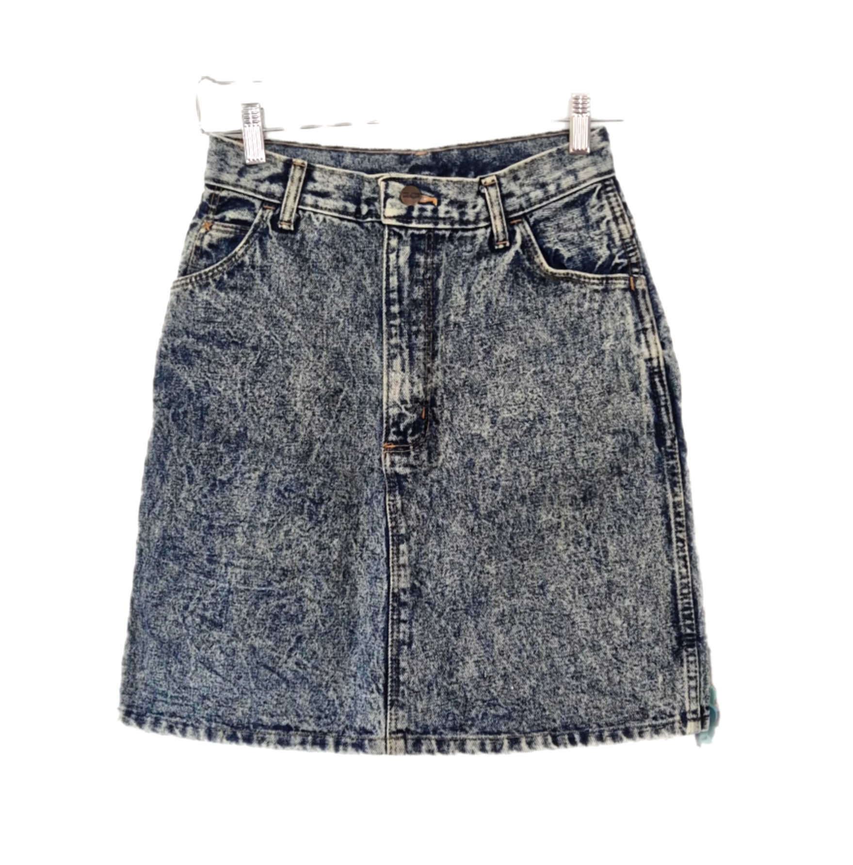 Wtangler traper suknja, vjerojatno već vintage. Acid-wash boja jeansa, viši struk, klasičan ravan kroj. Vintage, made in Yugoslavia!